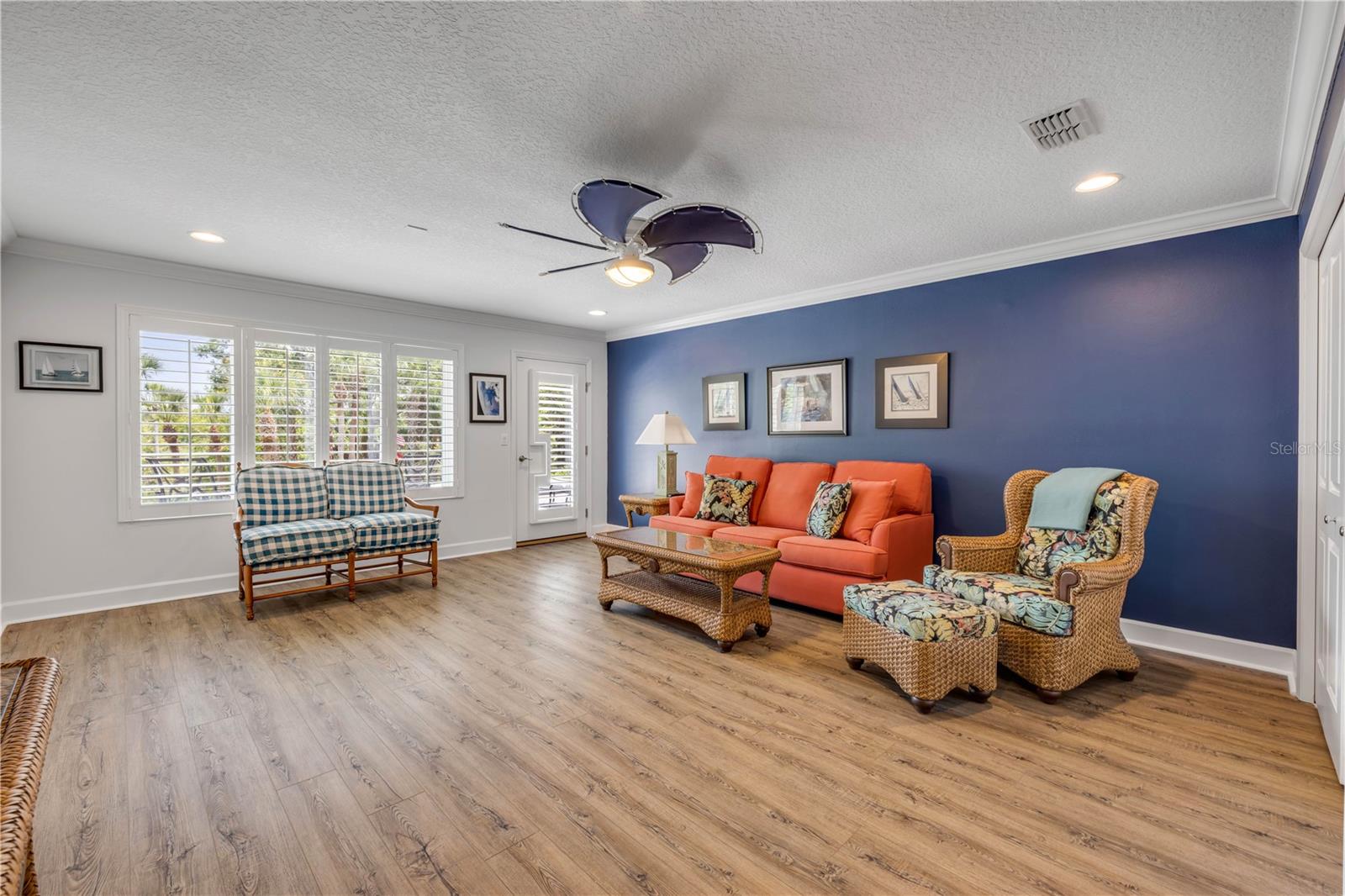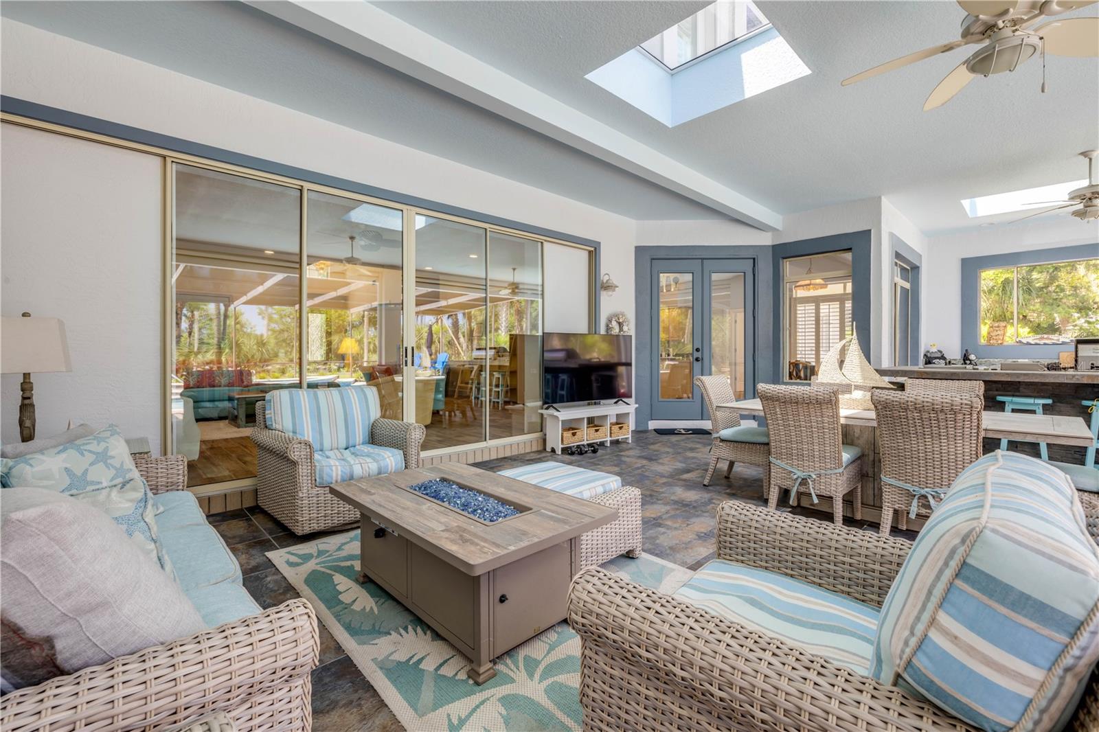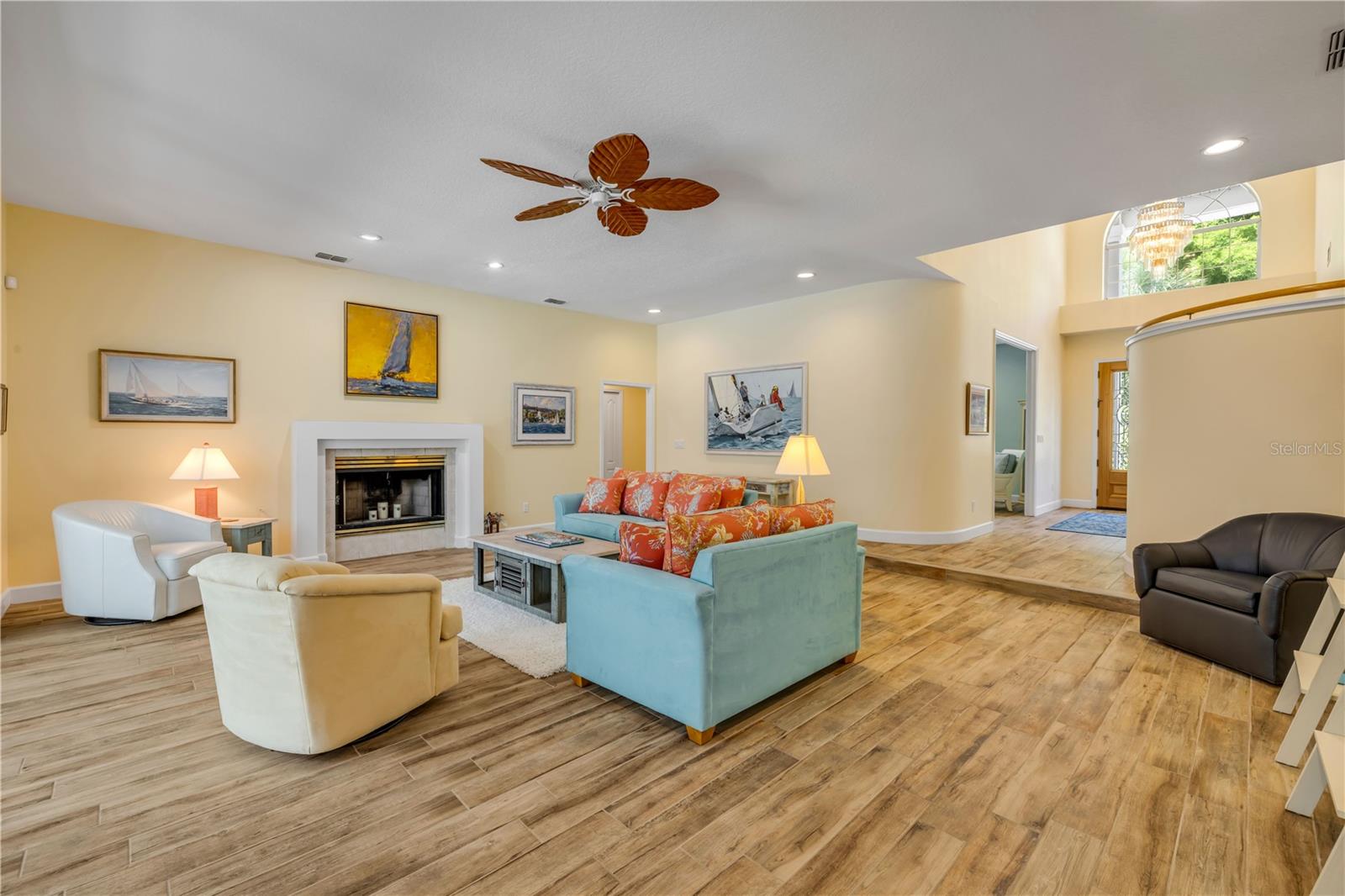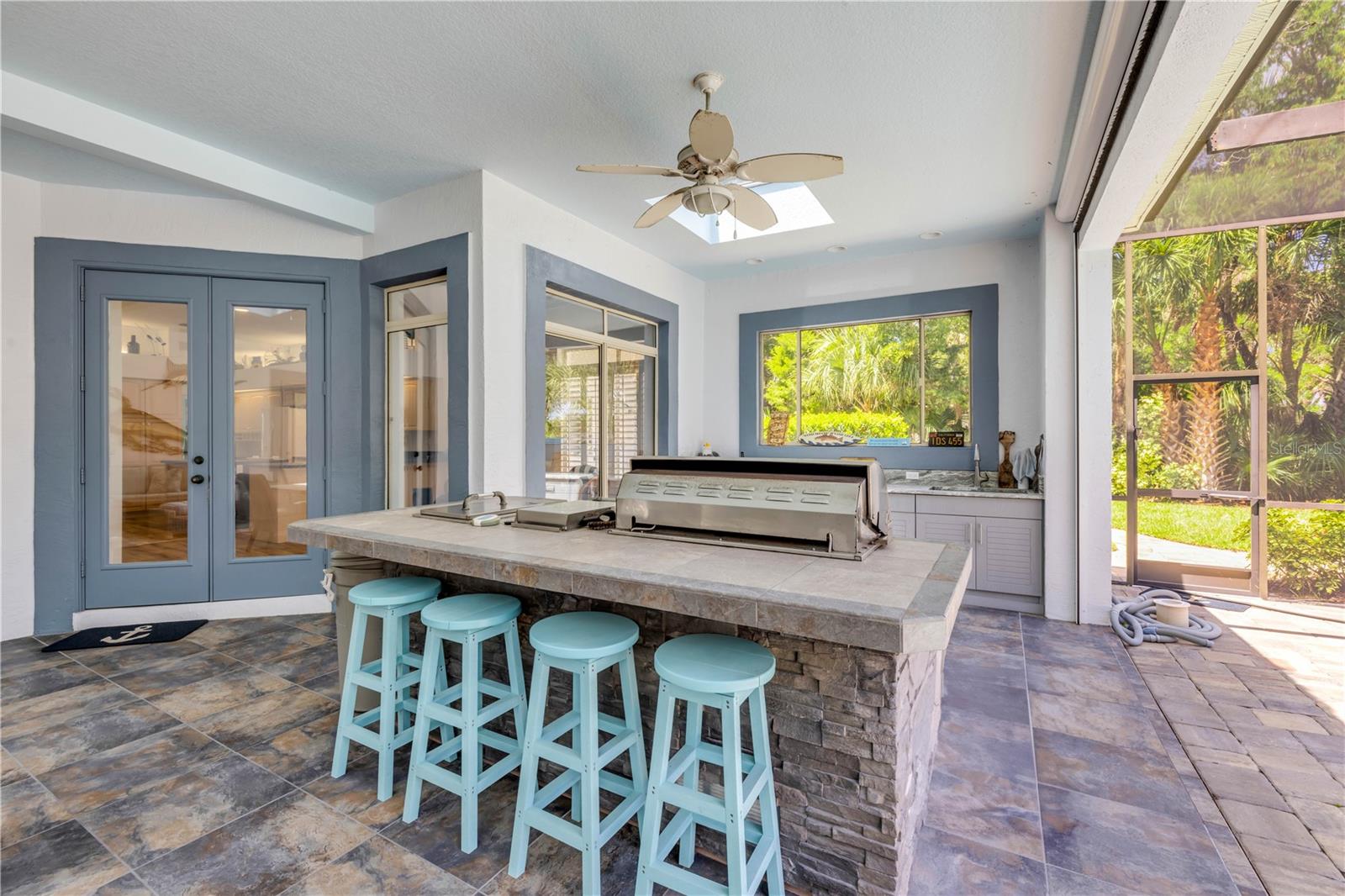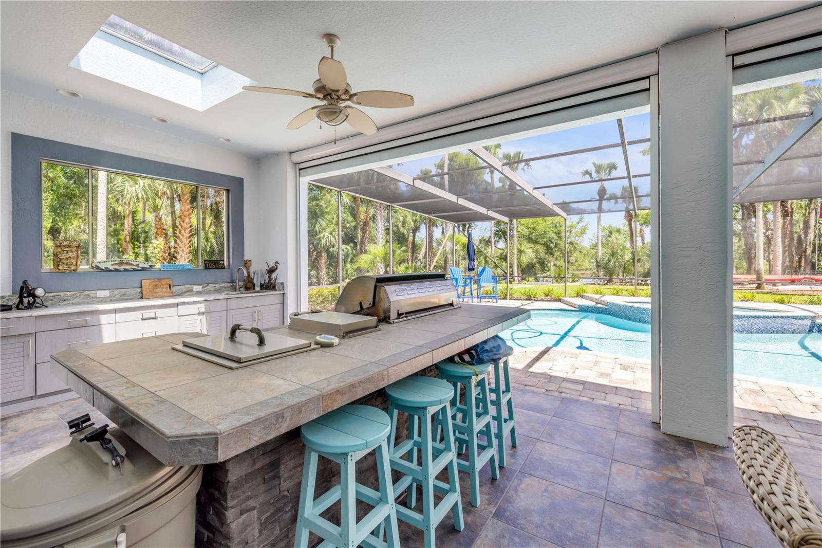 Stunning 5 Bdr, 4 1/2 Ba, waterfront pool estate home at 6325 Palmas Bay, located in the gated Palmas Bay Club within the Riverwood community of Port Orange. Positioned on a semi private cul de sac along Spruce Creek with direct access to the Halifax River and Intracoastal Waterway, ideal for boating enthusiasts. This home features a circular driveway, lush landscaping, and a 3 car garage. Inside the home is a grand foyer, formal dining, spacious kitchen with island and breakfast nook, and a large living room with gas fireplace. Sliders open to a screened outdoor living area, summer kitchen, and fully screened in pool. The first floor includes the primary suite, pool bath, laundry, and media room. Upstairs offers three bedrooms, two full baths, and a divided sitting area. A paver walkway leads to a large deck and floating dock, perfect for fishing, relaxing, or launching your boat. Located minutes to beaches, dining, shopping, and top rated schools in Port Orange. POF/Pre-approval for showings.