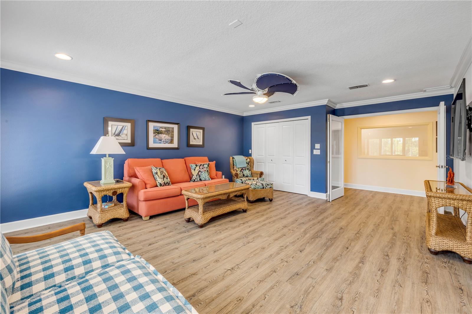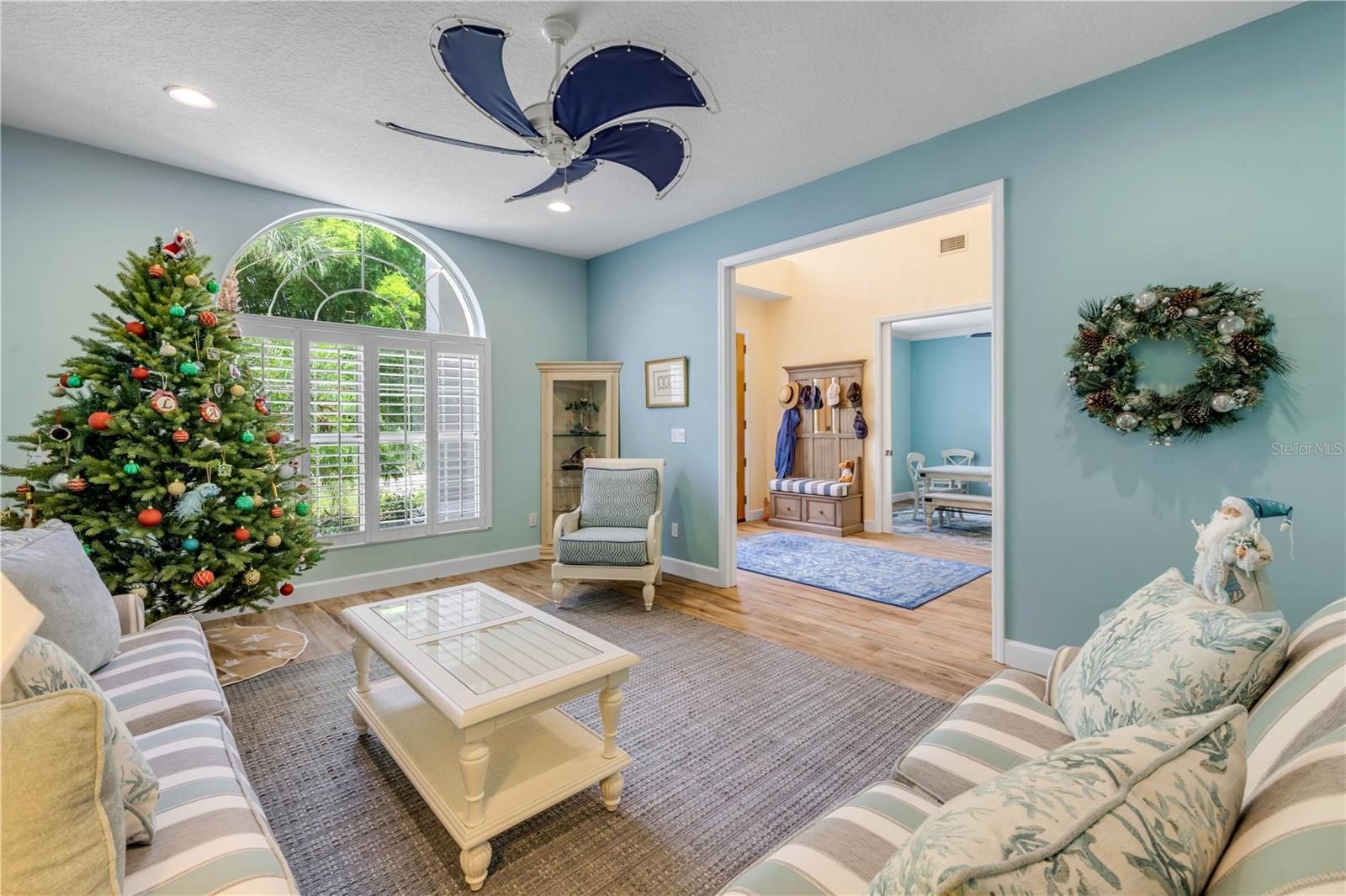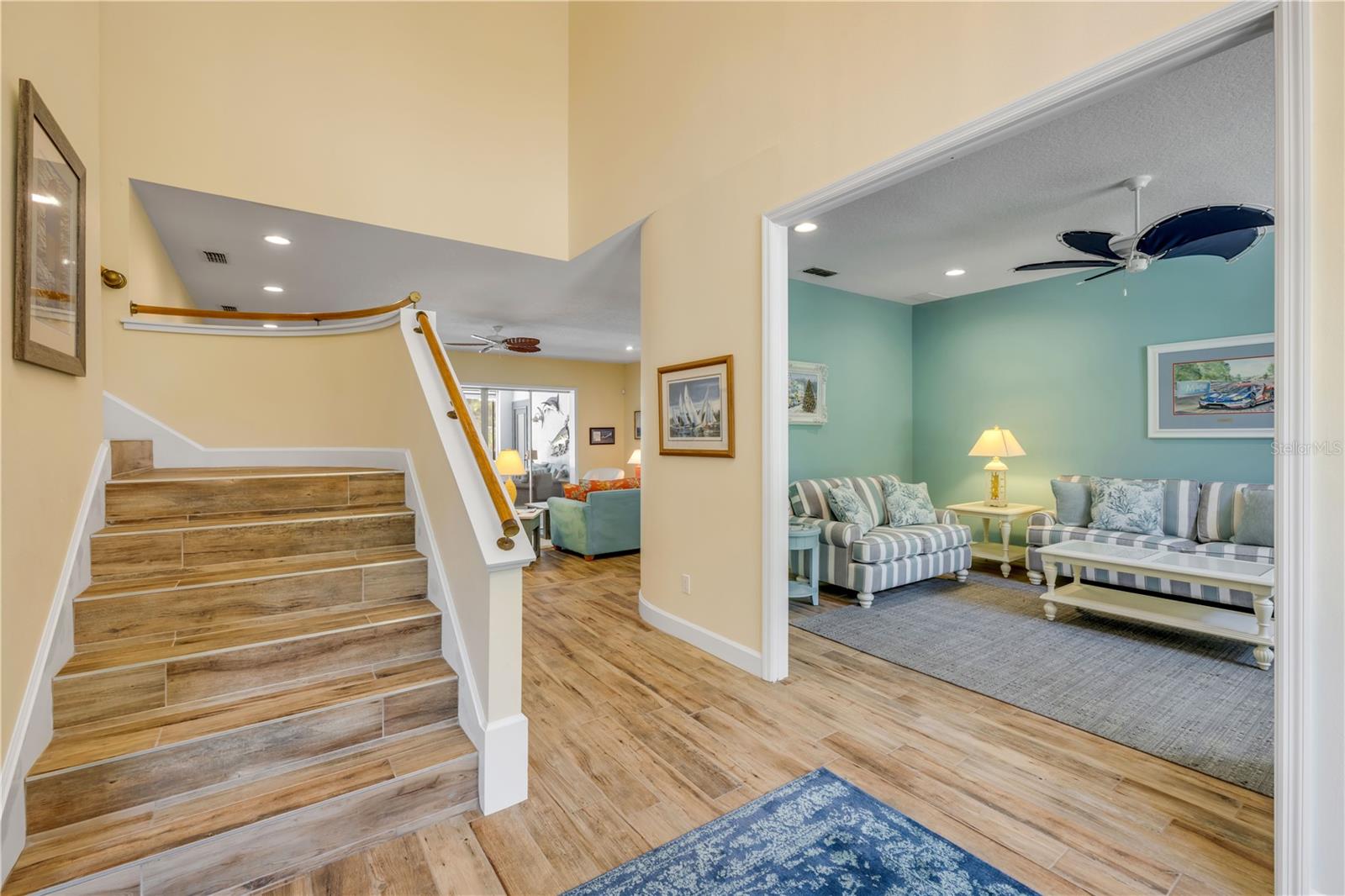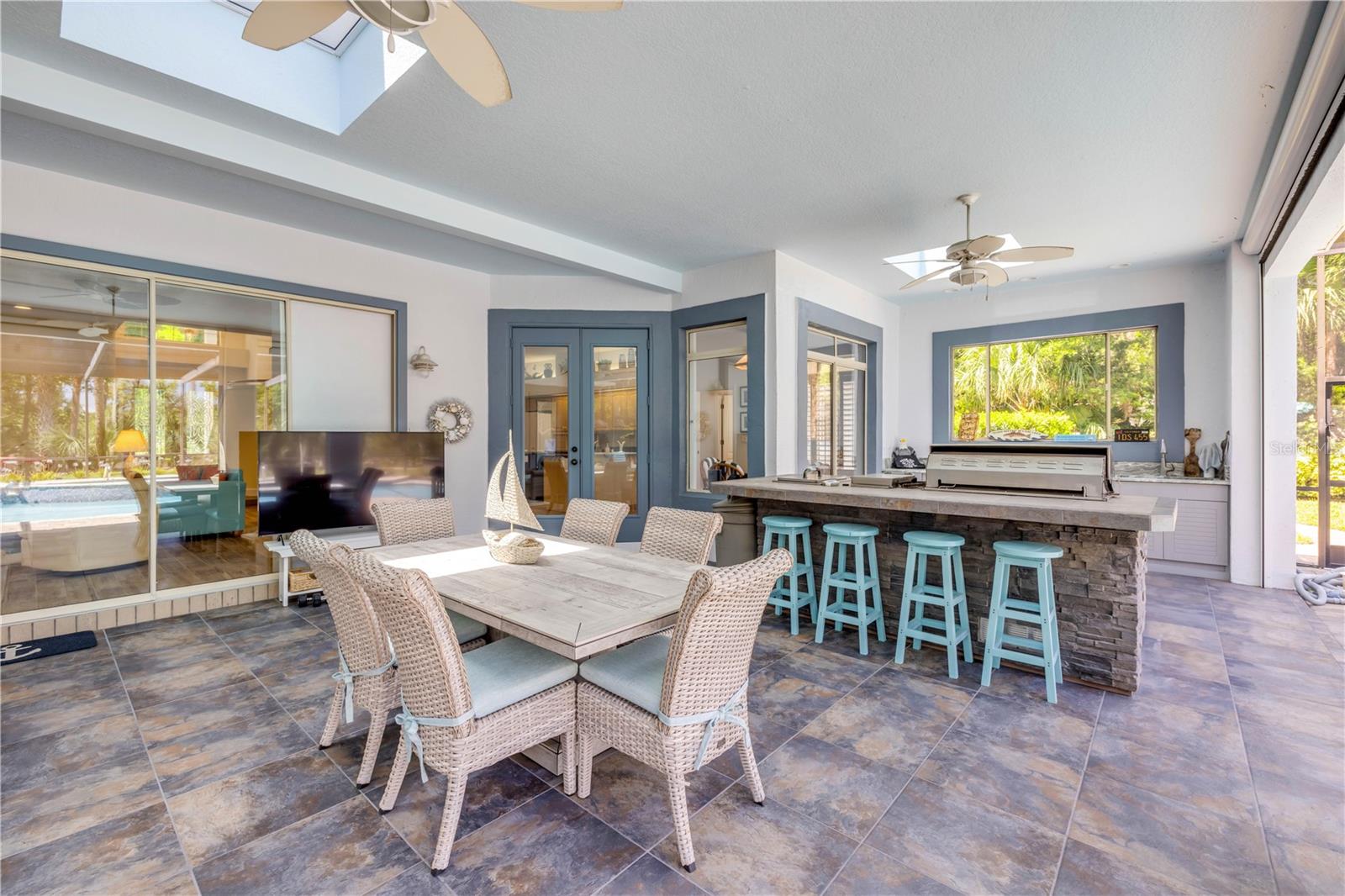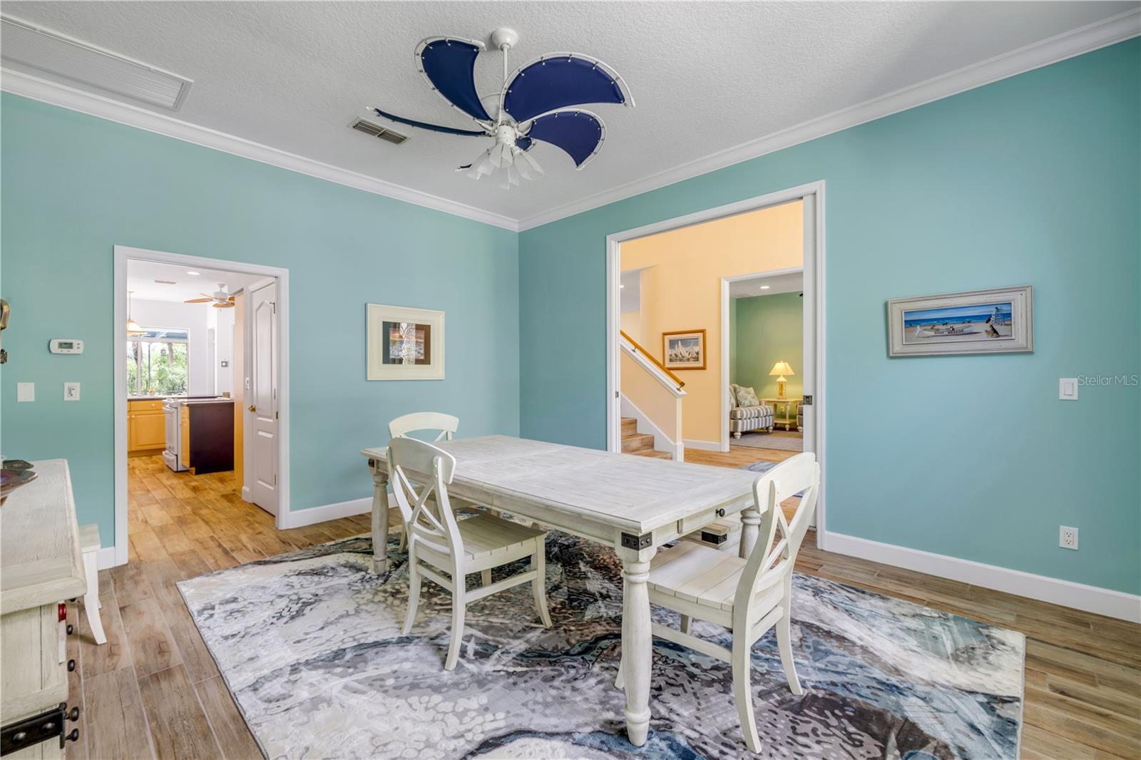 Stunning 5 Bdr, 4 1/2 Ba, waterfront pool estate home at 6325 Palmas Bay, located in the gated Palmas Bay Club within the Riverwood community of Port Orange. Positioned on a semi private cul de sac along Spruce Creek with direct access to the Halifax River and Intracoastal Waterway, ideal for boating enthusiasts. This home features a circular driveway, lush landscaping, and a 3 car garage. Inside the home is a grand foyer, formal dining, spacious kitchen with island and breakfast nook, and a large living room with gas fireplace. Sliders open to a screened outdoor living area, summer kitchen, and fully screened in pool. The first floor includes the primary suite, pool bath, laundry, and media room. Upstairs offers three bedrooms, two full baths, and a divided sitting area. A paver walkway leads to a large deck and floating dock, perfect for fishing, relaxing, or launching your boat. Located minutes to beaches, dining, shopping, and top rated schools in Port Orange. POF/Pre-approval for showings.