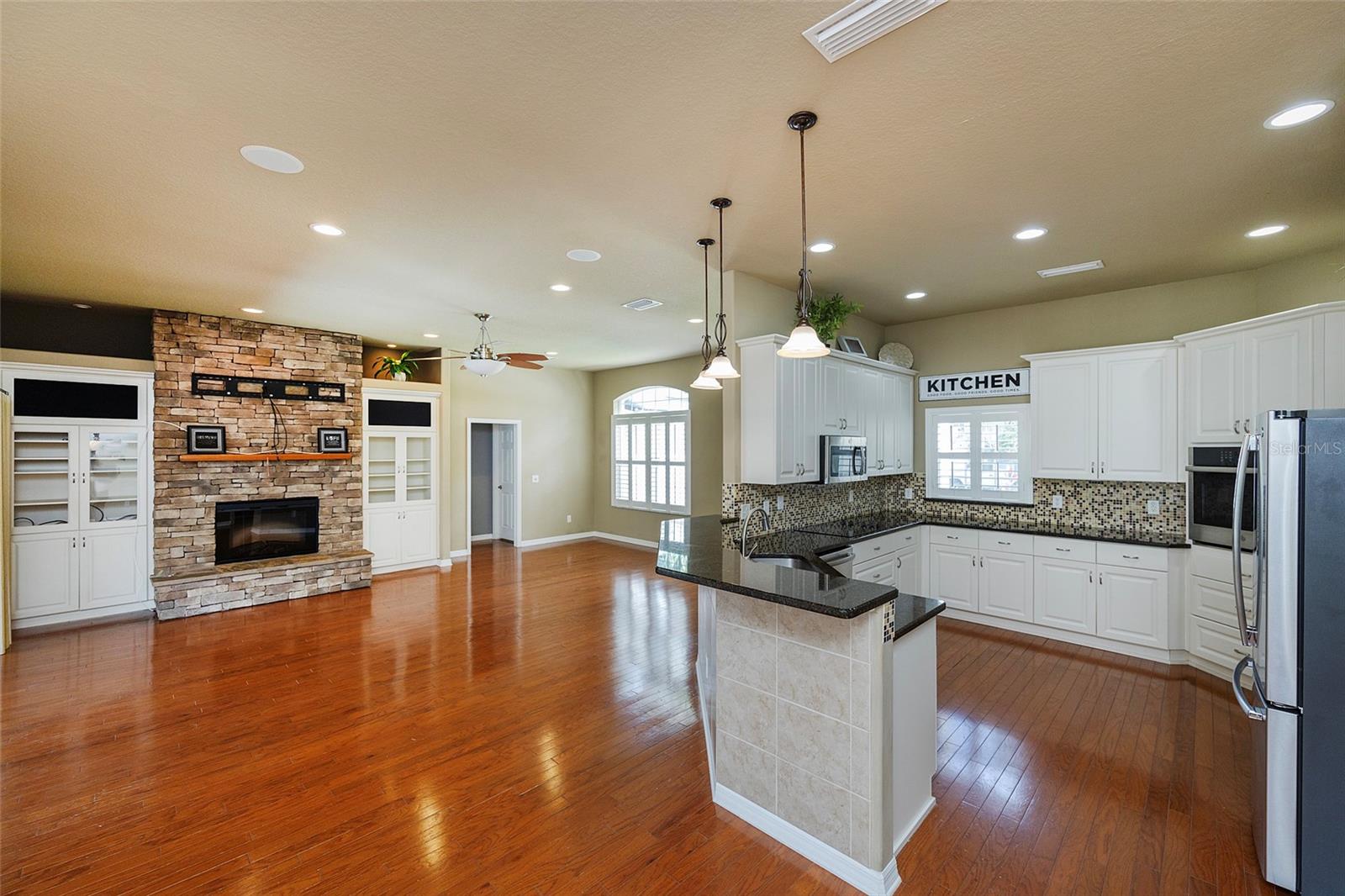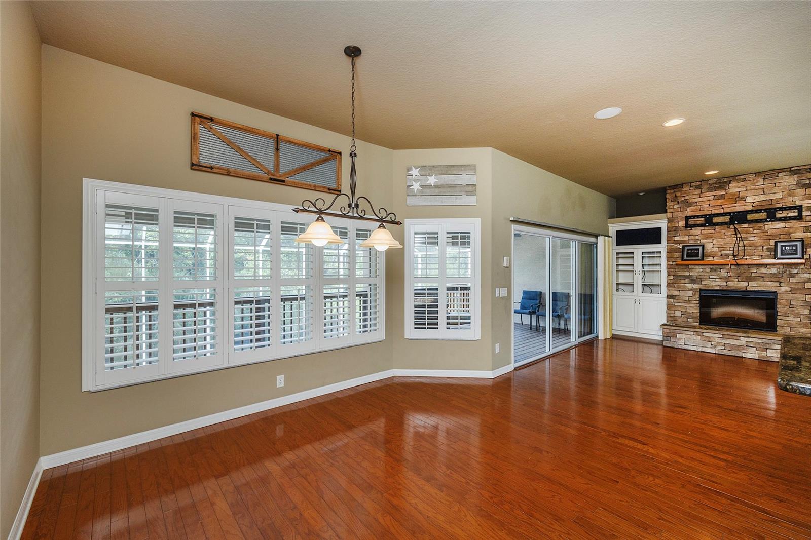 Situated in desirable Summer Trees South on a peaceful lot backing to Spruce Creek, this sprawling swimming pool home is move-in ready and waiting for a new family to enjoy. As you approach the home you will be greeted by a beautiful elevation with vibrant Florida foliage, while inside you will find generous living spaces with high ceilings and an abundance of natural light. Gleaming wood floors and convenient tile run throughout the residence, while the open kitchen boasts granite countertops, 42'' wood cabinetry, and quality stainless steel appliances. Enjoy the oversized, screened, custom swimming pool area, perfect for entertaining year-round. The large primary bedroom features a tray ceiling while in the master bathroom you will find dual vanities and a walk-in shower. The 4th bedroom on the lower level features its own bathroom and living space, and could be used as an in-law suite or private guest quarters. Growing families will love the current public school zoning that includes Sweetwater Elementary, Creekside Middle and Spruce Creek High. Don't miss out on this unique Port Orange home!