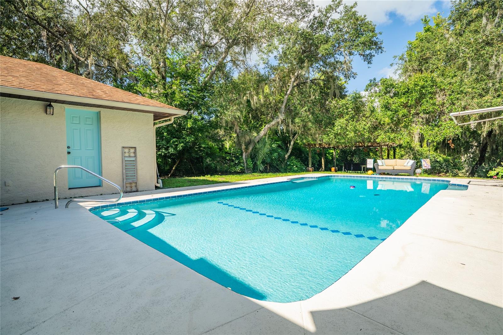 Welcome to your private oasis in Spruce Creek Woods! This charming 4-bedroom, 2-bathroom pool home sits on a spacious 1-acre lot with no HOA, offering the perfect combination of comfort, freedom, and functionality. Thoughtfully maintained, this single-story residence features a split bedroom floor plan, a newer roof for added peace of mind, and a termite bond with Massey already in place. Inside, you’ll find a large Florida room, a wood-burning fireplace, and an inside laundry room. The kitchen and living areas flow seamlessly, creating a warm and inviting atmosphere. Step outside to a backyard retreat complete with a sparkling pool, gazebo area, all surrounded by mature trees for enhanced privacy. Enjoy the convenience of city water paired with a septic system to help keep utility costs low, plus a two-car garage for ample storage and parking. Perfect for entertaining or simply enjoying the serene setting, this property offers room to grow and a peaceful environment—all just minutes from shopping, dining, and top-rated schools. Don’t miss this rare opportunity to own in one of Port Orange’s most desirable acreage communities!