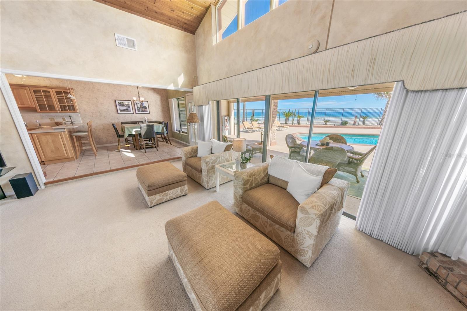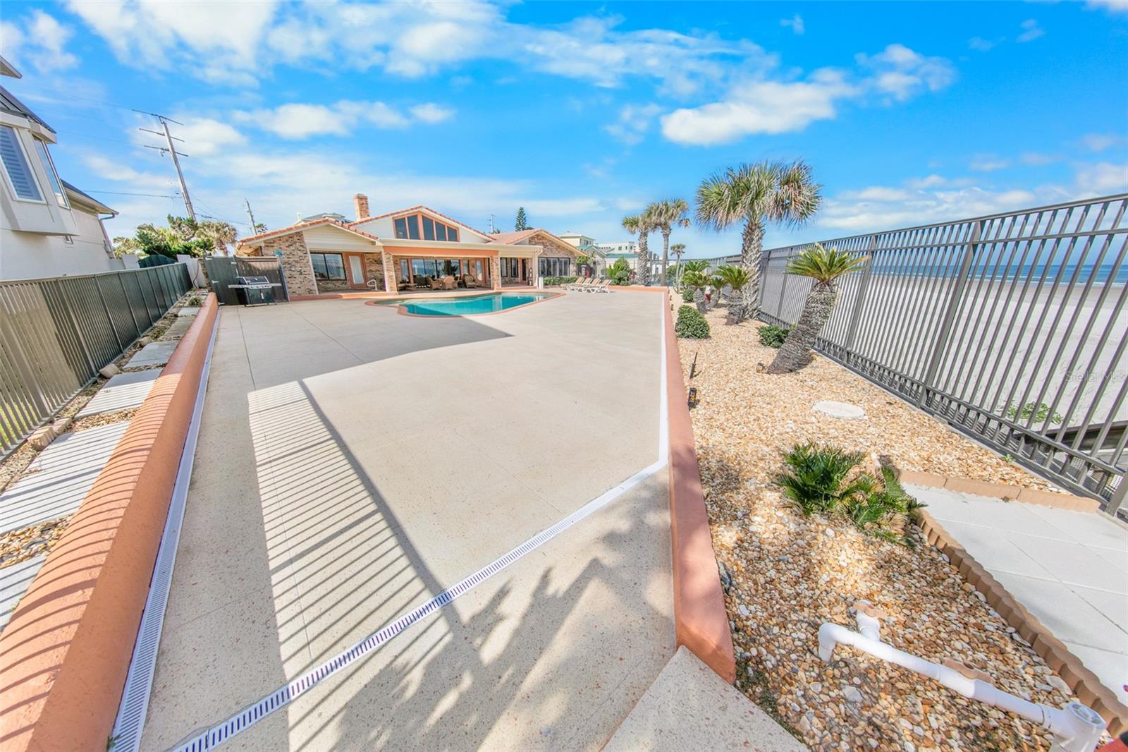 SPECTACULAR OCEANFRONT POOL HOME LOCATED ON AN EXCEPTIONAL 100' x 200' ESTATE PARCEL WITH SEAWALL ON THE PRISTINE ''NO DRIVE'' BEACH OF PONCE INLET! This beautifully designed ranch style pool home features 3,238 sq. ft of luxurious living area consisting of 4 bedrooms plus an office and 4 full bathrooms. A spacious open split-bedroom floor plan makes this home perfect for everyday comfort and for entertaining guests. Outdoors, the home is a private coastal retreat featuring a spacious covered lanai with an in-ground heated spa and a dramatic 10' deep oceanfront pool and expansive patio, all designed for relaxing and entertaining while enjoying breathtaking, unobstructed ocean views! Sturdy brick construction for easy maintenance combined with a barrel tile roof, some impact windows, hurricane shutters & two HVAC systems provide energy efficiency and peace-of-mind. Step inside this lovely home through the double door entryway and your eyes focus on the breathtaking views of the azure Atlantic Ocean!! The expansive great room boasts a wall of sliding glass doors, transom windows and a classic tongue and groove vaulted wood ceiling creating an elegant coastal atmosphere. A cozy wood burning corner brick fireplace adds charm and warmth to the home's refined ambiance. The fully-equipped kitchen has awesome ocean views, a beam ceiling, Corian countertops, wood cabinetry, breakfast bar & built-in desk. The huge primary suite is a private oceanfront retreat with two generous walk-in closets and a spa-inspired bathroom. Three spacious en-suite guest bedrooms (each with a walk-in closet) plus a dedicated office provide maximum comfort and functionality. An enormous inside laundry room has plenty of storage and workspace. The huge garage has shark flooring and is roughly 27' x 29' with work bench area, and the expansive paver driveway provides ample parking for friends & family. Ponce Inlet is a peaceful seaside community located between the Atlantic Ocean and the Intracoastal Waterway known for its pristine beaches, scenic waterways and iconic lighthouse. This charming coastal enclave features an expansive shoreline of compact sugar sand perfect for walking, biking, jogging or just relaxing. There's also many waterfront restaurants, tiki bars, parks, nature trails, marinas, charter fishing, Marine Science Center, fishing, boating, surfing, kayak/canoe, dog park/beach and much more! Homes of this caliber are limited SCHEDULE YOUR PRIVATE SHOWING TODAY. Measurements are approximate.
