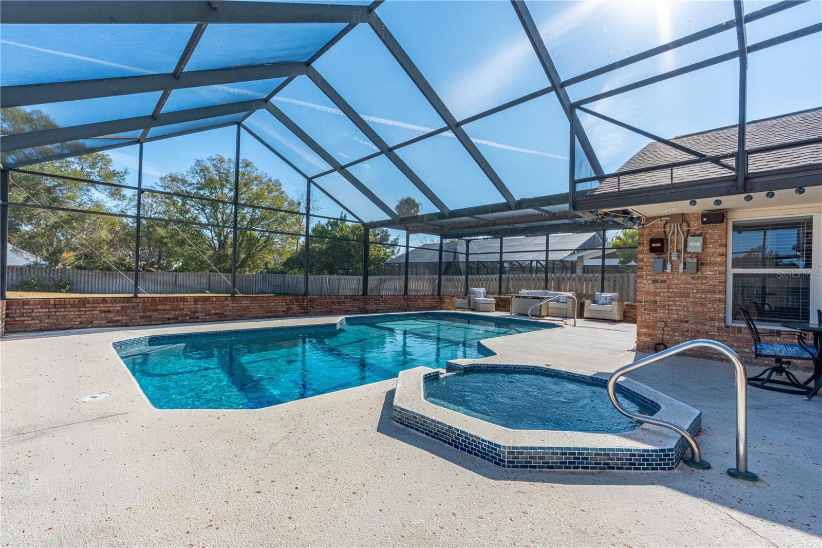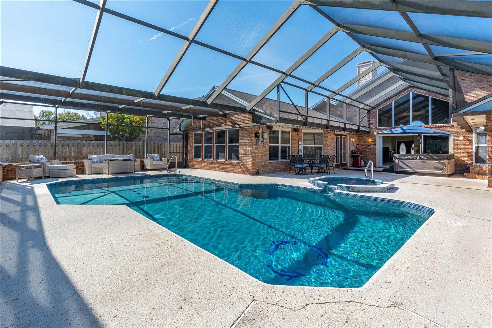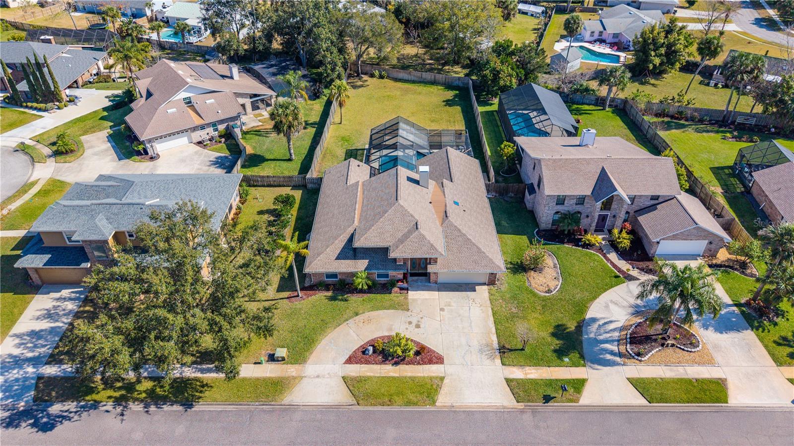 Situated on a generously sized, fully fenced lot in the established Countryside community of Hunt Club, this well-appointed all-brick home offers privacy, flexibility, and refined Florida living. The residence features 4 bedrooms, 2 full baths, 1 half bath, plus 1 additional flex room ideal for a bedroom, office, or play space. The primary suite includes walk-in closets, a spacious ensuite bath, and direct access to the screened pool and patio. Two separate living areas provide versatility, one highlighted by a fireplace, while tall ceilings and abundant natural light enhance the open feel. The turnkey kitchen features quartz countertops, ample cabinetry, and seamless flow for entertaining. Outdoor living shines with a screen-enclosed pool and expansive backyard. Additional features include an interior laundry room, circular driveway, and oversized two-car garage. Conveniently located near shopping, dining, and major roadways. BEST SCHOOL ZONE
