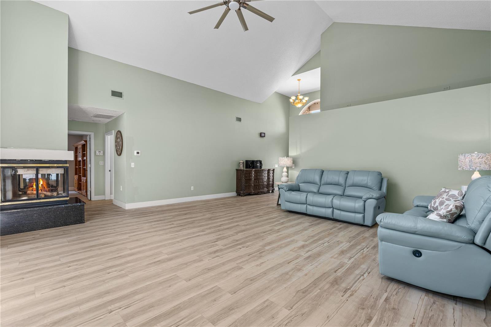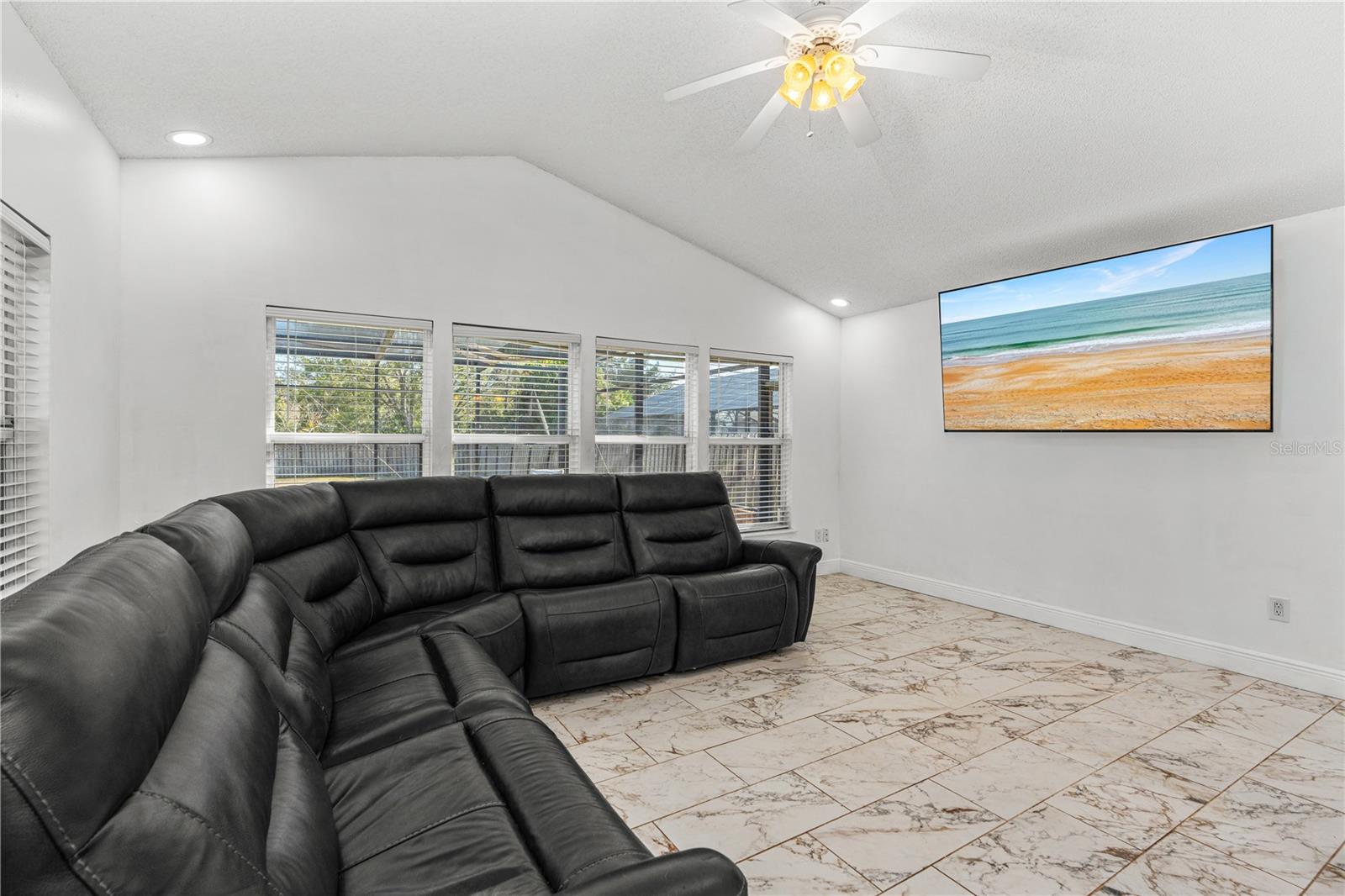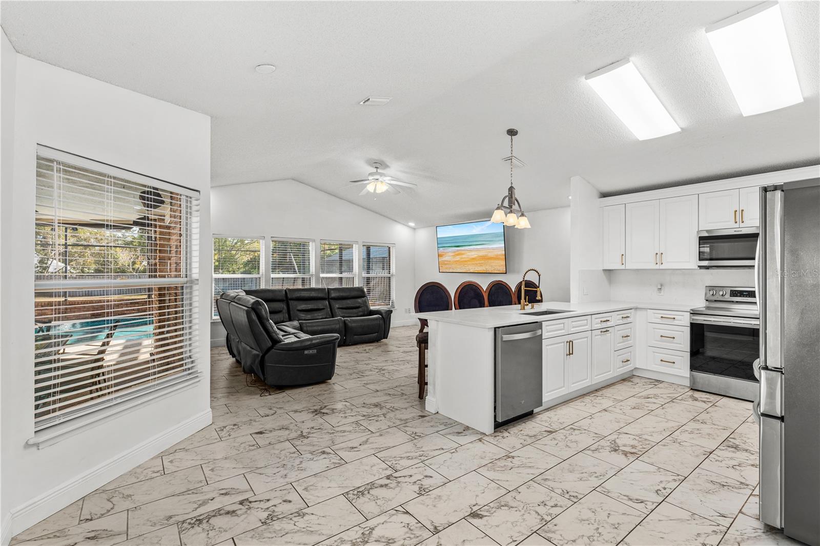 Situated on a generously sized, fully fenced lot in the established Countryside community of Hunt Club, this well-appointed all-brick home offers privacy, flexibility, and refined Florida living. The residence features 4 bedrooms, 2 full baths, 1 half bath, plus 1 additional flex room ideal for a bedroom, office, or play space. The primary suite includes walk-in closets, a spacious ensuite bath, and direct access to the screened pool and patio. Two separate living areas provide versatility, one highlighted by a fireplace, while tall ceilings and abundant natural light enhance the open feel. The turnkey kitchen features quartz countertops, ample cabinetry, and seamless flow for entertaining. Outdoor living shines with a screen-enclosed pool and expansive backyard. Additional features include an interior laundry room, circular driveway, and oversized two-car garage. Conveniently located near shopping, dining, and major roadways. BEST SCHOOL ZONE
