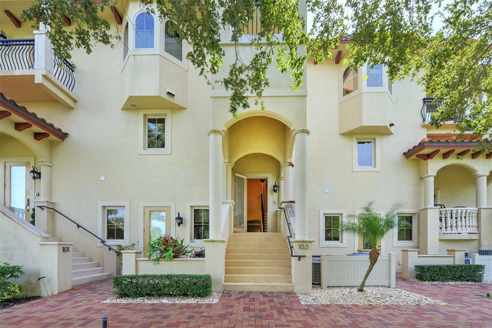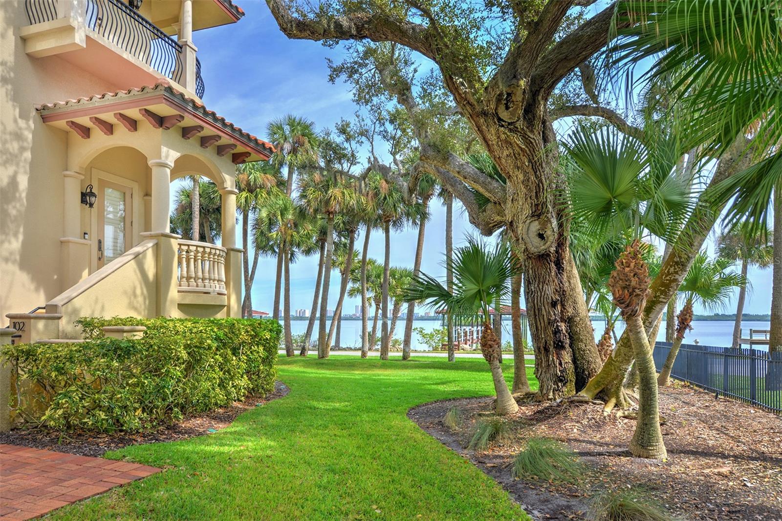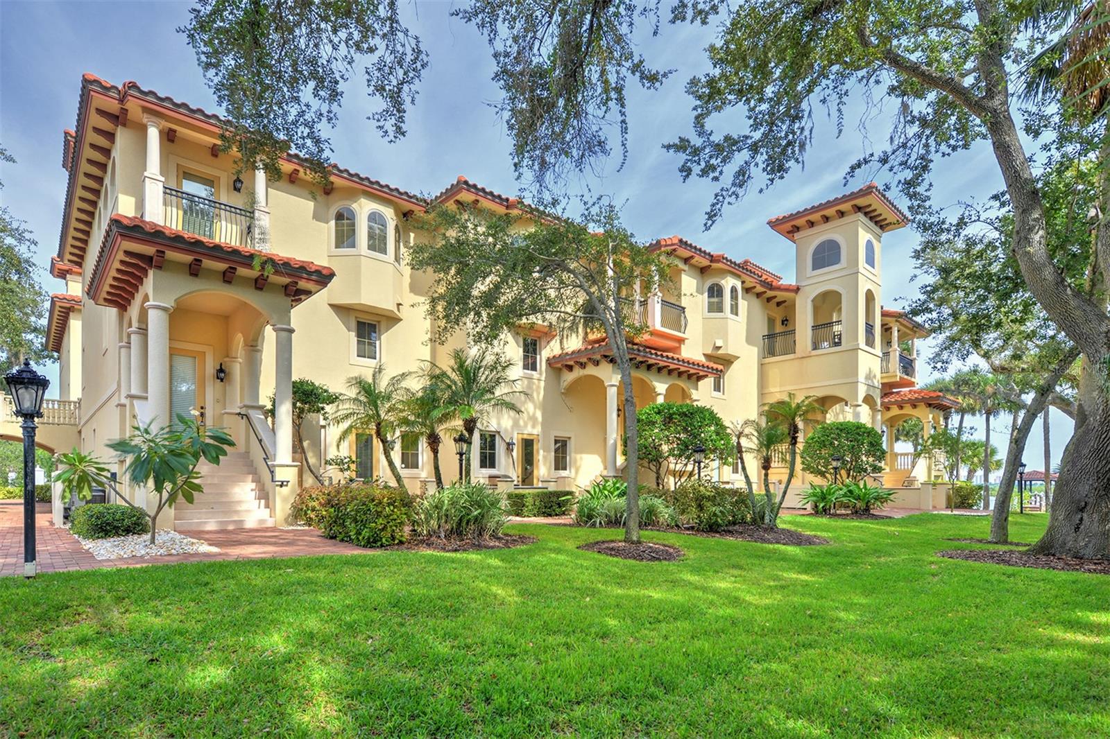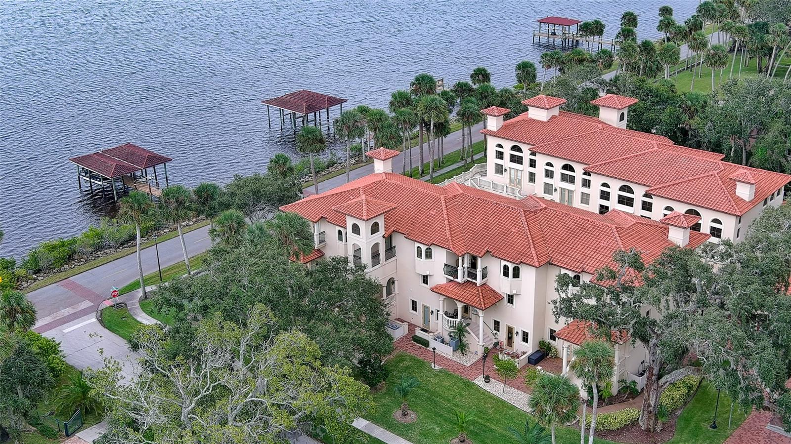 One or more photo(s) has been virtually staged. A PANORAMIC AND PREMIER WATERFRONT LOCATION- Built in 2010*3-story townhome*private elevator*4 Bedrooms*3 baths*2-car garage*covered boat docks*in-law quarters*2,704 air conditioned space*2 balconies w/water views*oversized kitchen w/walk-in pantry, granite counter tops, GE Profile stainless steel appliances*living room w/French doors to balcony*2 story ceiling*owner's suite w/sitting area, spa bath and tower balcony*plantation shutters*crown molding*hardwood flooring/porcelain tile*concrete block construction*guest bedrooms have private entrances*2 a/c units 2018*hot water heater 2023*inside sprinkler system*inside laundry w/splash tub*lots of storage*2 pets allowed - 30lbs each*conveniently located within 2 miles of restaurants, shopping and beach. Only 4 bedroom available in Portofino.