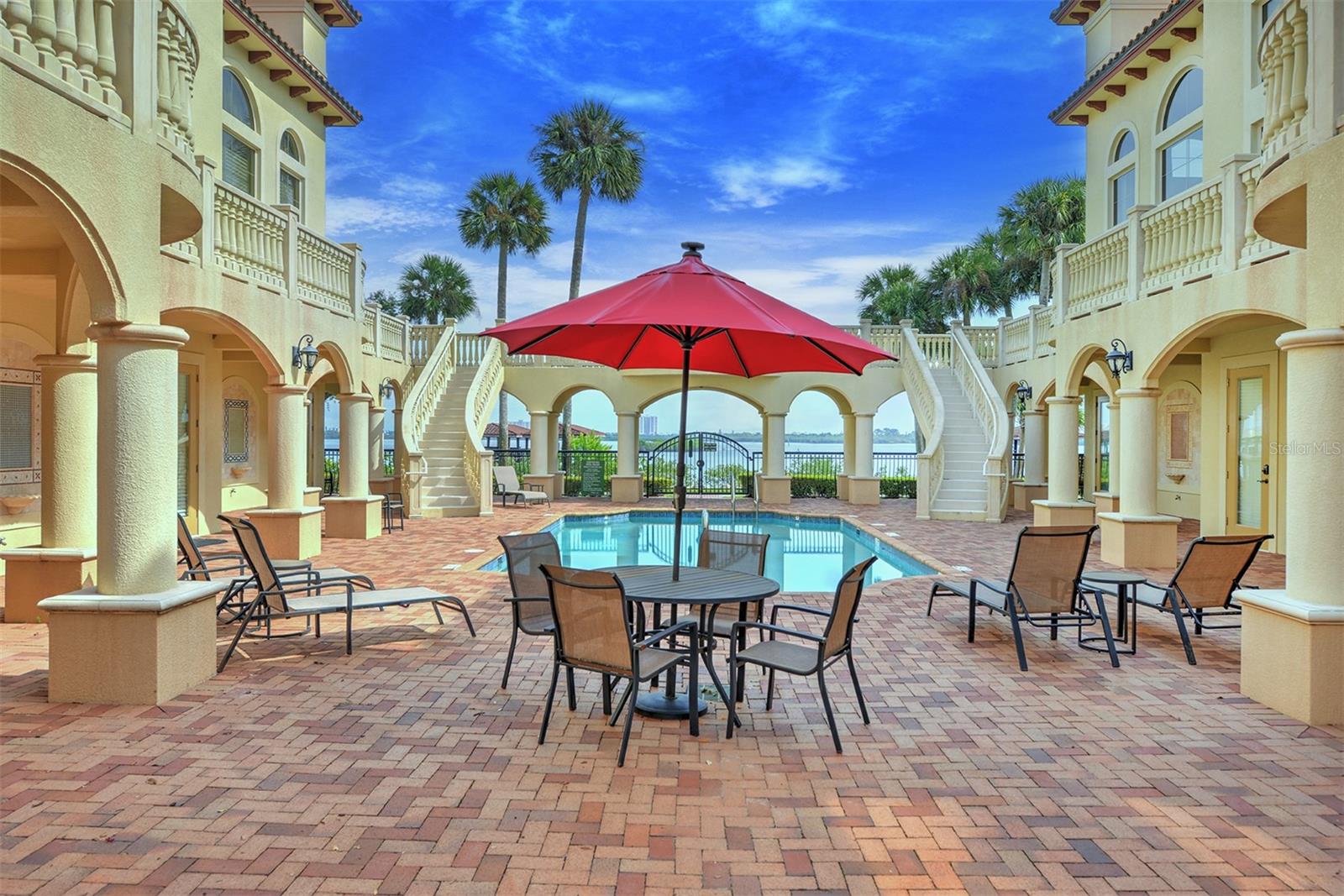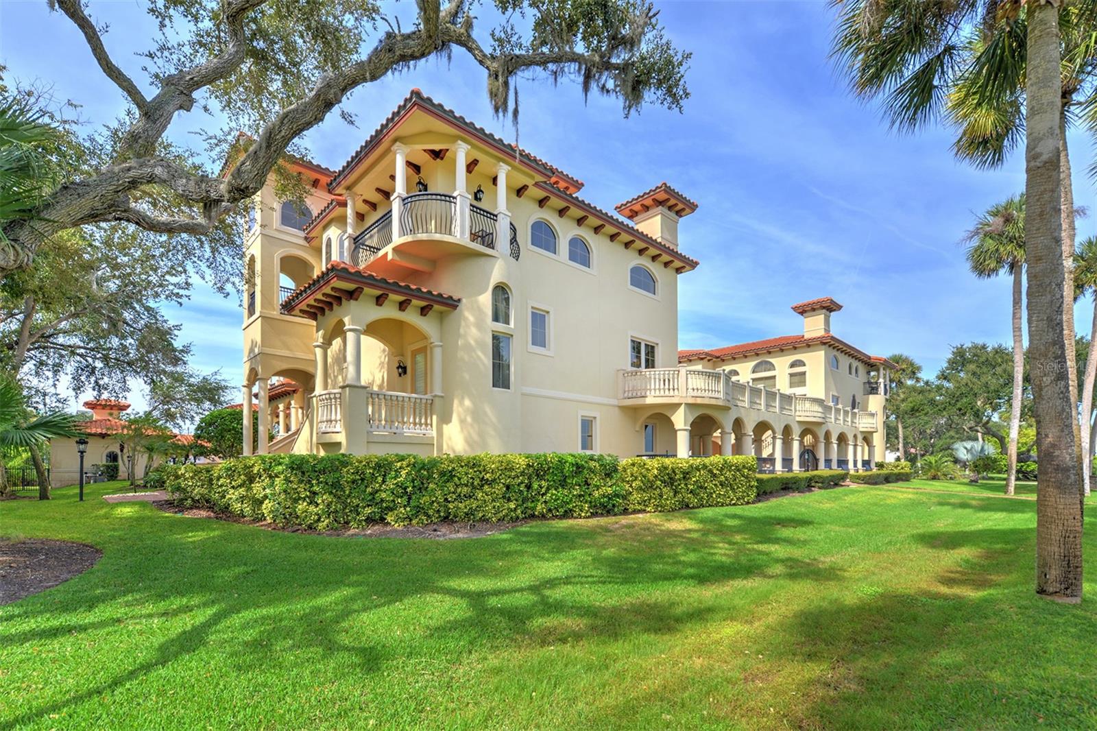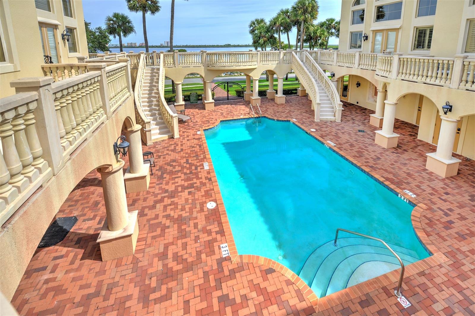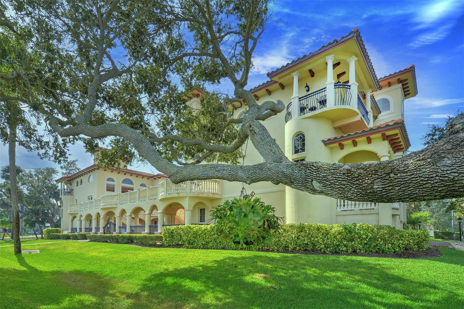 One or more photo(s) has been virtually staged. A PANORAMIC AND PREMIER WATERFRONT LOCATION- Built in 2010*3-story townhome*private elevator*4 Bedrooms*3 baths*2-car garage*covered boat docks*in-law quarters*2,704 air conditioned space*2 balconies w/water views*oversized kitchen w/walk-in pantry, granite counter tops, GE Profile stainless steel appliances*living room w/French doors to balcony*2 story ceiling*owner's suite w/sitting area, spa bath and tower balcony*plantation shutters*crown molding*hardwood flooring/porcelain tile*concrete block construction*guest bedrooms have private entrances*2 a/c units 2018*hot water heater 2023*inside sprinkler system*inside laundry w/splash tub*lots of storage*2 pets allowed - 30lbs each*conveniently located within 2 miles of restaurants, shopping and beach. Only 4 bedroom available in Portofino.