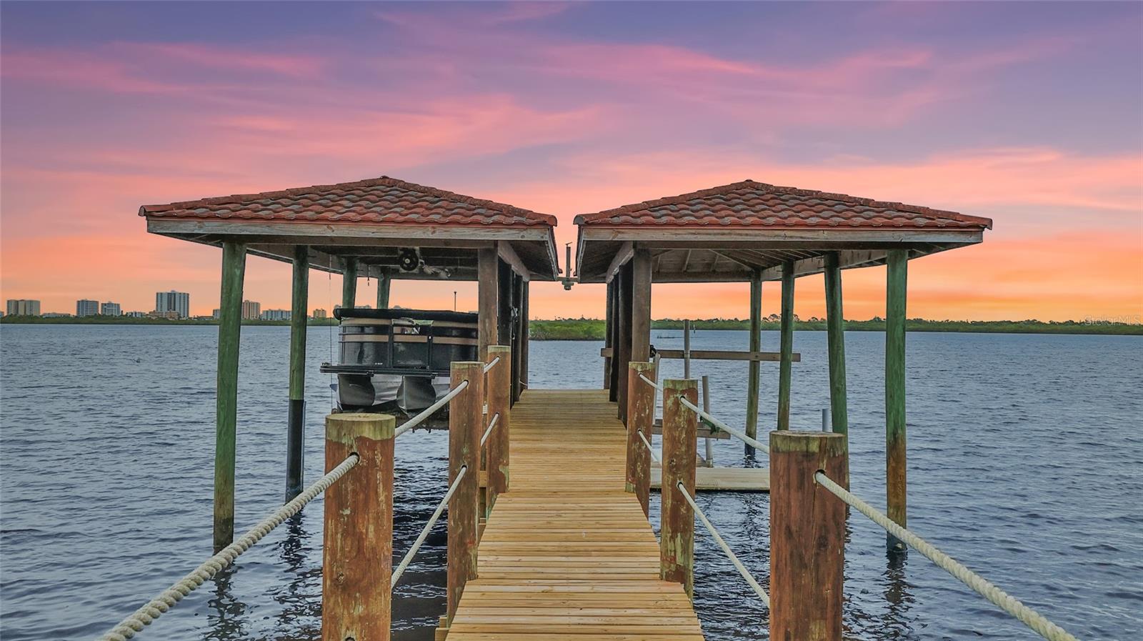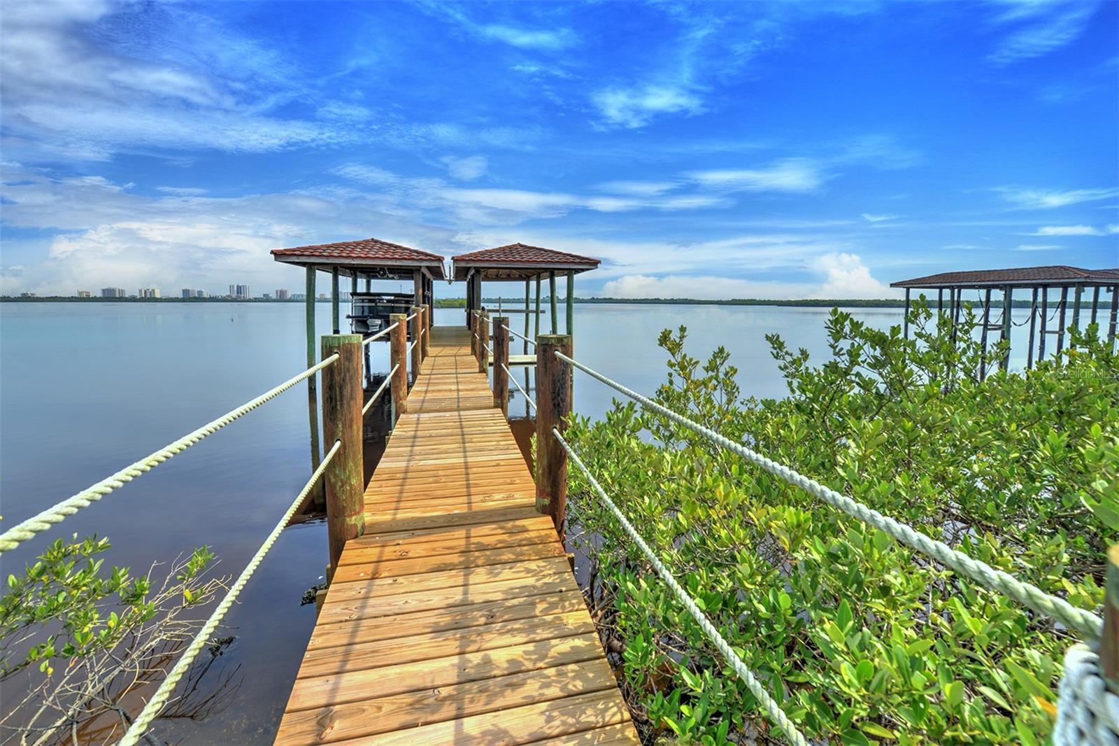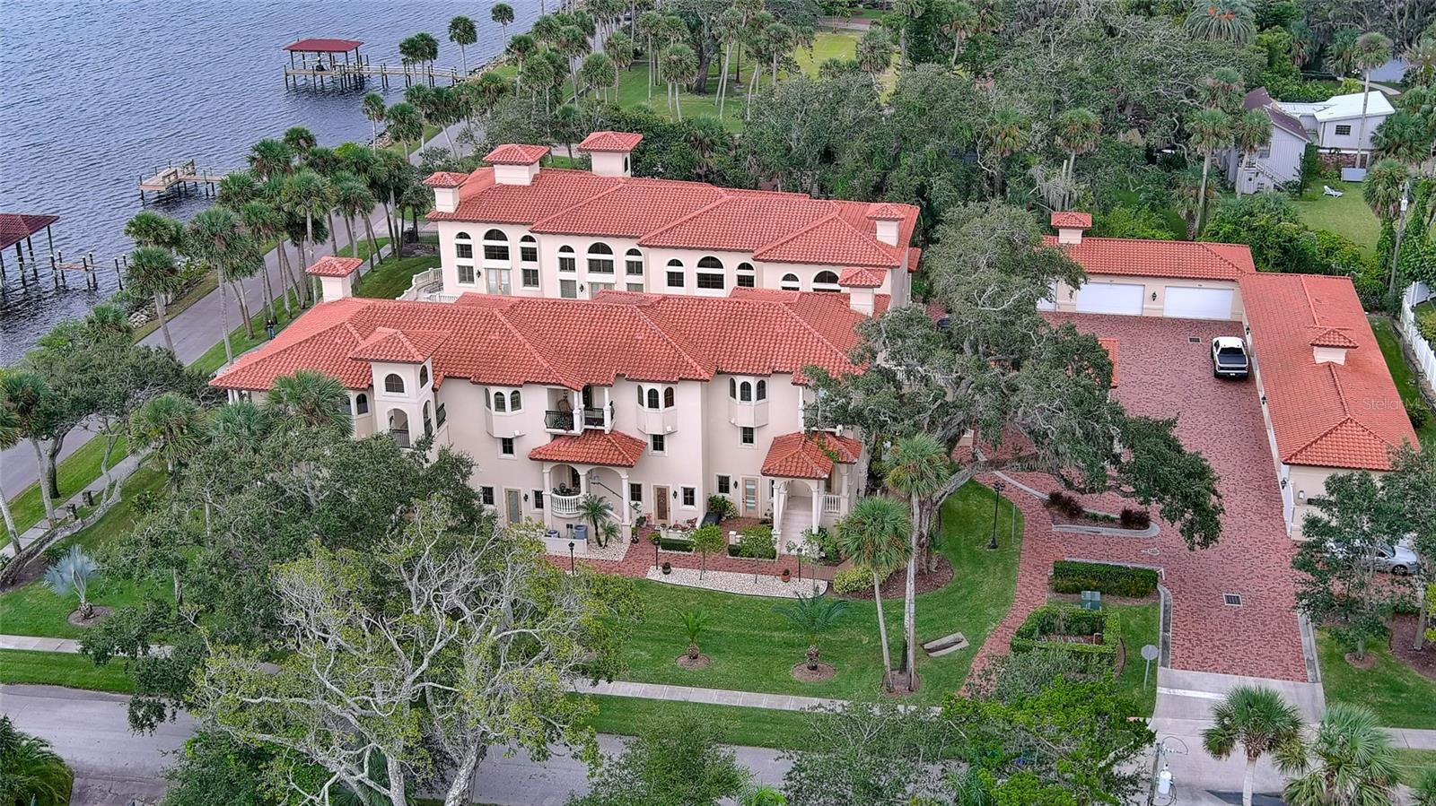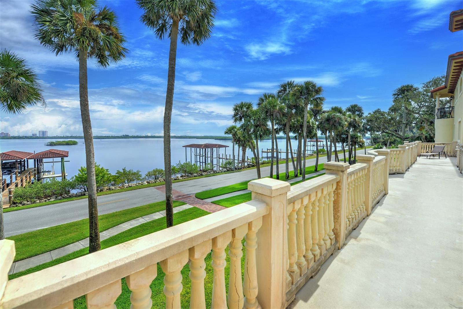 One or more photo(s) has been virtually staged. A PANORAMIC AND PREMIER WATERFRONT LOCATION- Built in 2010*3-story townhome*private elevator*4 Bedrooms*3 baths*2-car garage*covered boat docks*in-law quarters*2,704 air conditioned space*2 balconies w/water views*oversized kitchen w/walk-in pantry, granite counter tops, GE Profile stainless steel appliances*living room w/French doors to balcony*2 story ceiling*owner's suite w/sitting area, spa bath and tower balcony*plantation shutters*crown molding*hardwood flooring/porcelain tile*concrete block construction*guest bedrooms have private entrances*2 a/c units 2018*hot water heater 2023*inside sprinkler system*inside laundry w/splash tub*lots of storage*2 pets allowed - 30lbs each*conveniently located within 2 miles of restaurants, shopping and beach. Only 4 bedroom available in Portofino.