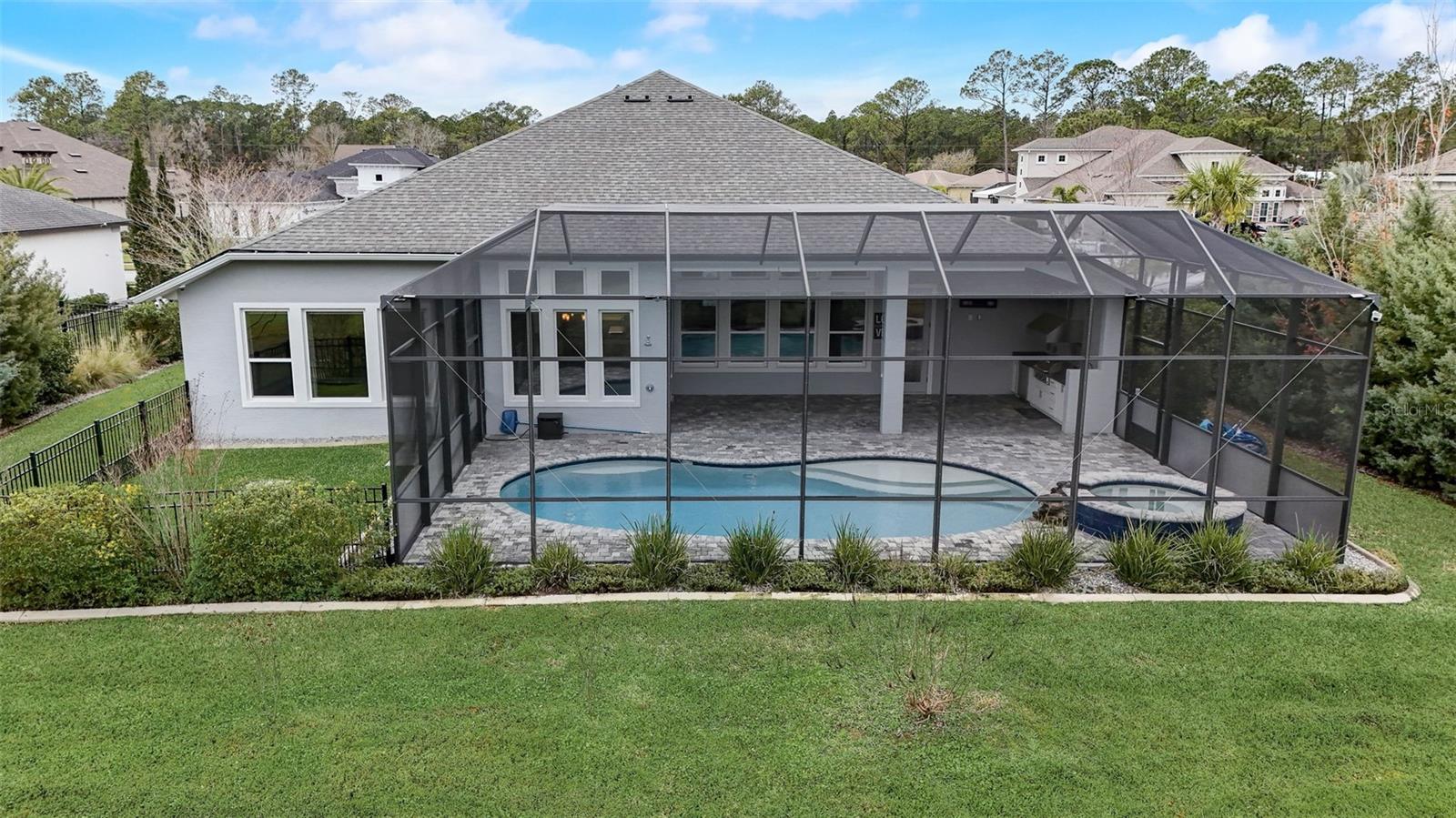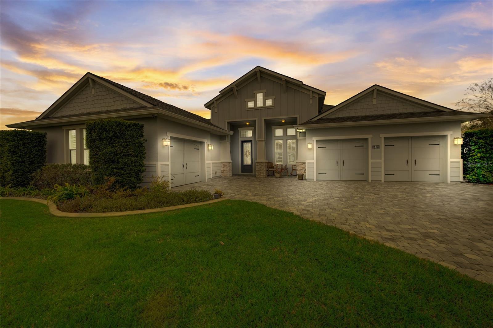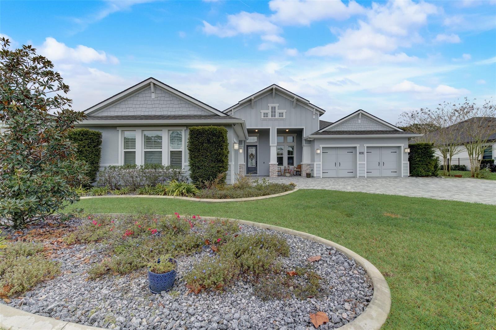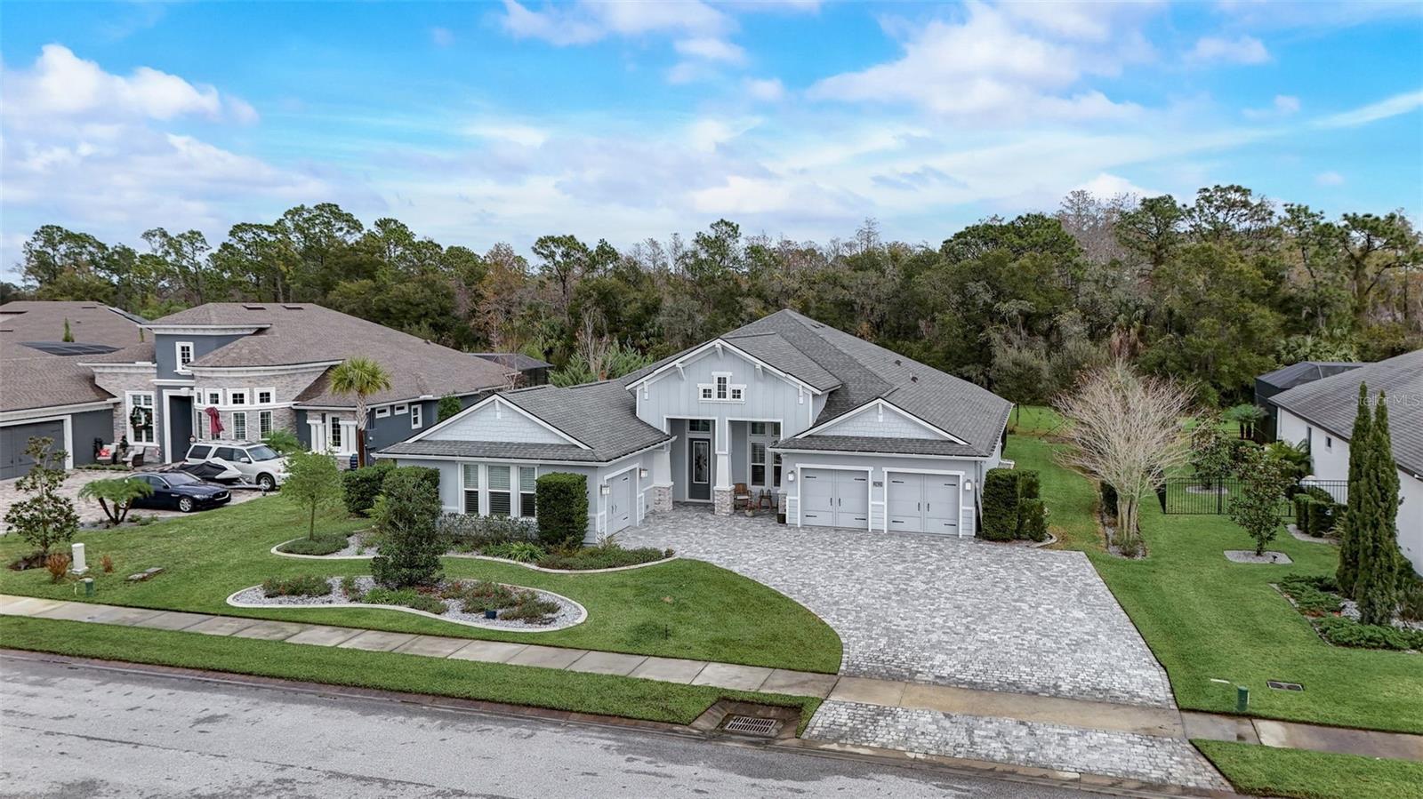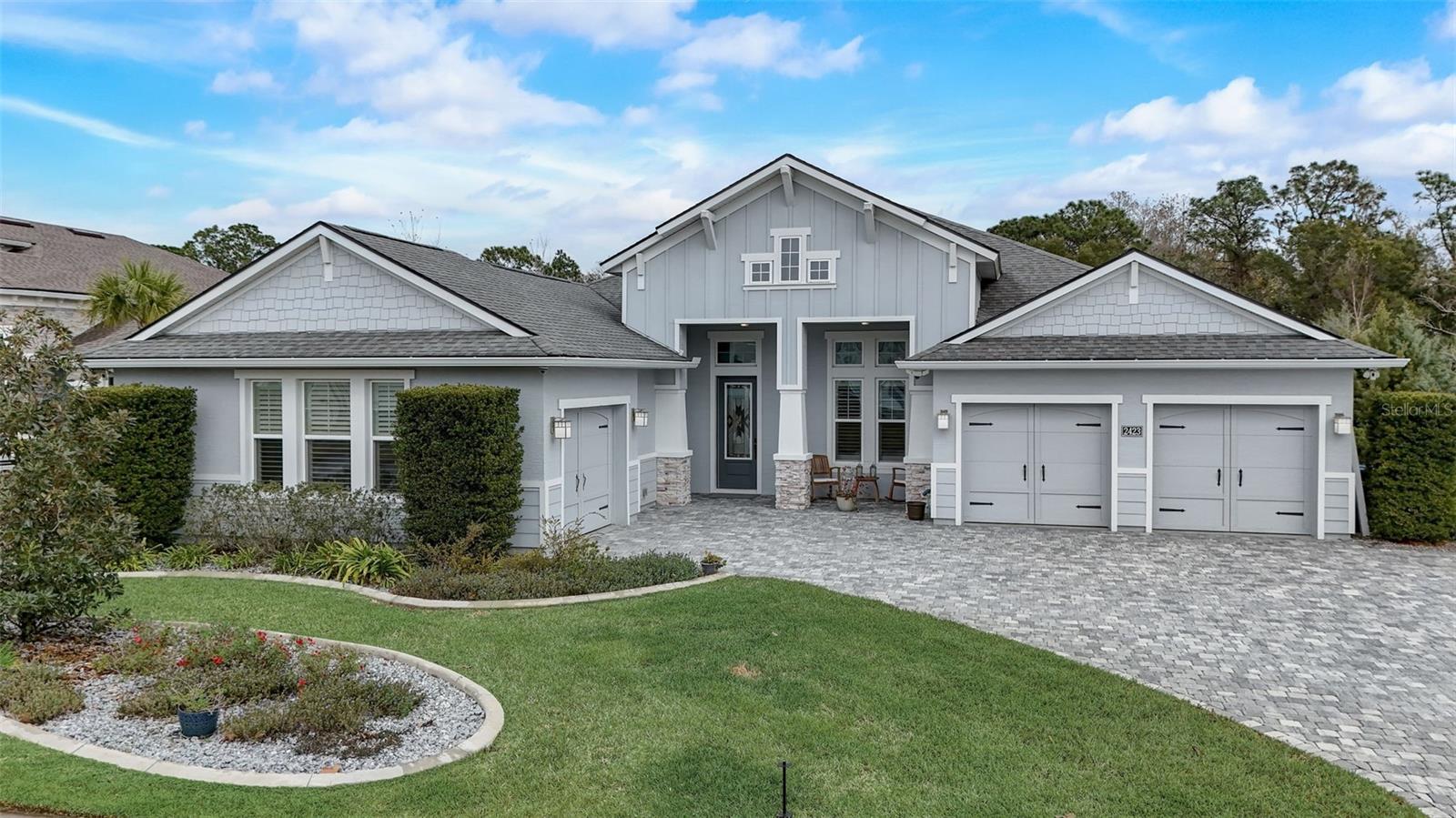Exceptional one story 3 garage home, complemented by upscale finishes invite comfort and exude elegance. The meticulously appointed open concept interior offers 4 bedrooms, 3.5 baths with one bedroom and bath boasting 36'' doorways. The great room's shiplap accented wall features a fireplace for ambiance and a wall of windows to let the sunshine in. An impressive chef's kitchen equipped with an abundance of cabinetry, large center island, quartz countertops and premium stainless appliances is sure to be a gathering place for family and friends, along with the adjacent dining room. The sumptuous sun filled owner's suite boasts an intricate double trey ceiling and double doors open to an opulent bath with a striking focal point, an oval soaking tub adorned with a sparkling chandelier accented by a waterfall tiled wall. There's also a spacious custom shower, double vanities, separate water closet as well as custom walk-in closet all open to the laundry room for convenience. Luxury high-end flooring from room to room with no transitions adds to the flow of this well appointed home. Also “both fiber and cable installed” Thoughtfully designed with entertainment in mind, the lanai is second to none with its marine grade outdoor summer kitchen complete with grill, side burner, vent hood with dual fans, refrigerator and sink with disposal. Savor serenity as you gaze at the waterfall cascading from the remote controlled heated SPA into the pool below, out door shower and themed remote controlled lighting, all overlooking private yard backed up the to preserve along with tall landscaped plantings on both sides of the home for your privacy. The home also features beautiful durable epoxied garage floors, hybrid water heater, a grunfos recirculating instant hot water pump, surround sound ceiling speakers in living room and Lanai, automatic controlled lighting in halls and bathroom and garage, There are Eufy floodlights around home with attached cameras as well as IP cameras. Nothing compares to having your own private resort-like retreat. Home has well that was installed when the house was built that is used for the home’s automated irrigation system and can also be used or other around the house needs. You are able to use All the SPRUCE CREEK amenities also SPRUCE CREEK COUNTRY CLUB Memberships Now Available.