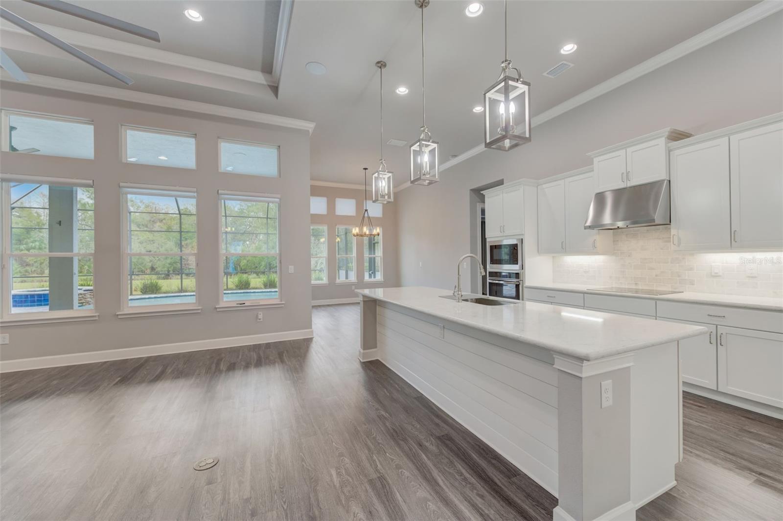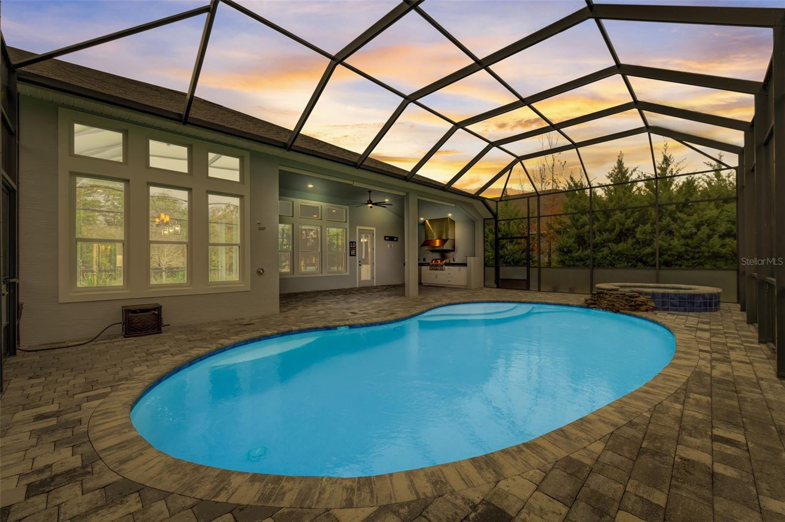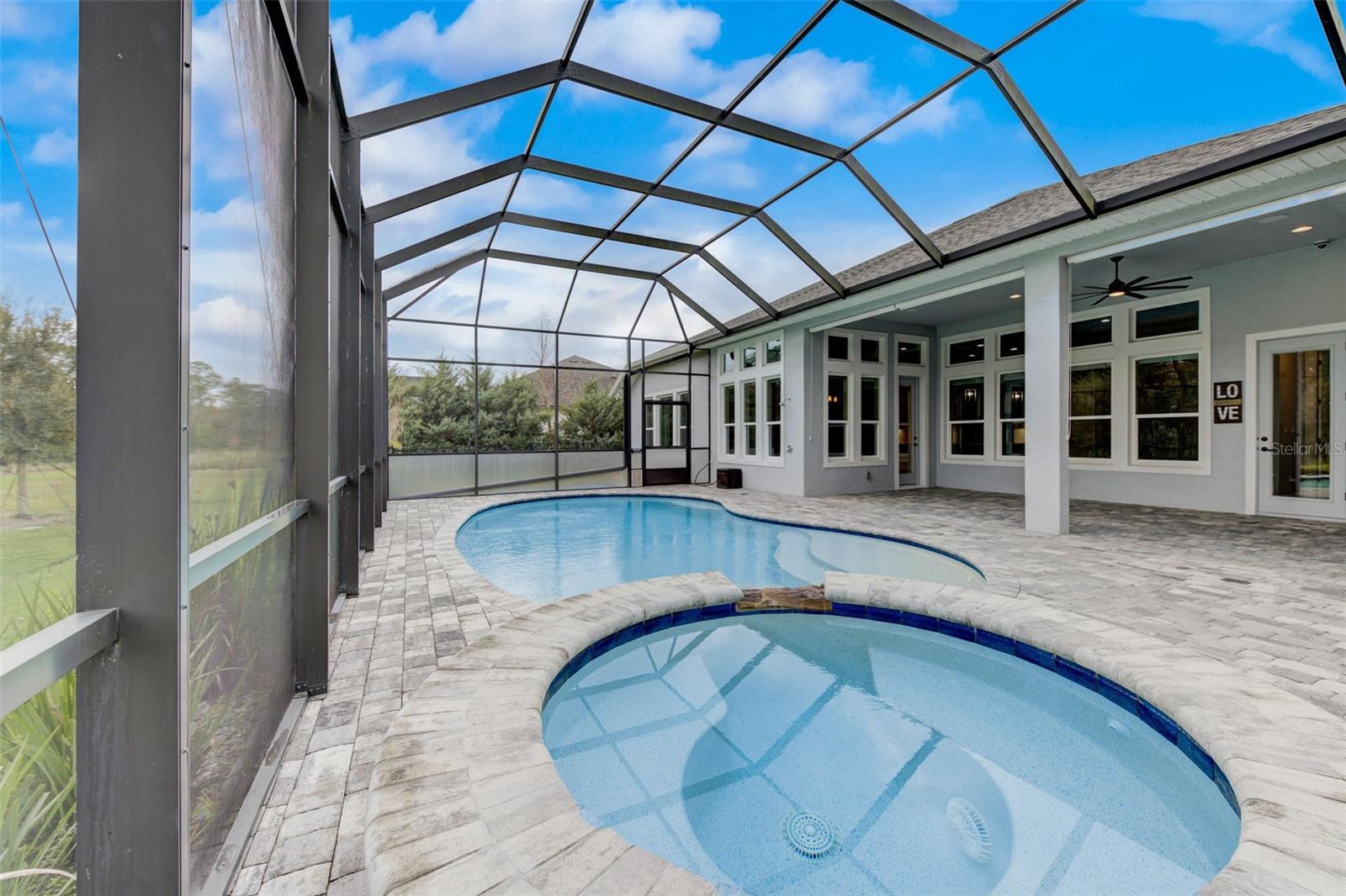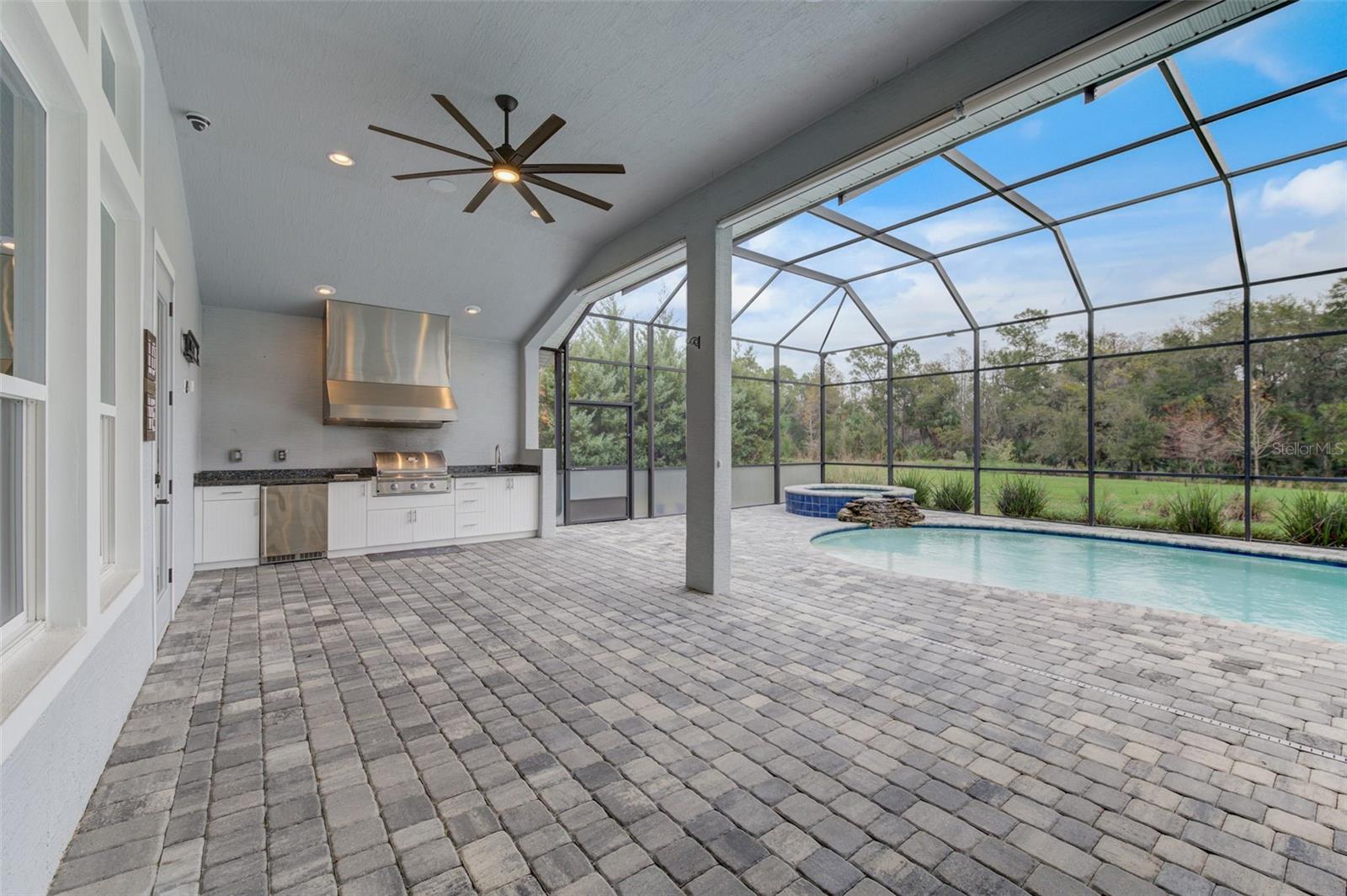 Exceptional one story 3 garage home, complemented by upscale finishes invite comfort and exude elegance. The meticulously appointed open concept interior offers 4 bedrooms, 3.5 baths with one bedroom and bath boasting 36'' doorways. The great room's shiplap accented wall features a fireplace for ambiance and a wall of windows to let the sunshine in. An impressive chef's kitchen equipped with an abundance of cabinetry, large center island, quartz countertops and premium stainless appliances is sure to be a gathering place for family and friends, along with the adjacent dining room. The sumptuous sun filled owner's suite boasts an intricate double trey ceiling and double doors open to an opulent bath with a striking focal point, an oval soaking tub adorned with a sparkling chandelier accented by a waterfall tiled wall. There's also a spacious custom shower, double vanities, separate water closet as well as custom walk-in closet all open to the laundry room for convenience. Luxury high-end flooring from room to room with no transitions adds to the flow of this well appointed home. Also “both fiber and cable installed” Thoughtfully designed with entertainment in mind, the lanai is second to none with its marine grade outdoor summer kitchen complete with grill, side burner, vent hood with dual fans, refrigerator and sink with disposal. Savor serenity as you gaze at the waterfall cascading from the remote controlled heated SPA into the pool below, out door shower and themed remote controlled lighting, all overlooking private yard backed up the to preserve along with tall landscaped plantings on both sides of the home for your privacy. The home also features beautiful durable epoxied garage floors, hybrid water heater, a grunfos recirculating instant hot water pump, surround sound ceiling speakers in living room and Lanai, automatic controlled lighting in halls and bathroom and garage, There are Eufy floodlights around home with attached cameras as well as IP cameras. Nothing compares to having your own private resort-like retreat. Home has well that was installed when the house was built that is used for the home’s automated irrigation system and can also be used or other around the house needs. You are able to use All the SPRUCE CREEK amenities also SPRUCE CREEK COUNTRY CLUB Memberships Now Available.