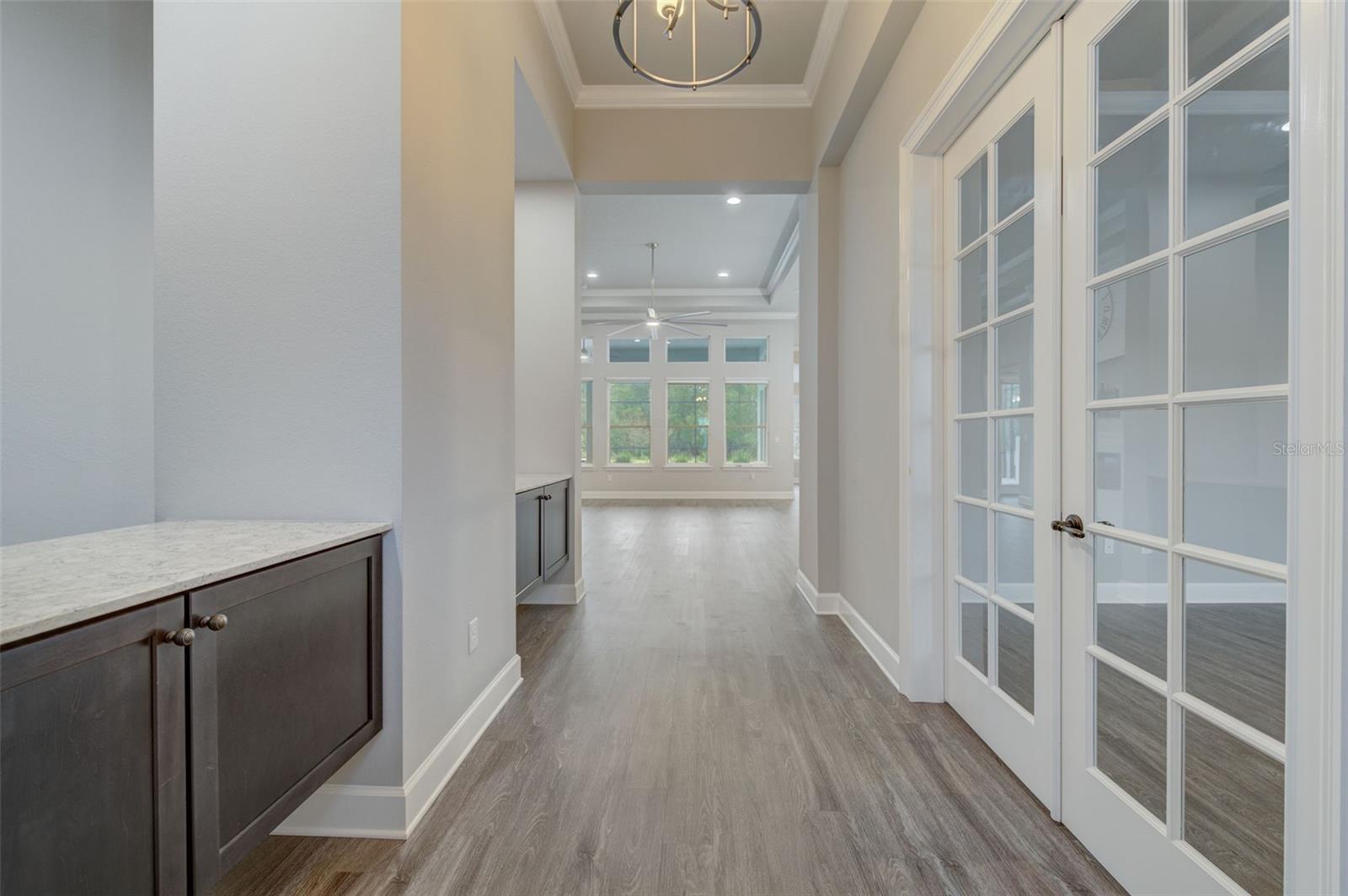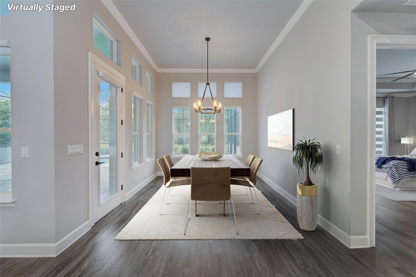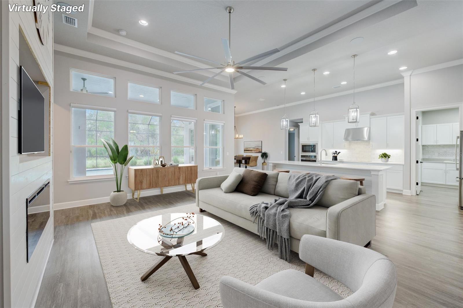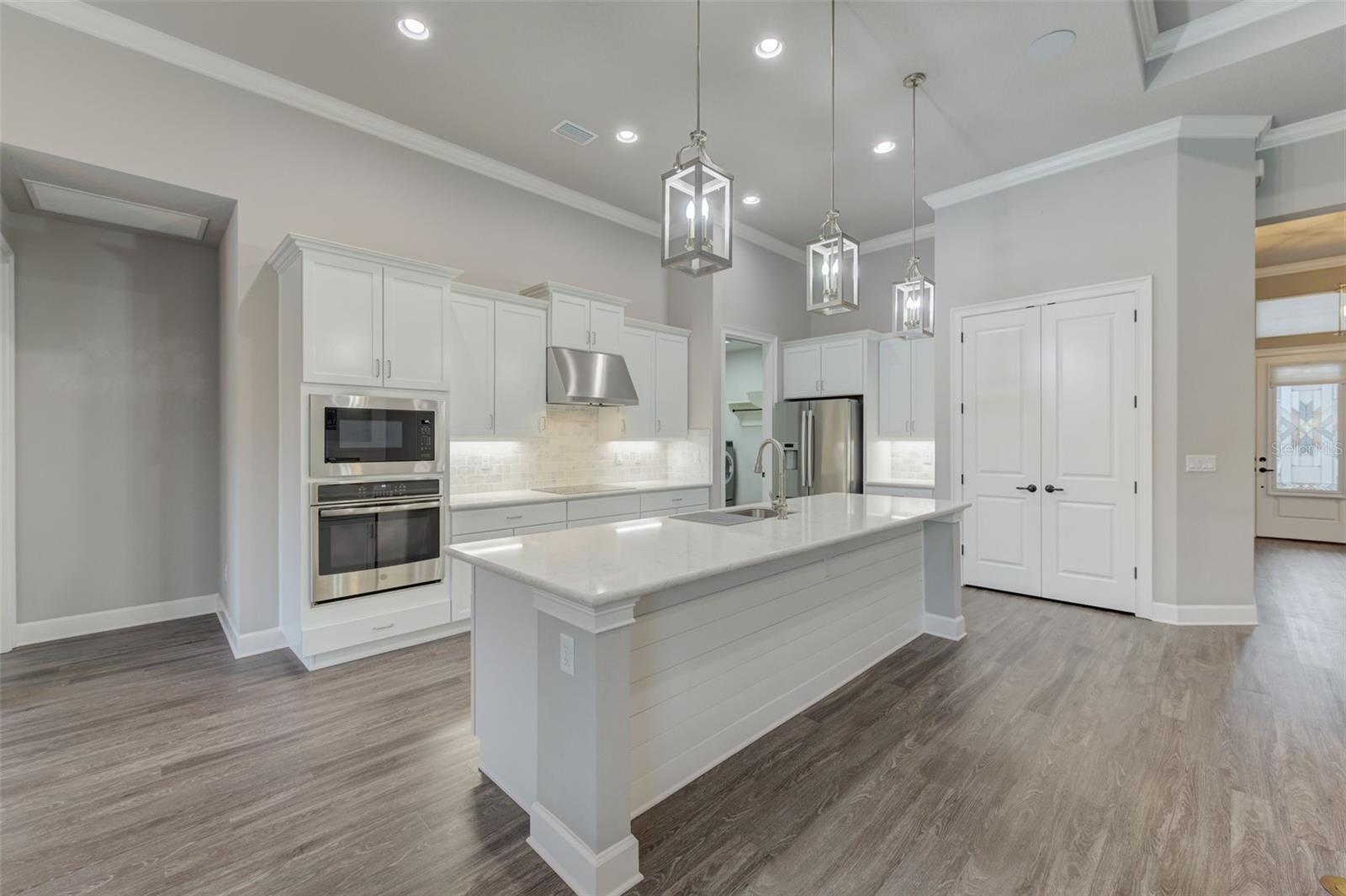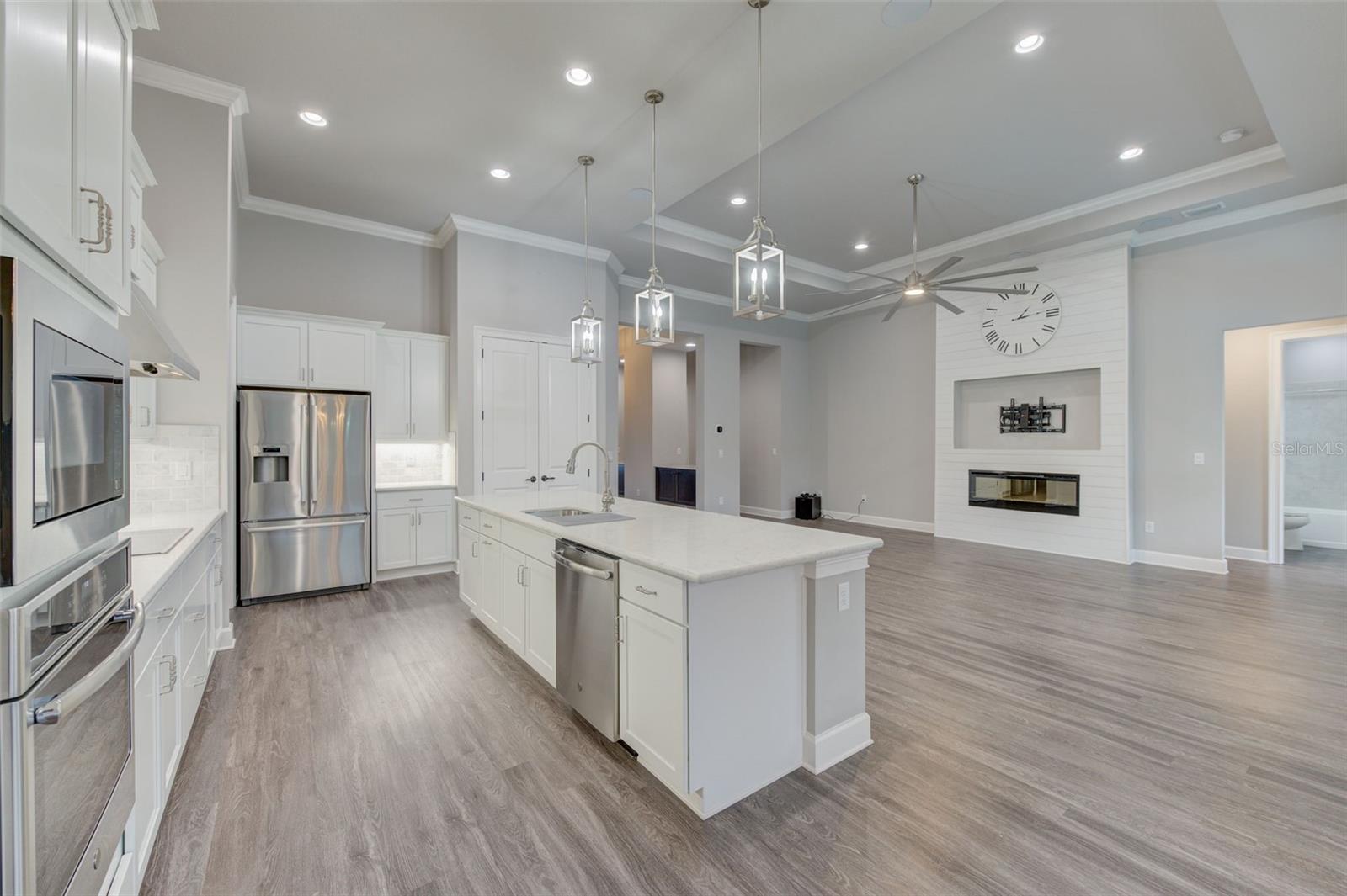 Exceptional one story 3 garage home, complemented by upscale finishes invite comfort and exude elegance. The meticulously appointed open concept interior offers 4 bedrooms, 3.5 baths with one bedroom and bath boasting 36'' doorways. The great room's shiplap accented wall features a fireplace for ambiance and a wall of windows to let the sunshine in. An impressive chef's kitchen equipped with an abundance of cabinetry, large center island, quartz countertops and premium stainless appliances is sure to be a gathering place for family and friends, along with the adjacent dining room. The sumptuous sun filled owner's suite boasts an intricate double trey ceiling and double doors open to an opulent bath with a striking focal point, an oval soaking tub adorned with a sparkling chandelier accented by a waterfall tiled wall. There's also a spacious custom shower, double vanities, separate water closet as well as custom walk-in closet all open to the laundry room for convenience. Luxury high-end flooring from room to room with no transitions adds to the flow of this well appointed home. Also “both fiber and cable installed” Thoughtfully designed with entertainment in mind, the lanai is second to none with its marine grade outdoor summer kitchen complete with grill, side burner, vent hood with dual fans, refrigerator and sink with disposal. Savor serenity as you gaze at the waterfall cascading from the remote controlled heated SPA into the pool below, out door shower and themed remote controlled lighting, all overlooking private yard backed up the to preserve along with tall landscaped plantings on both sides of the home for your privacy. The home also features beautiful durable epoxied garage floors, hybrid water heater, a grunfos recirculating instant hot water pump, surround sound ceiling speakers in living room and Lanai, automatic controlled lighting in halls and bathroom and garage, There are Eufy floodlights around home with attached cameras as well as IP cameras. Nothing compares to having your own private resort-like retreat. Home has well that was installed when the house was built that is used for the home’s automated irrigation system and can also be used or other around the house needs. You are able to use All the SPRUCE CREEK amenities also SPRUCE CREEK COUNTRY CLUB Memberships Now Available.