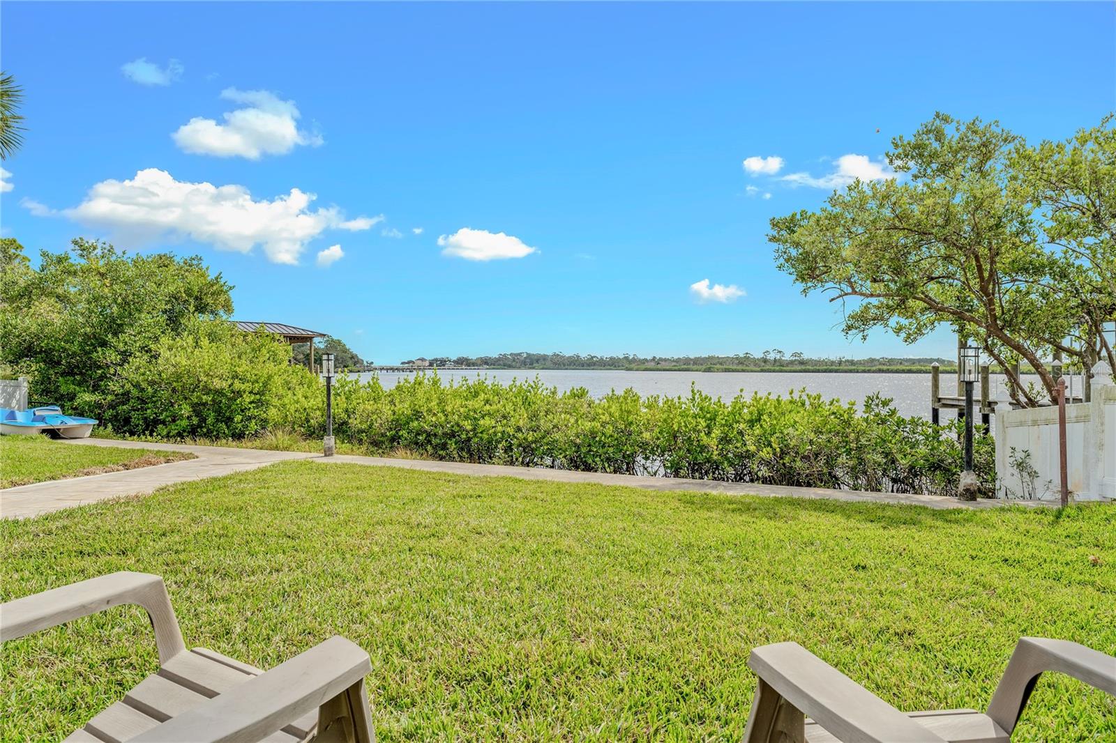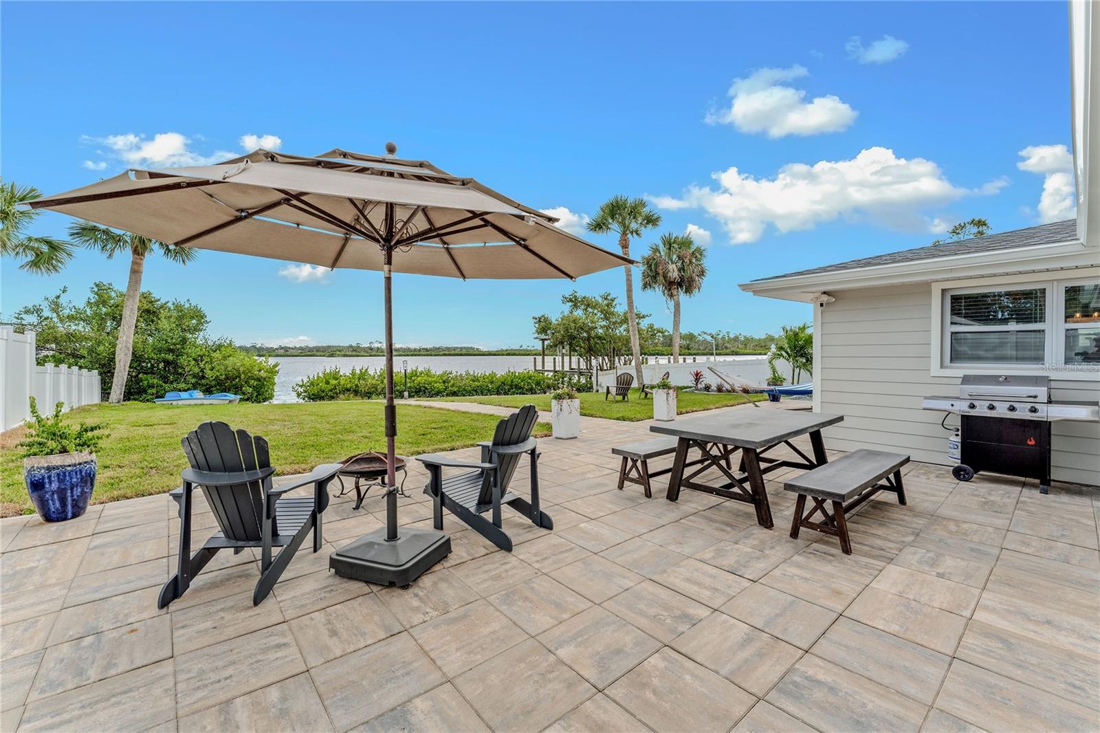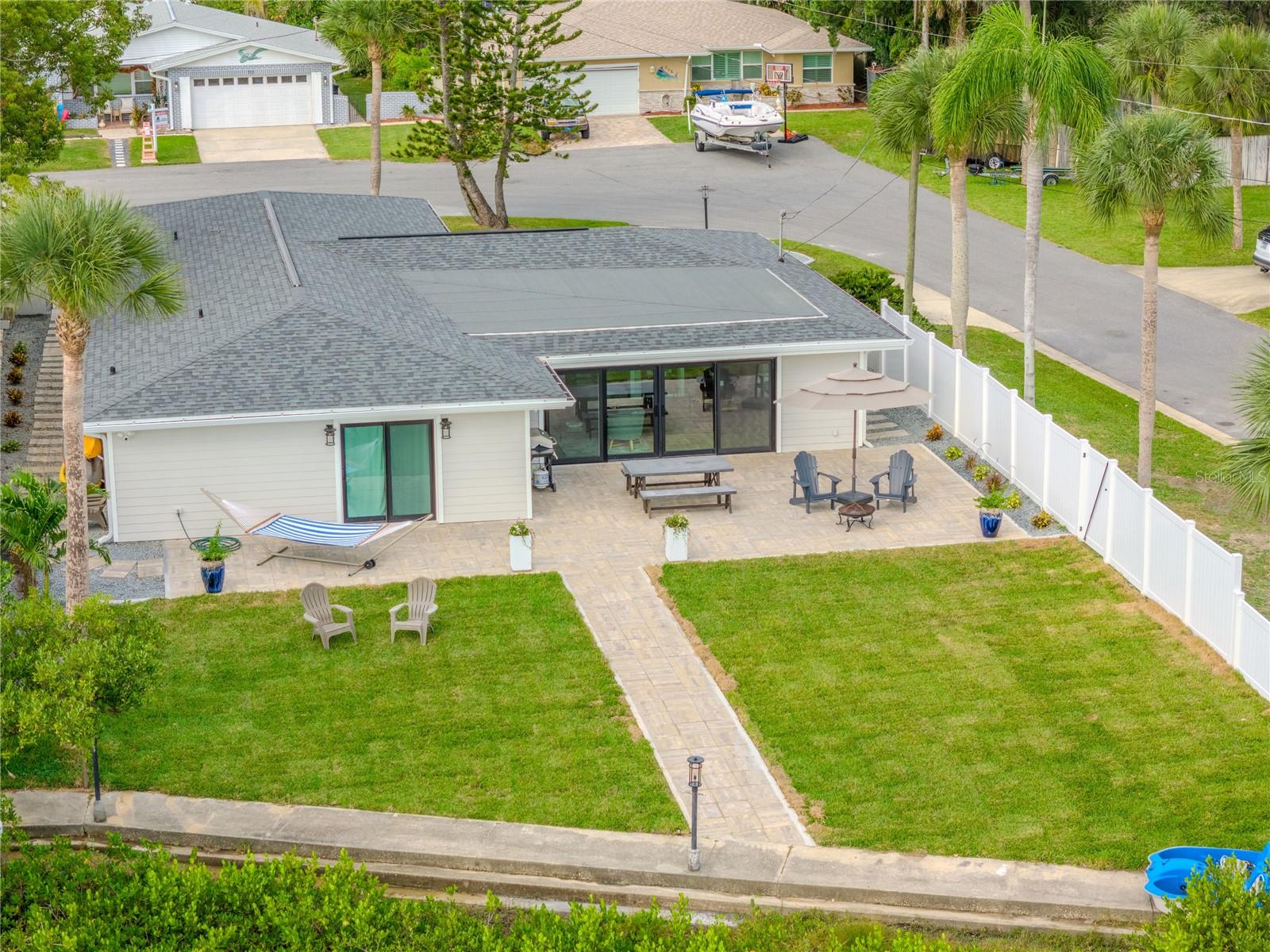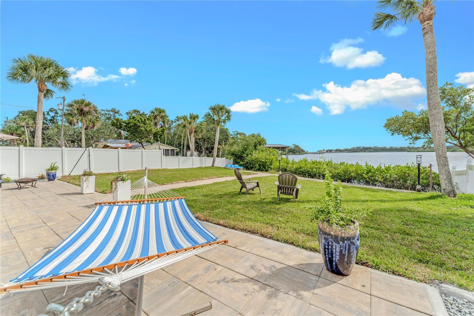 Indulge in the tranquility of coastal living with this enchanting property, boasting nearly 80 feet of bay frontage along the serene Rosebay. A gateway to coastal delights awaits you, inviting you to immerse yourself in expansive views, enjoy leisurely fishing and kayaking, and revel in the delightful company of dolphins and manatees—just a short boat ride away from the inlet and Disappearing Island. After a day spent on the water, find your oasis of calm on the hammock, gently swaying with the rhythm of the bay breeze on the spacious stone patio. The coastal charm seamlessly extends indoors, where a beautiful new bay window and sliders frame the scenery. Modern finishes, durable neutral porcelain tile, and custom light fixtures enhance the inviting atmosphere throughout the home. The heart of this tropical retreat lies in its open floor plan, anchored by a brand new kitchen featuring an entertainer's dream island. Discover the joy of cooking with all-new appliances and an extended area dedicated to your wine and coffee pleasures, offering ample storage for your convenience. The owner's suite is a dream space, providing a captivating view of Rosebay, a walk-in closet, a second storage closet, and an extended patio for those serene sunrise moments. Luxuriate in the upgraded master bath adorned with designer finishes. Two other generously sized bedrooms offer ample space and storage, complemented by a nearby delightful guest bath. This coastal haven is not only a retreat for the soul but also a practical investment with recent upgrades including a new roof, AC units, water heaters, appliances, windows, irrigation, and landscaping. Discover the allure of this home, nestled in a vibrant marine ecosystem right behind its walls, with delicious restaurants and pristine beaches just minutes away. Welcome to your new sanctuary by the sea!