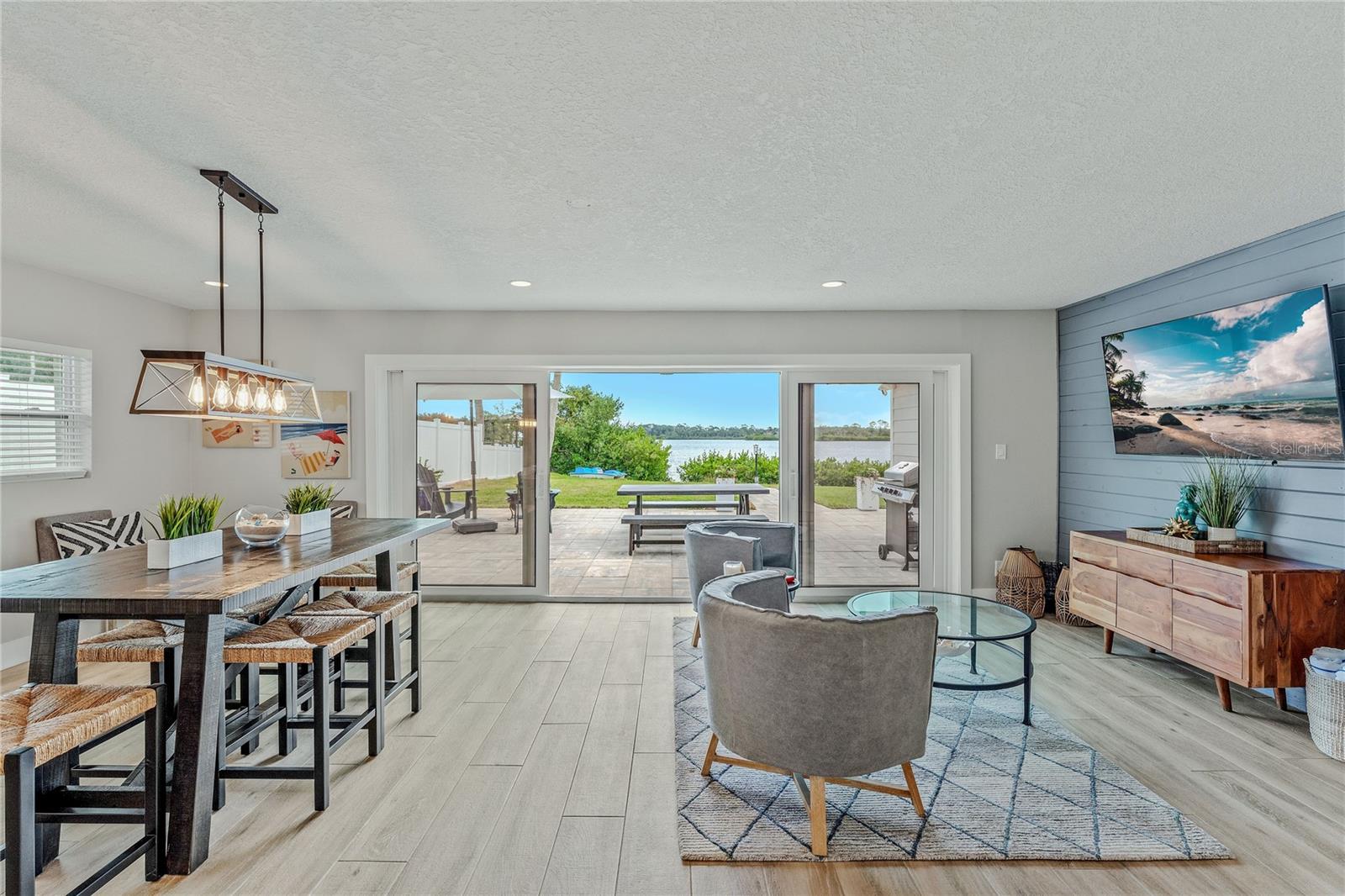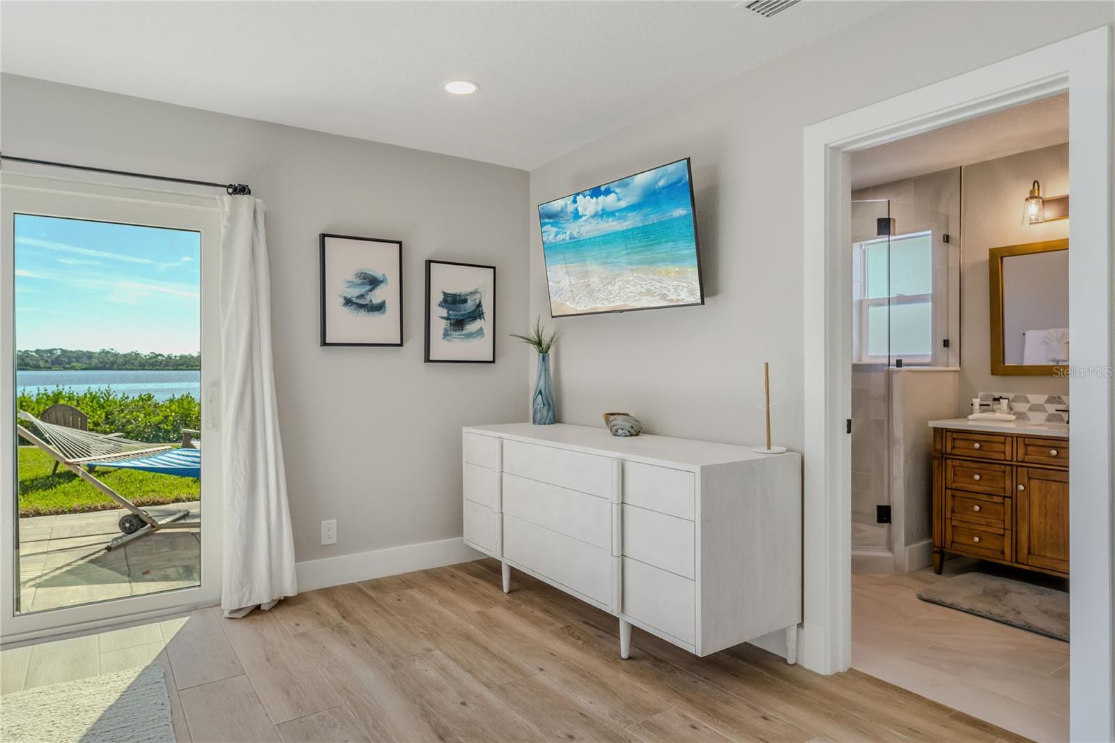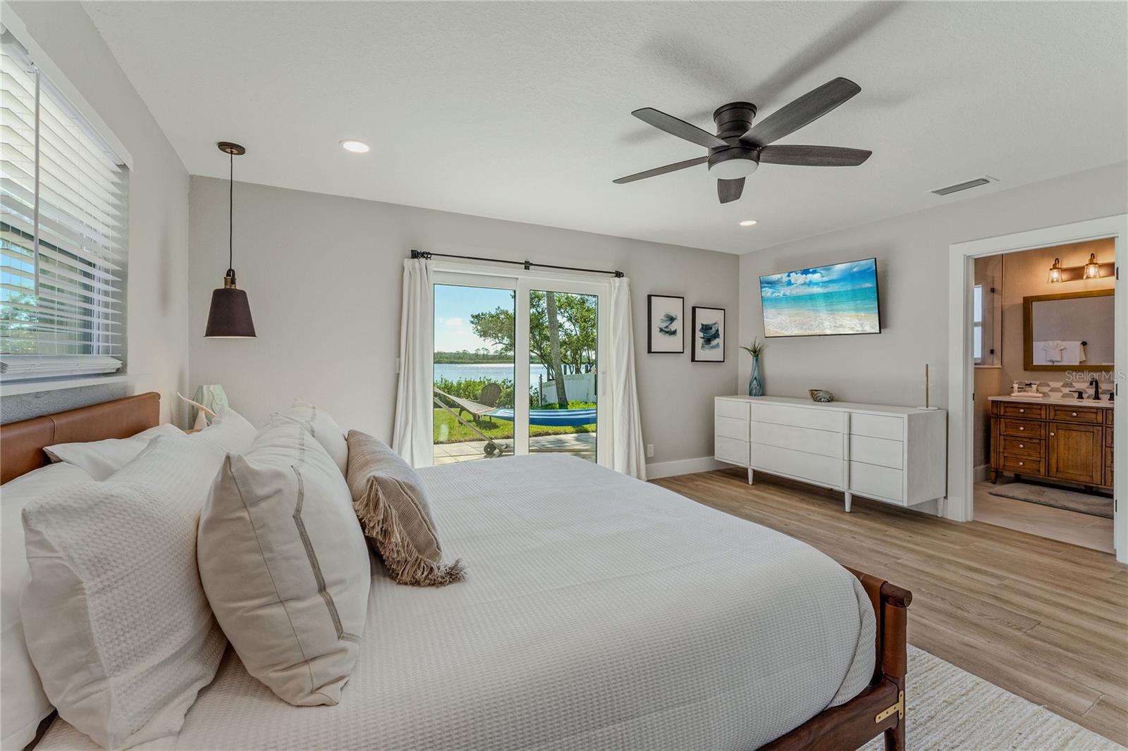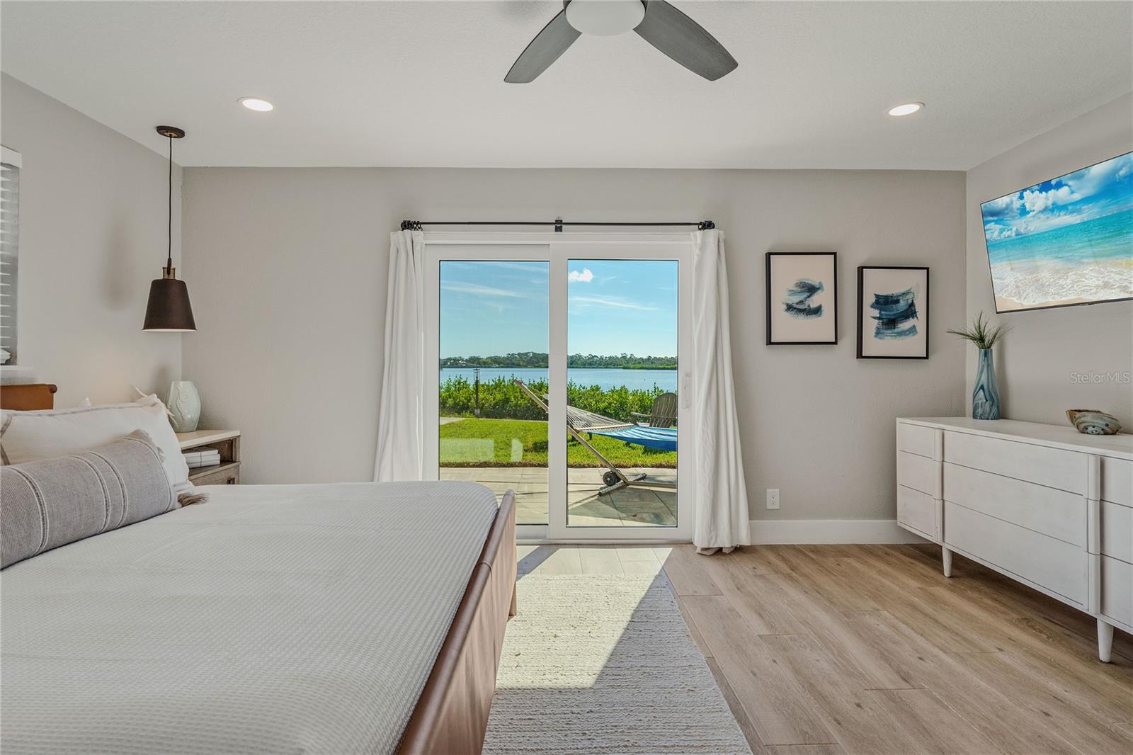 Indulge in the tranquility of coastal living with this enchanting property, boasting nearly 80 feet of bay frontage along the serene Rosebay. A gateway to coastal delights awaits you, inviting you to immerse yourself in expansive views, enjoy leisurely fishing and kayaking, and revel in the delightful company of dolphins and manatees—just a short boat ride away from the inlet and Disappearing Island. After a day spent on the water, find your oasis of calm on the hammock, gently swaying with the rhythm of the bay breeze on the spacious stone patio. The coastal charm seamlessly extends indoors, where a beautiful new bay window and sliders frame the scenery. Modern finishes, durable neutral porcelain tile, and custom light fixtures enhance the inviting atmosphere throughout the home. The heart of this tropical retreat lies in its open floor plan, anchored by a brand new kitchen featuring an entertainer's dream island. Discover the joy of cooking with all-new appliances and an extended area dedicated to your wine and coffee pleasures, offering ample storage for your convenience. The owner's suite is a dream space, providing a captivating view of Rosebay, a walk-in closet, a second storage closet, and an extended patio for those serene sunrise moments. Luxuriate in the upgraded master bath adorned with designer finishes. Two other generously sized bedrooms offer ample space and storage, complemented by a nearby delightful guest bath. This coastal haven is not only a retreat for the soul but also a practical investment with recent upgrades including a new roof, AC units, water heaters, appliances, windows, irrigation, and landscaping. Discover the allure of this home, nestled in a vibrant marine ecosystem right behind its walls, with delicious restaurants and pristine beaches just minutes away. Welcome to your new sanctuary by the sea!