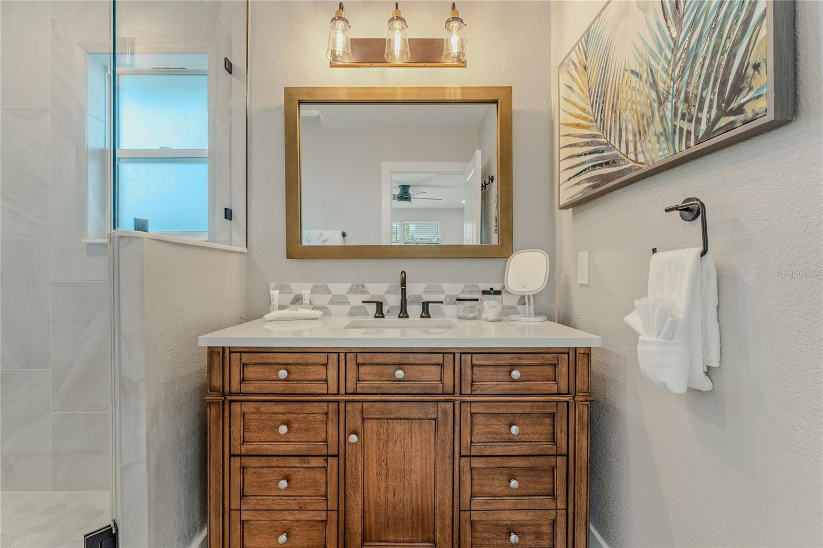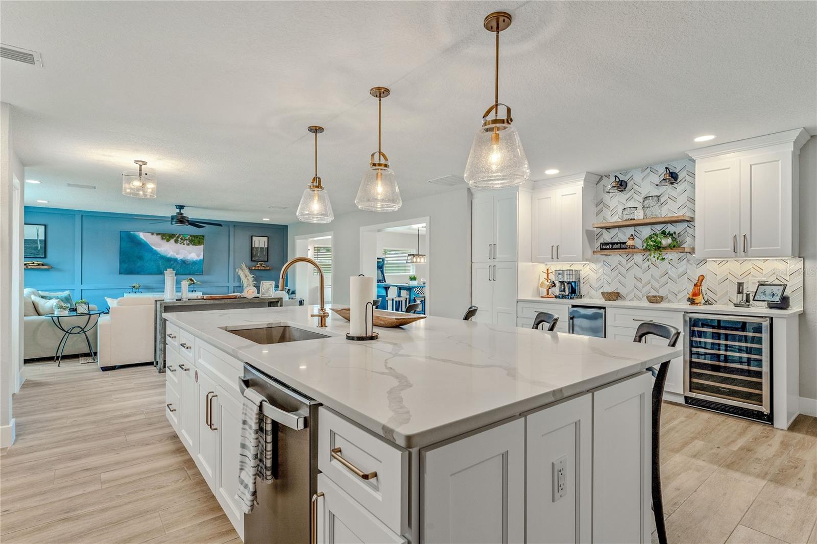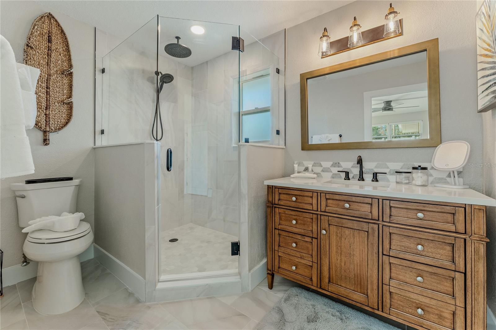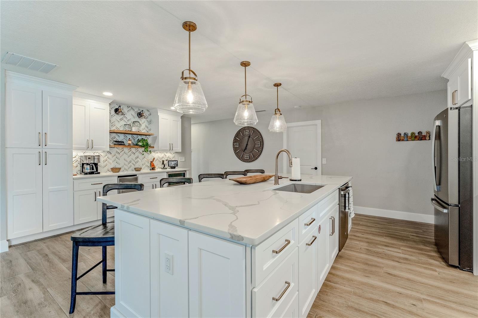 Indulge in the tranquility of coastal living with this enchanting property, boasting nearly 80 feet of bay frontage along the serene Rosebay. A gateway to coastal delights awaits you, inviting you to immerse yourself in expansive views, enjoy leisurely fishing and kayaking, and revel in the delightful company of dolphins and manatees—just a short boat ride away from the inlet and Disappearing Island. After a day spent on the water, find your oasis of calm on the hammock, gently swaying with the rhythm of the bay breeze on the spacious stone patio. The coastal charm seamlessly extends indoors, where a beautiful new bay window and sliders frame the scenery. Modern finishes, durable neutral porcelain tile, and custom light fixtures enhance the inviting atmosphere throughout the home. The heart of this tropical retreat lies in its open floor plan, anchored by a brand new kitchen featuring an entertainer's dream island. Discover the joy of cooking with all-new appliances and an extended area dedicated to your wine and coffee pleasures, offering ample storage for your convenience. The owner's suite is a dream space, providing a captivating view of Rosebay, a walk-in closet, a second storage closet, and an extended patio for those serene sunrise moments. Luxuriate in the upgraded master bath adorned with designer finishes. Two other generously sized bedrooms offer ample space and storage, complemented by a nearby delightful guest bath. This coastal haven is not only a retreat for the soul but also a practical investment with recent upgrades including a new roof, AC units, water heaters, appliances, windows, irrigation, and landscaping. Discover the allure of this home, nestled in a vibrant marine ecosystem right behind its walls, with delicious restaurants and pristine beaches just minutes away. Welcome to your new sanctuary by the sea!