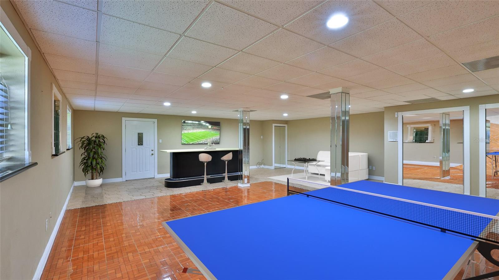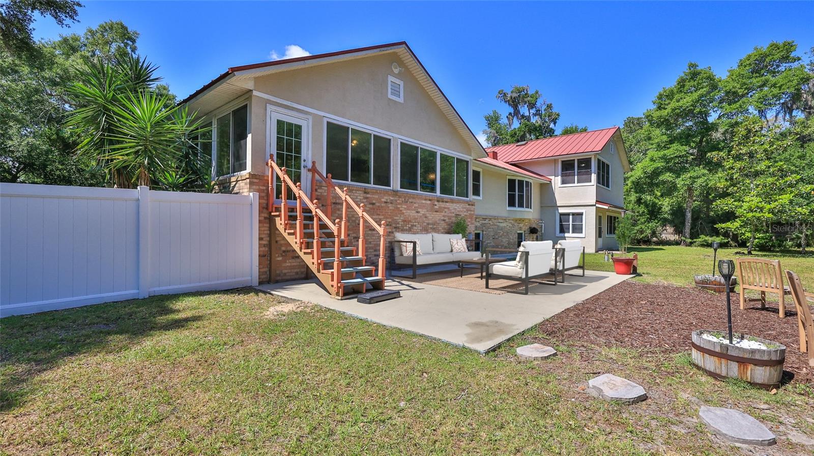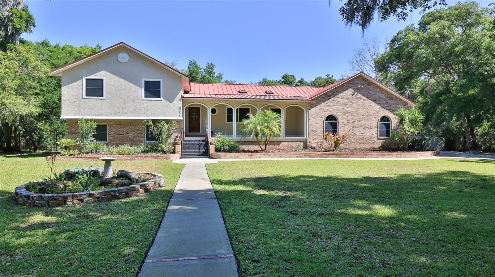 One or more photo(s) has been virtually staged. In the tranquil enclave of Spruce Creek Estates, 6221 Donna Circle presents a meticulously crafted four-bedroom, 3.5-bath residence exuding sophistication and comfort. The kitchen, a culinary haven, showcases sleek granite countertops, custom self-closing cabinetry and top-of-the-line stainless-steel appliances, including a 500-gallon propane range, double wall oven and a new refrigerator. The family room centers around a majestic brick fireplace with a motorized venting system, offering warmth and ambiance. The primary suite features a step-down private office, walk-in closet and an en-suite bath boasting a dual vanity. Bedrooms and guest rooms are adorned with freshly recarpeted floors, ensuring a cozy ambiance throughout. The lower level offers versatile living options, including an entertainment room with a large bar area and dance floor, ideal for multifamily living or as an in-law suite with its private entrance. Ample storage abounds with a two-level walk-in attic and 5-foot crawl spaces. Vinyl and wood fencing encloses the backyard, ideal for pets or children. The garage has 12-foot ceilings. The property's durability is enhanced by an impact metal roof, and six storm-rated skylights ensuring resilience and energy efficiency. Additionally, the residence boasts a host of desirable features such as marble windowsills, two HVAC systems installed in 2014 and a metal roof installed in 2013. The lower level's entertainment room with a large bar area and dance floor adds to the home's allure, while the concrete block and brick construction provide stability and longevity. On a quiet cul-de-sac, the property offers privacy and convenience, with proximity to shopping, dining and entertainment options. This exceptional residence epitomizes luxurious living in Port Orange with A-rated schools, offering a blend of elegance, functionality and enduring quality.
