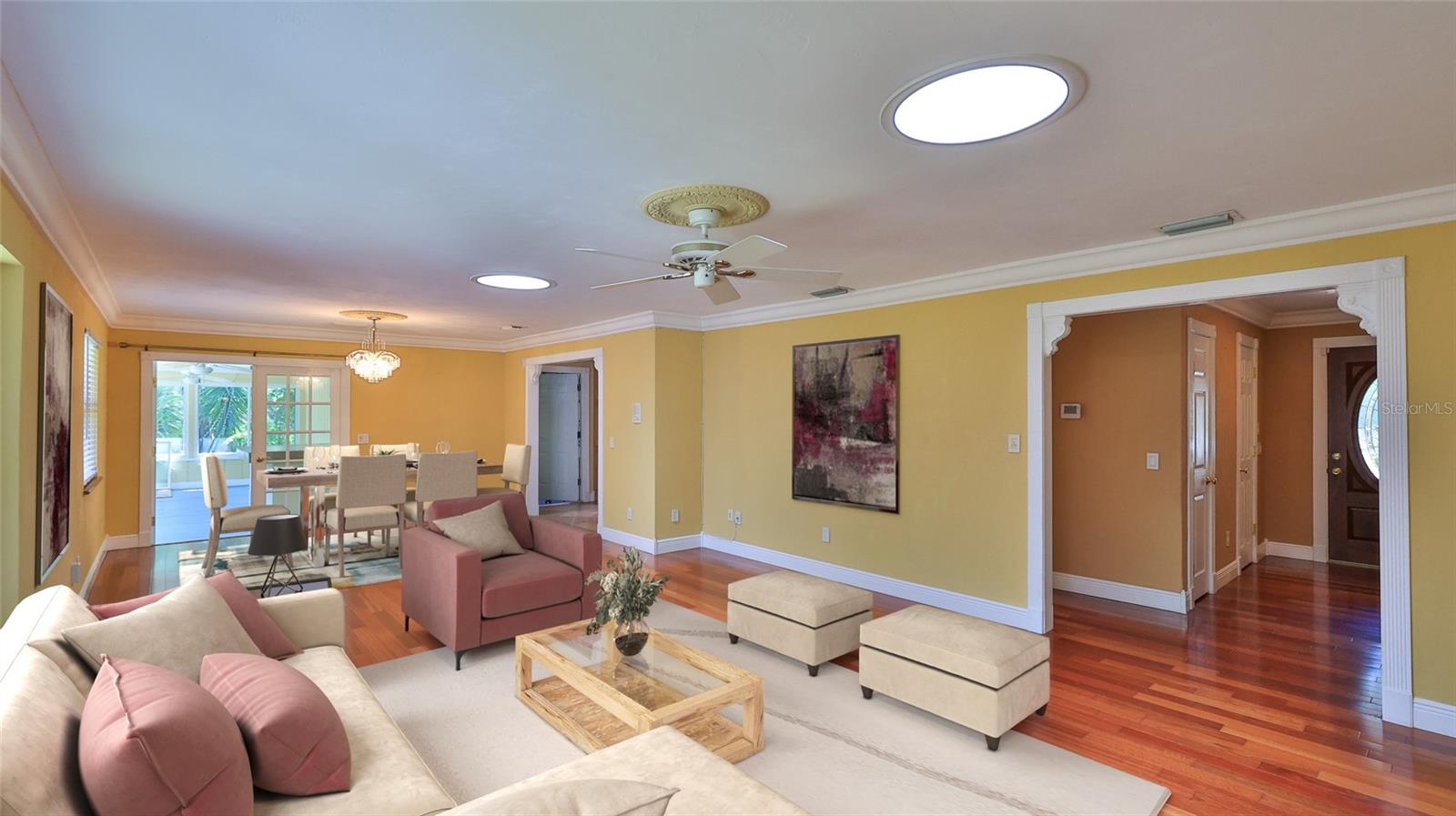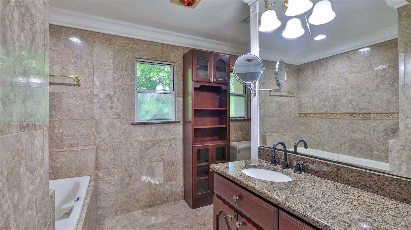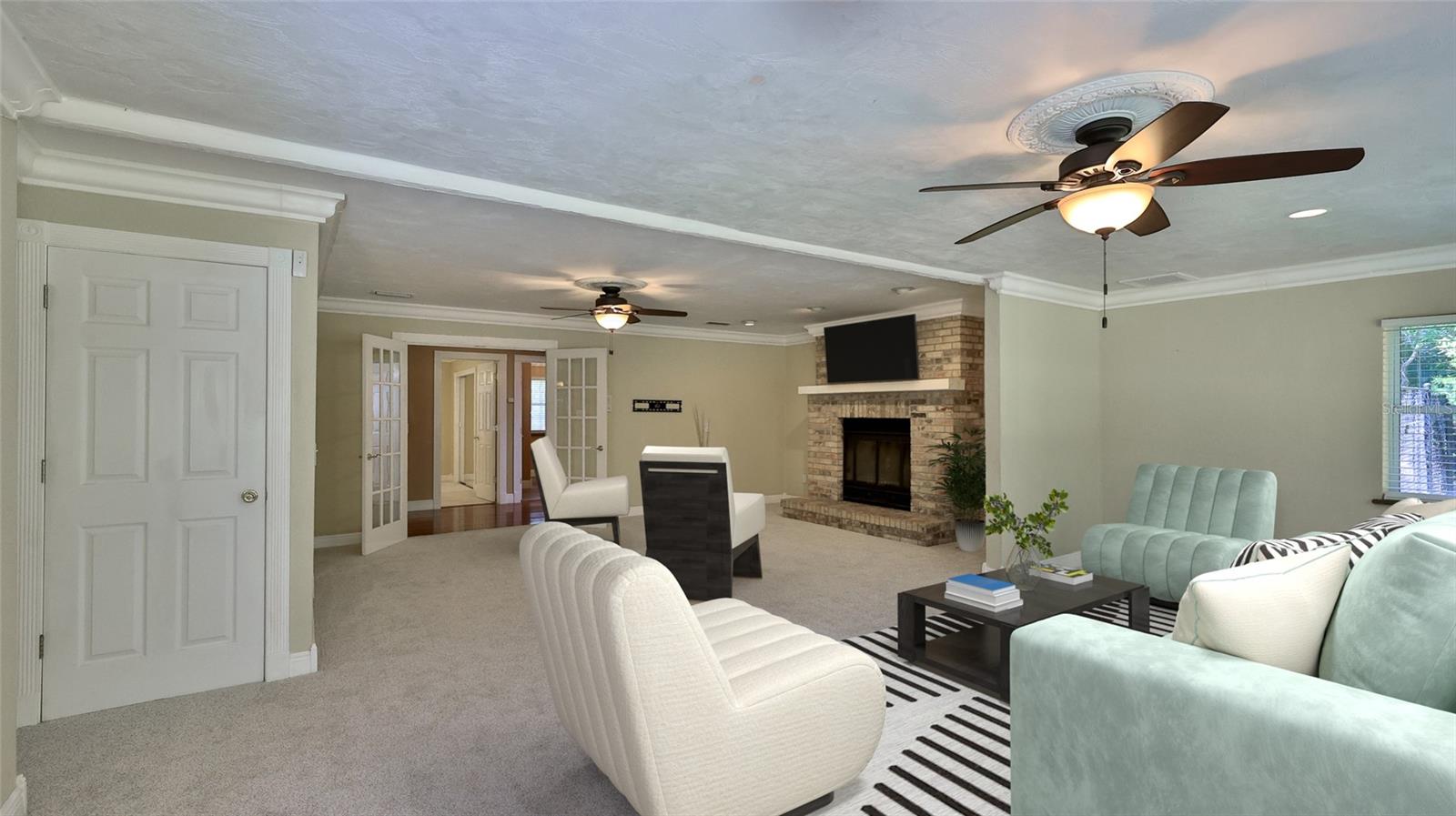 One or more photo(s) has been virtually staged. In the tranquil enclave of Spruce Creek Estates, 6221 Donna Circle presents a meticulously crafted four-bedroom, 3.5-bath residence exuding sophistication and comfort. The kitchen, a culinary haven, showcases sleek granite countertops, custom self-closing cabinetry and top-of-the-line stainless-steel appliances, including a 500-gallon propane range, double wall oven and a new refrigerator. The family room centers around a majestic brick fireplace with a motorized venting system, offering warmth and ambiance. The primary suite features a step-down private office, walk-in closet and an en-suite bath boasting a dual vanity. Bedrooms and guest rooms are adorned with freshly recarpeted floors, ensuring a cozy ambiance throughout. The lower level offers versatile living options, including an entertainment room with a large bar area and dance floor, ideal for multifamily living or as an in-law suite with its private entrance. Ample storage abounds with a two-level walk-in attic and 5-foot crawl spaces. Vinyl and wood fencing encloses the backyard, ideal for pets or children. The garage has 12-foot ceilings. The property's durability is enhanced by an impact metal roof, and six storm-rated skylights ensuring resilience and energy efficiency. Additionally, the residence boasts a host of desirable features such as marble windowsills, two HVAC systems installed in 2014 and a metal roof installed in 2013. The lower level's entertainment room with a large bar area and dance floor adds to the home's allure, while the concrete block and brick construction provide stability and longevity. On a quiet cul-de-sac, the property offers privacy and convenience, with proximity to shopping, dining and entertainment options. This exceptional residence epitomizes luxurious living in Port Orange with A-rated schools, offering a blend of elegance, functionality and enduring quality.
