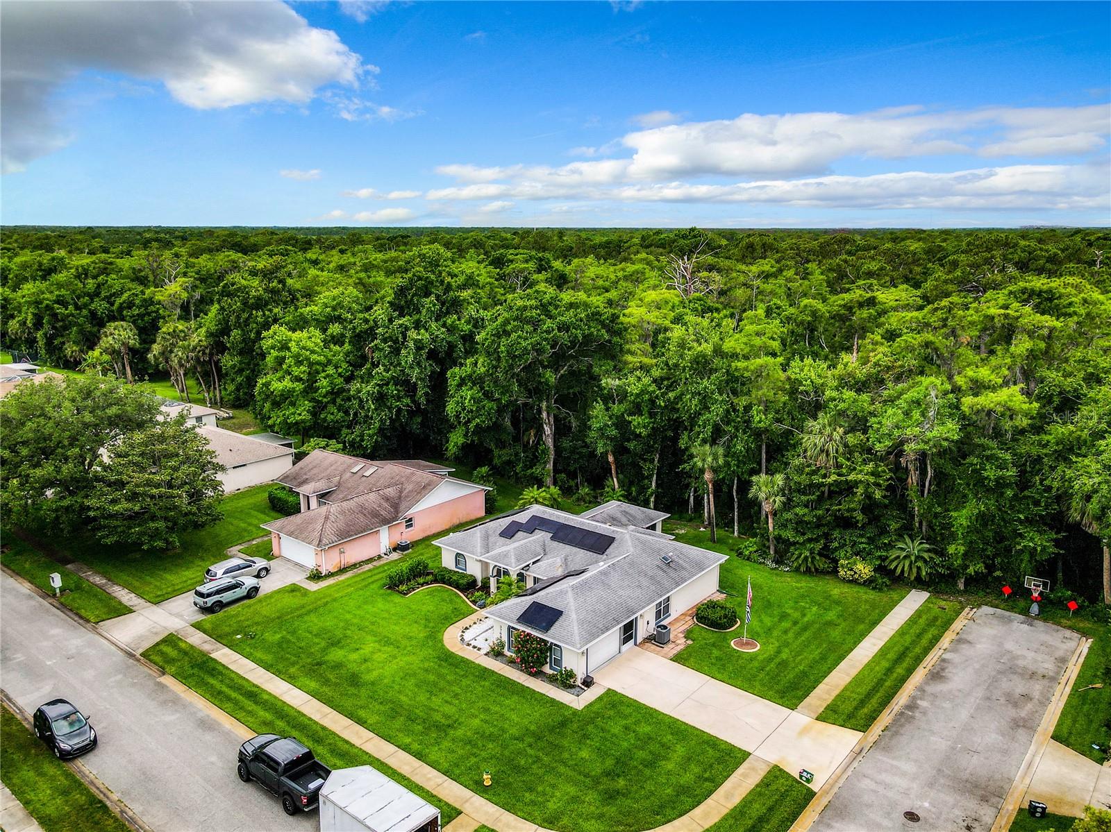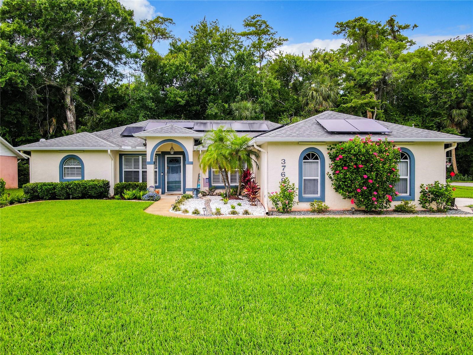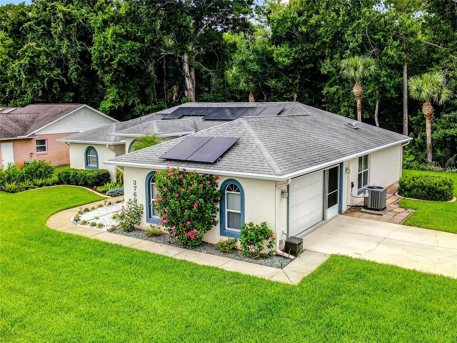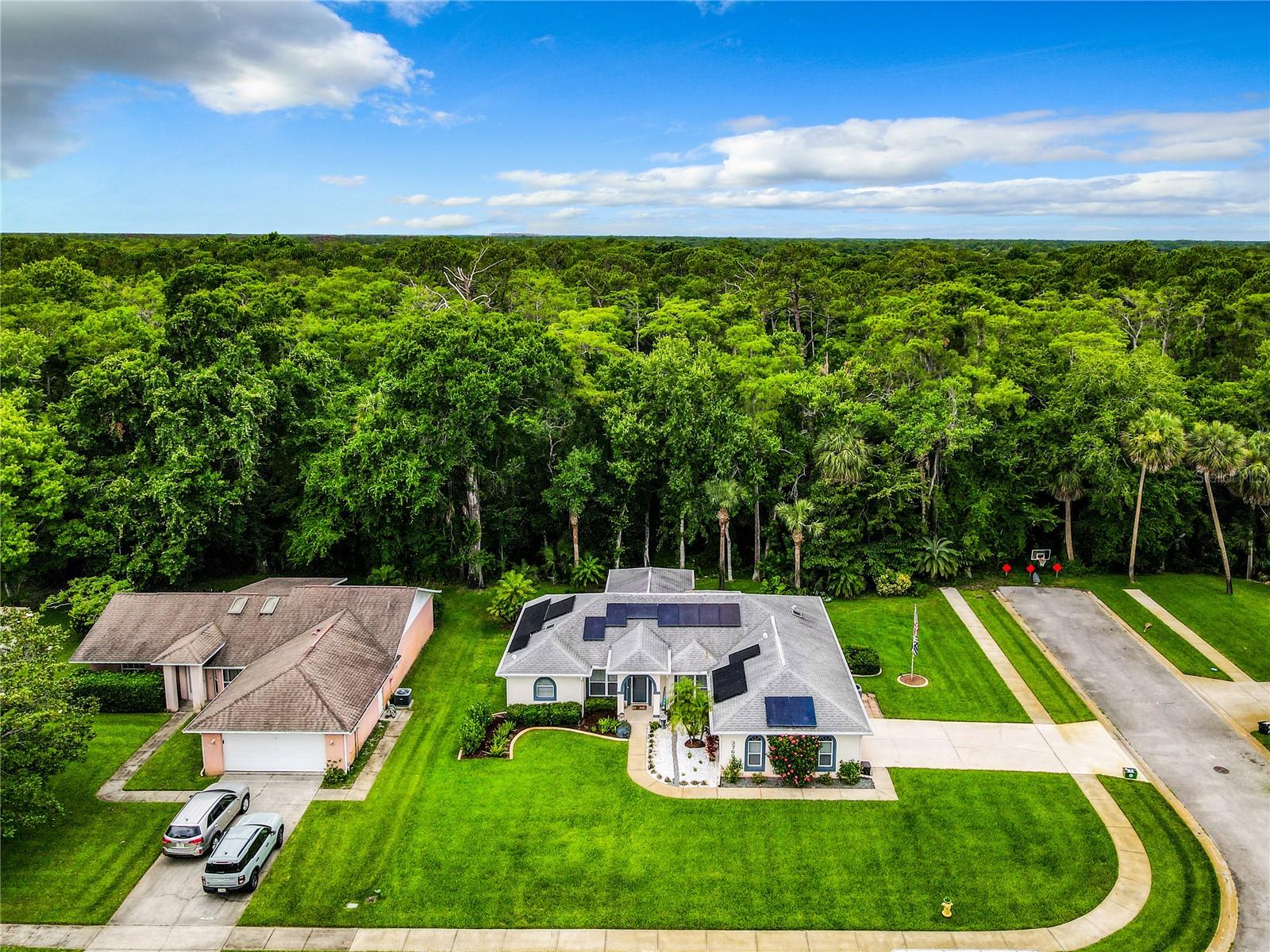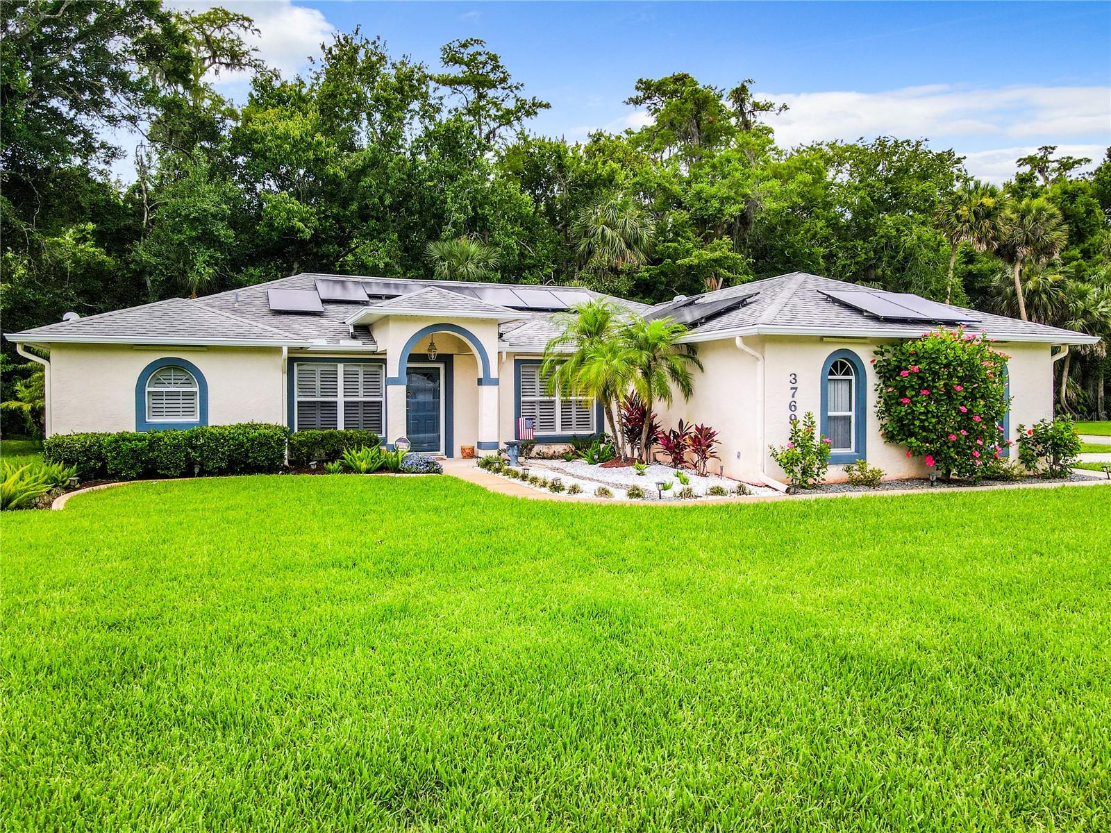 **Price Improvement & Solar Panel Paid Off at Closing**: Excited to make this house your home? Use our preferred lender and enjoy these exclusive savings*: Solar-powered bliss in Port Orange! Located on a peaceful corner lot abutting a preserve, this gorgeous 3-bed, 2-bath home offers a wealth of modern comforts and thoughtful touches that make everyday living effortless. As you arrive, the well- manicured lawn and lush landscaping invite you toward the airy living room and office area. This welcoming space with vaulted ceilings seamlessly into a more private sitting area and the open-concept kitchen/dining room. The kitchen gently gives way to the covered lanai area overlooking the backyard oasis adorned with palm trees and enough space for al-fresco dining with nothing but nature as far as you can see. Back inside, the primary suite awaits with 2 walk-in closets, and a luxurious ensuite with a deep soaking tub. Highlights include a newer AC system, tons of storage in the attached garage, a full laundry room, and easy access to shops, businesses, and nearby Daytona Beach! Get ready to enjoy secluded comfort on Grove View Lane! Excited to make this house your home? Use our preferred lender and enjoy these exclusive savings. 1 Year Home Warranty provided by Seller!