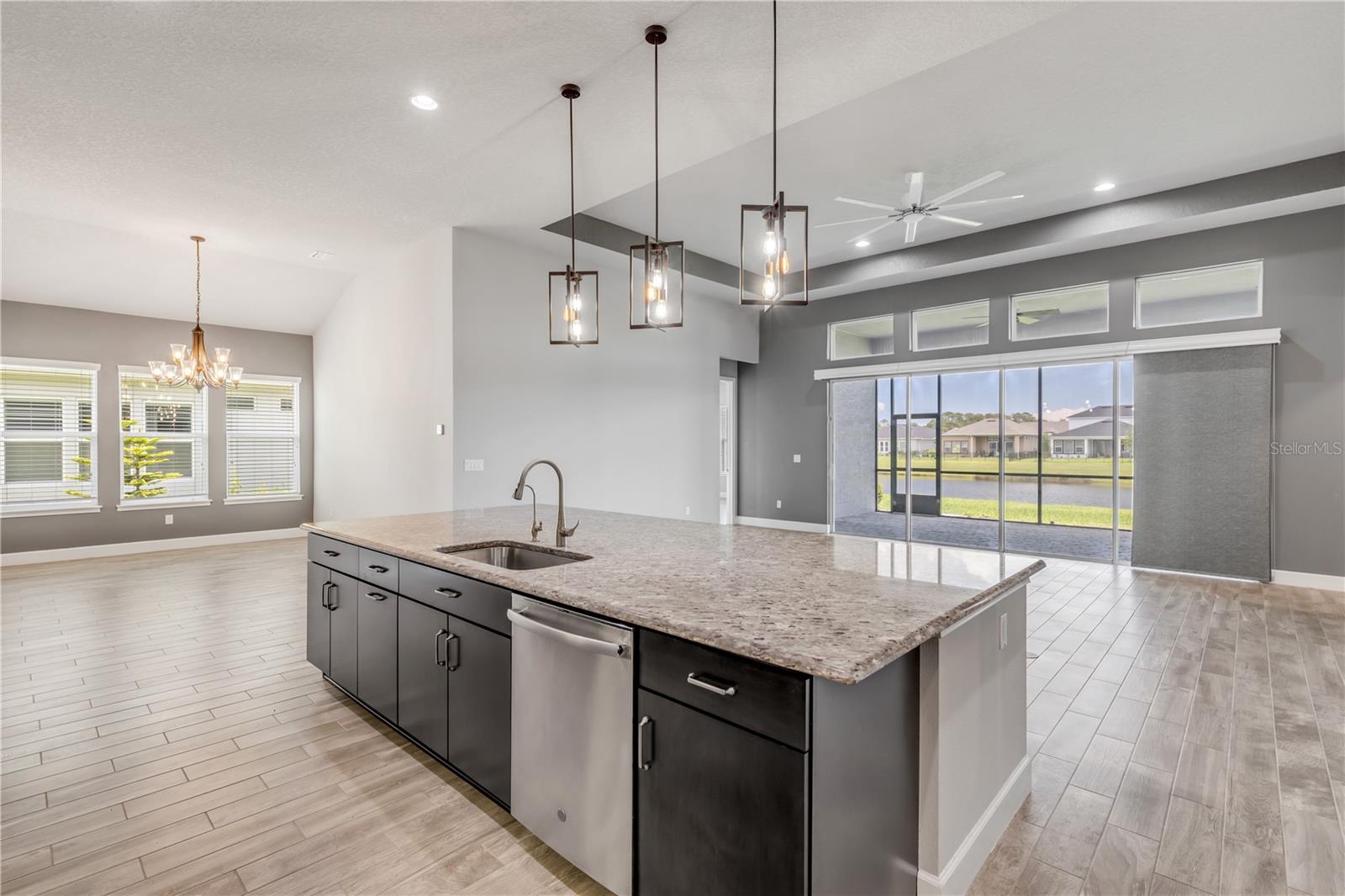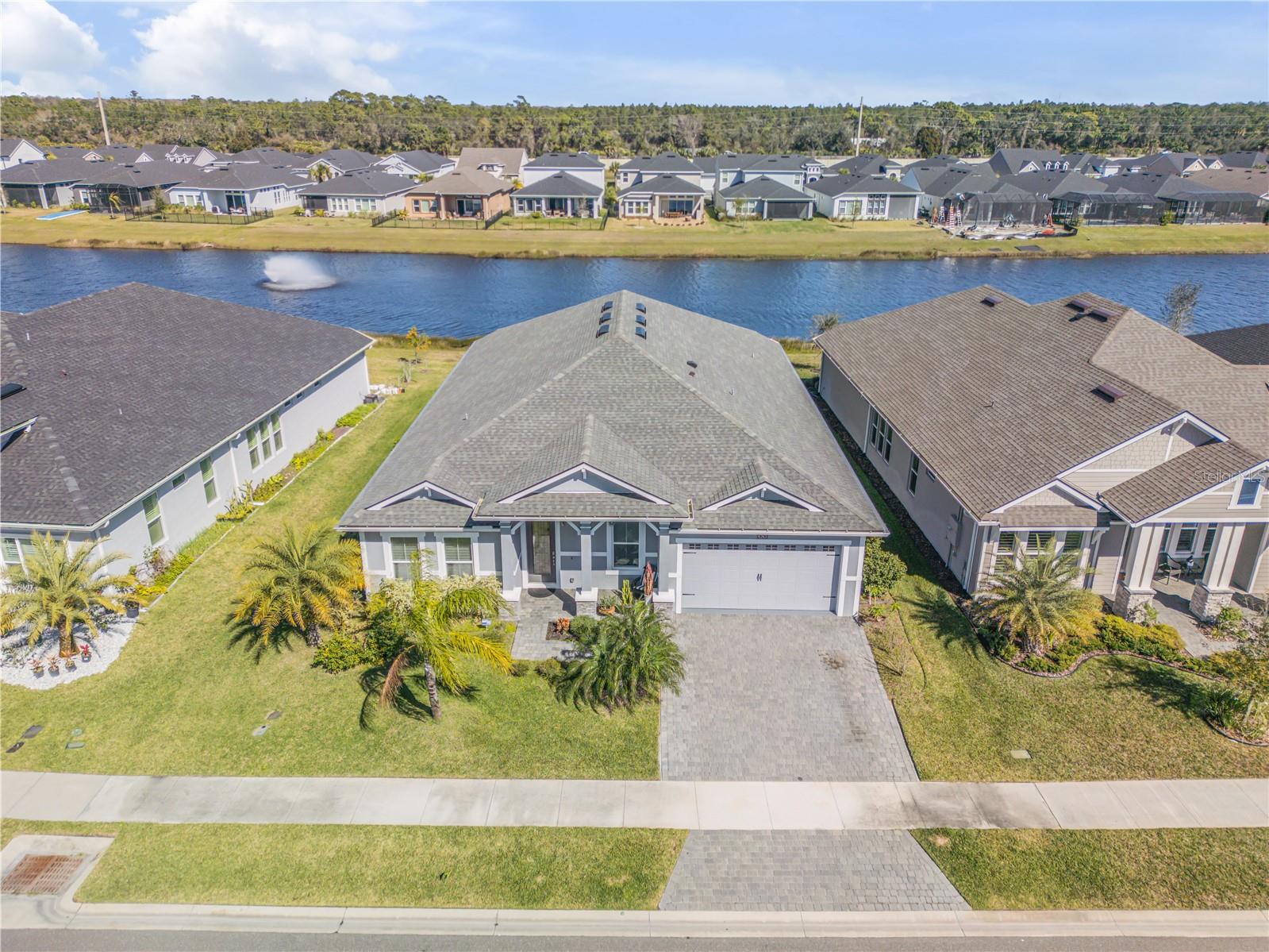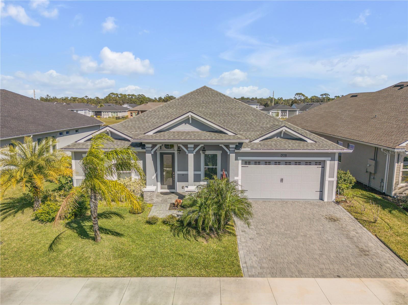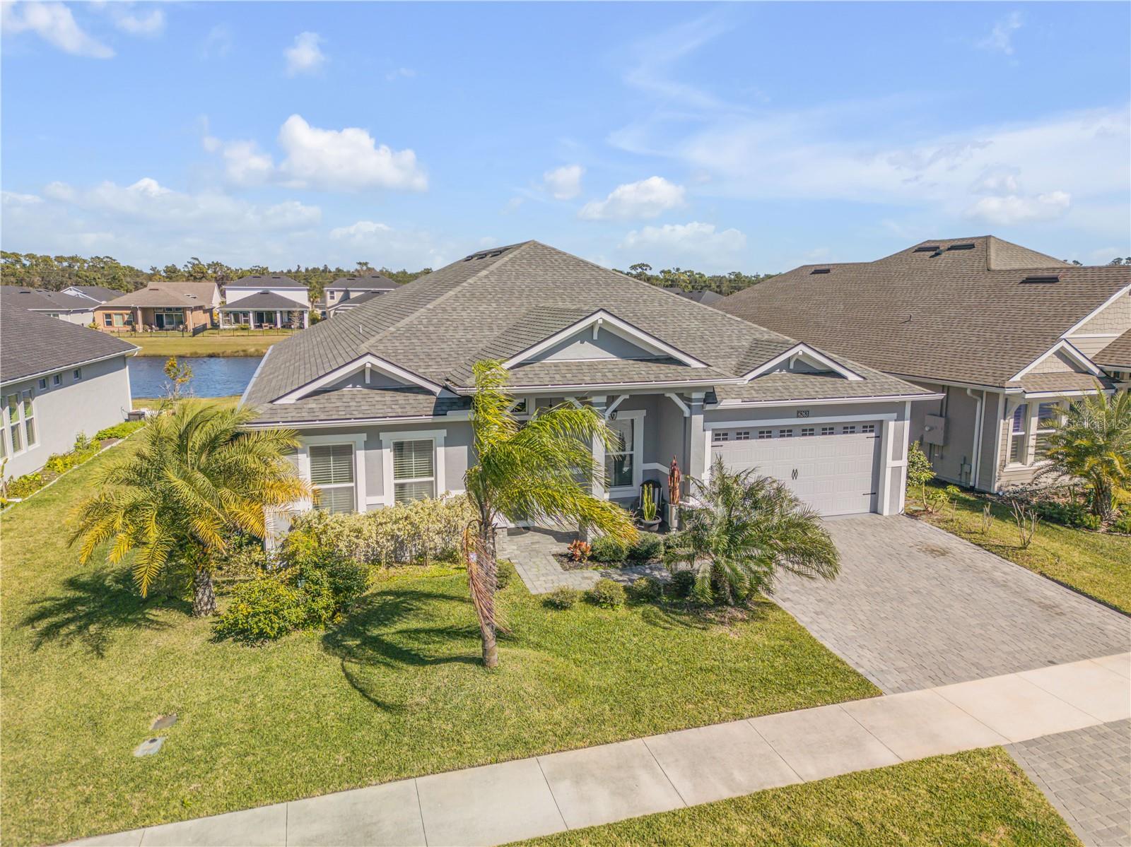 One or more photo(s) has been virtually staged. Nestled in the serene gated community of Woodhaven in Port Orange, Florida, this exceptional single-family home provides a blend of luxury and comfort. Boasting 4 bedrooms and 3 bathrooms across 2,545 square feet of beautifully designed living space, this residence is perfect for those seeking both style and practicality. As you arrive, you'll appreciate the upgraded brick-paved driveway, which leads you to a welcoming entrance. Inside, high ceilings and abundant natural light create an inviting atmosphere throughout the spacious open floor plan. The heart of the home—the kitchen—features modern pendant lighting, stainless steel appliances, and a built-in oven. A striking tiled backsplash and ample cabinetry enhance its functionality, while the large granite center island provides additional prep space and a stylish focal point. Connecting seamlessly to the living room, this kitchen is ideal for both everyday living and entertaining. The primary bedroom is a retreat in itself, showcasing vaulted ceilings and windows that frame a serene pond view. The en suite bathroom is designed with luxury in mind, featuring dual sinks with sleek hardware, contemporary lighting, and a generously sized walk-in shower. Outside, the screened-in lanai with ceiling fans provides a perfect space to relax and enjoy the pond view. Additional upgrades include an ICI Home generator and two water softeners, saltwater filtration system, alongside updated fans and lighting throughout. The Woodhaven community itself provides outstanding amenities, including a sparkling resort-style pool, enhancing your living experience in this picturesque setting. Experience unparalleled elegance and modern comfort in a home designed for a refined lifestyle—schedule your showing today and make this dream home yours!
