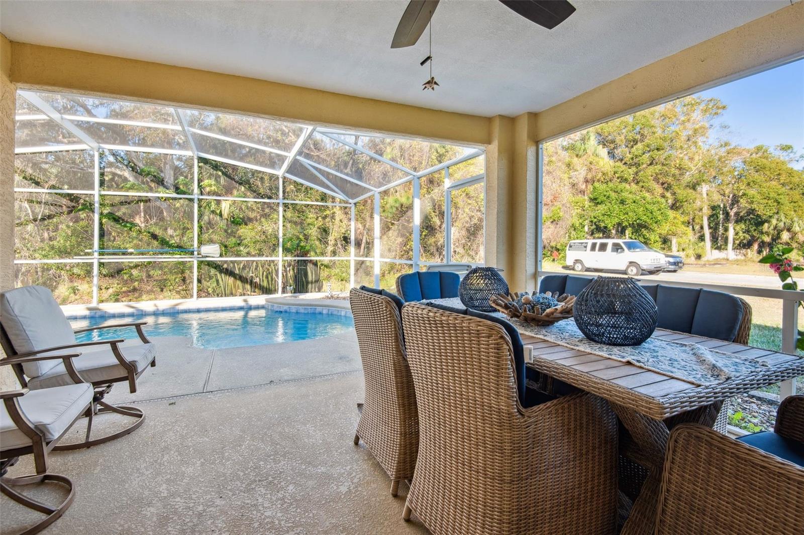 Beautiful fully furnished 4 Bedroom, 2 Bath house, 2 car garage with an enclosed pool located in sought after Sunrise Oaks subdivision, corner lot. This home has been updated with a new kitchen, granite counter tops, flooring, new water heater, roof installed dec 2022. Master bedroom has his and hers closets, tiled shower and soaking tub.