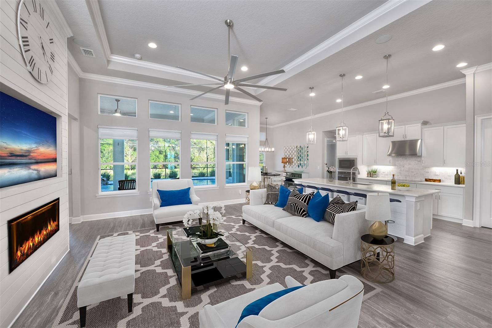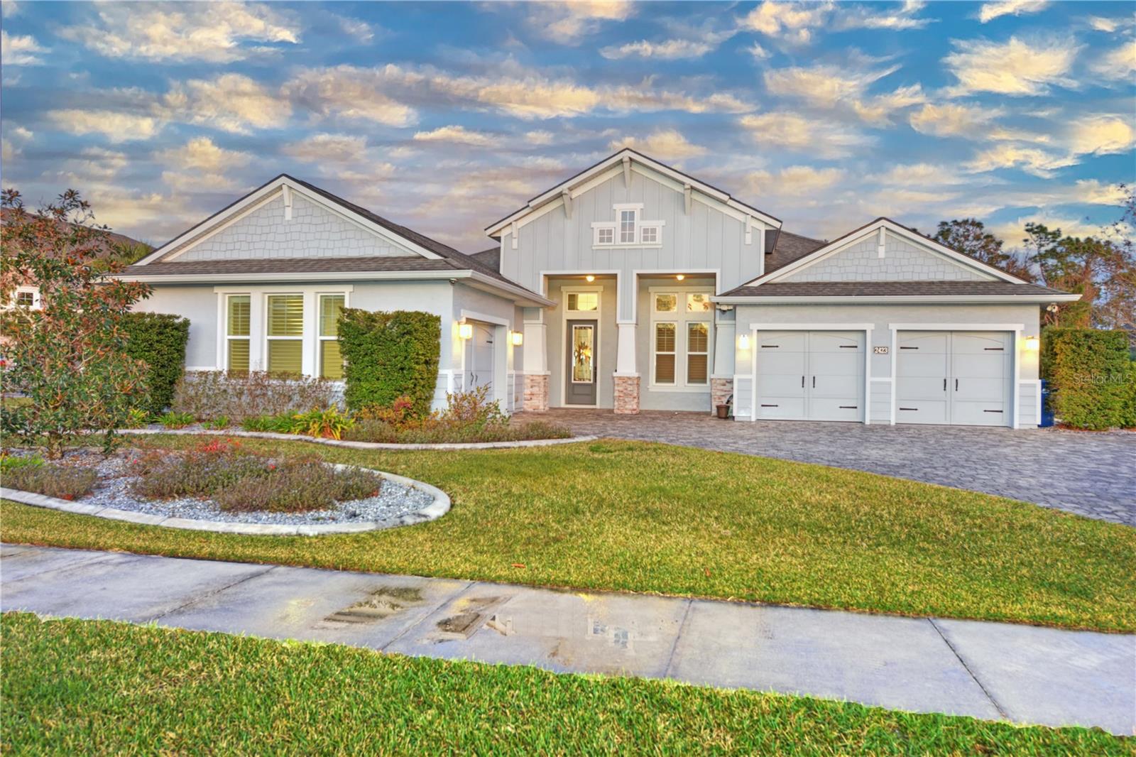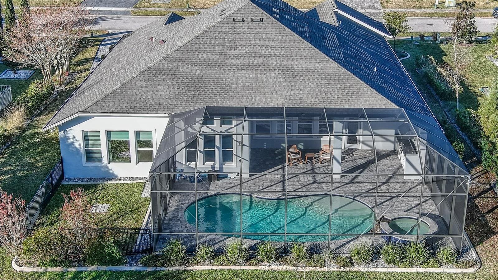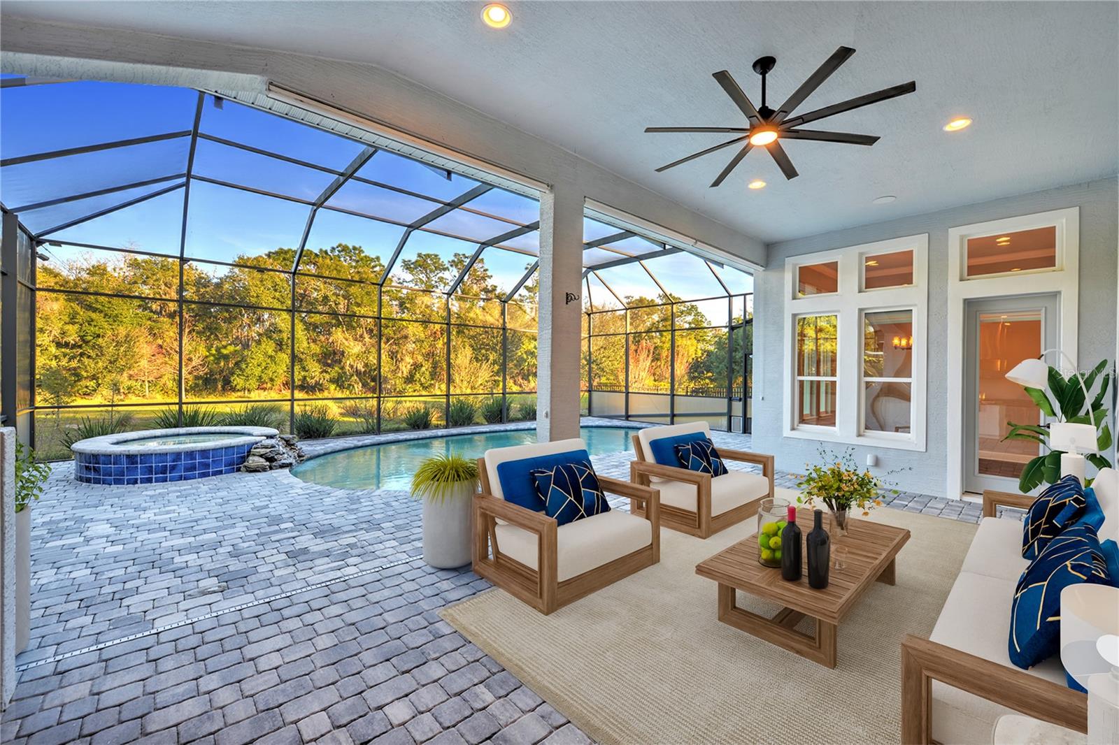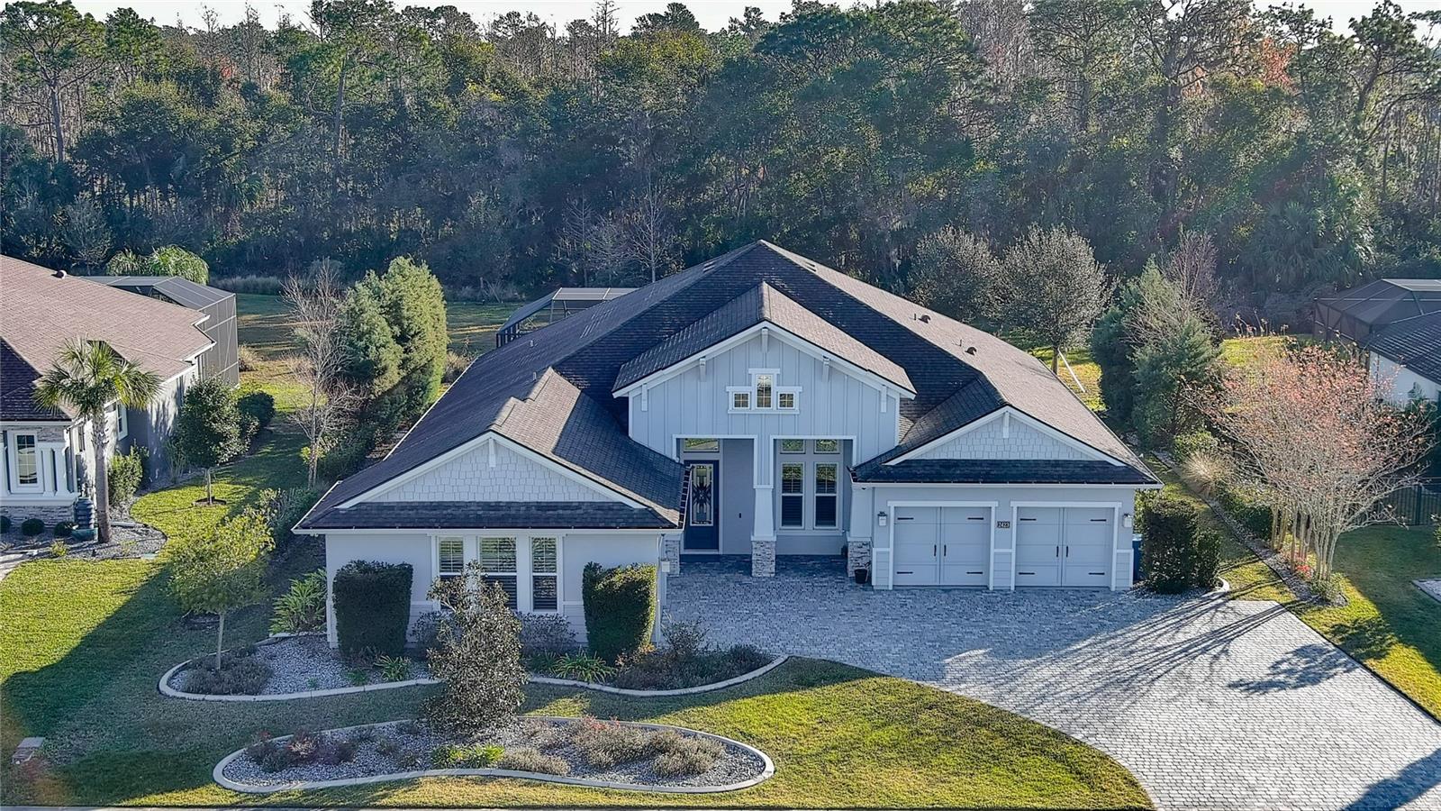 Under contract-accepting backup offers. One or more photo(s) has been virtually staged. Exquisite One-Story Home with Luxurious Features and Private Resort-like Amenities. This exceptional one-story, 3-car garage home seamlessly blends upscale finishes with a sense of comfort and sophistication. The open-concept layout, meticulously designed and appointed, features four spacious bedrooms, office (5th bedroom) and three and a half baths. The great room is highlighted by a shiplap-accented wall, complete with a fireplace that creates a welcoming ambiance, and an expansive wall of windows that invite natural light to fill the space. At the heart of the home, the chef's kitchen offers an abundance of custom cabinetry, a large center island, quartz countertops, and premium stainless steel appliances—creating an ideal space for family gatherings and culinary endeavors. The adjacent dining room offers a seamless transition for entertaining. The luxurious owner's suite is bathed in natural light and showcases an intricate double trey ceiling, with double doors that open to a spa-like bath. The striking oval soaking tub, illuminated by a dazzling chandelier and framed by a waterfall-tiled feature wall, serves as the focal point of the room. The bath also includes a spacious custom shower, double vanities, a separate water closet, and an impressive walk-in closet that leads directly into the conveniently located laundry room. Throughout the home, high-end flooring flows seamlessly from room to room with no transitions, enhancing the cohesive and luxurious feel of the space. Fiber and cable are installed, ensuring modern connectivity throughout. Designed with entertaining in mind, the lanai is an extraordinary outdoor living space, featuring a marine-grade outdoor kitchen complete with a grill, side burner, vent hood with dual fans, refrigerator, sink with disposal, and ample counter space. Relax in the serene outdoor setting as you enjoy the cascading waterfall from the heated spa, which flows into the pool below. The entire space is enhanced by remote-controlled lighting, an outdoor shower, and tall landscaped plantings that offer privacy and seclusion. The home backs to a peaceful preserve, further adding to the tranquil ambiance. Additional highlights include durable epoxy-coated garage floors, hybrid water heater, Grundfos recirculating instant hot water pump, ceiling speakers for surround sound in both living room & lanai plus overhead 8’ garage ceiling storage system. Additional features to be added the week of August 2nd include a new whole house water filtration & water softener system plus a new 77” LG flat screen TV. The home is also equipped with Eufy floodlights, IP cameras, and automated controlled lighting in the halls, bathrooms, and garage for added convenience and security. A private well, installed during construction, serves the home's automated irrigation system and can also be utilized for other outdoor needs. This is truly a private, resort-like retreat an unparalleled combination of elegance, functionality, and comfort. Bullet points of additional upgrades are available. Spruce Creek Fly-In Country Club offers memberships that are open to the public you don't have to be a resident of the community to join. Enjoy access to exceptional golf, dining, and social amenities in one of the most unique private airpark communities in the country. Please note: Some furniture in photos has been virtually staged.