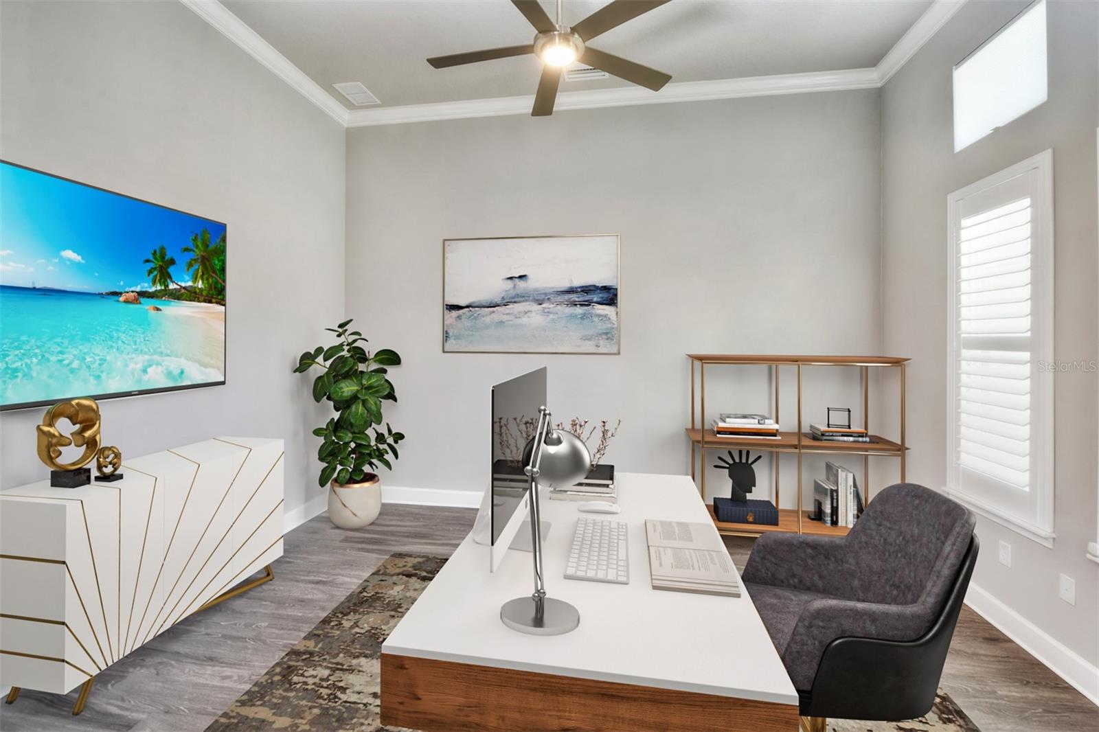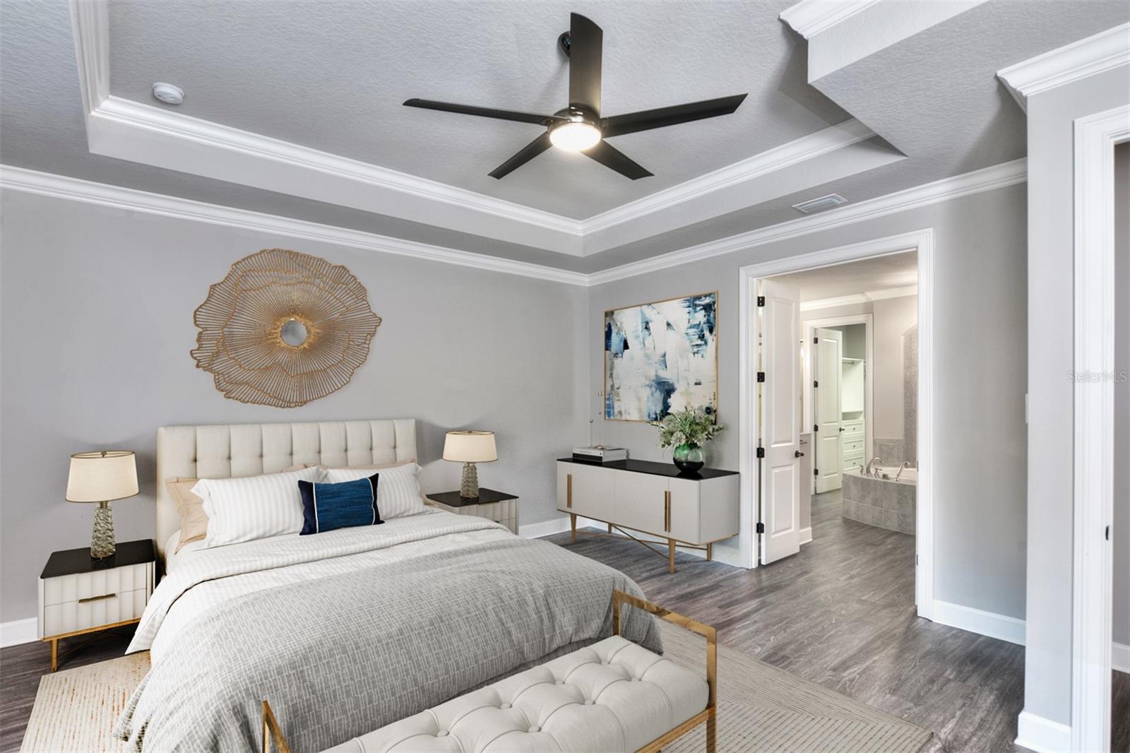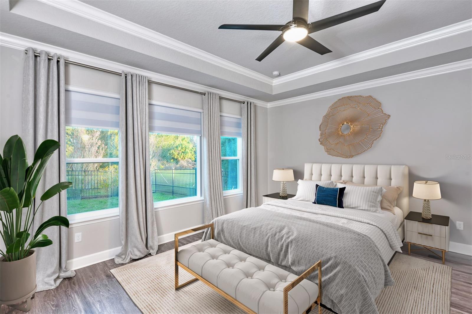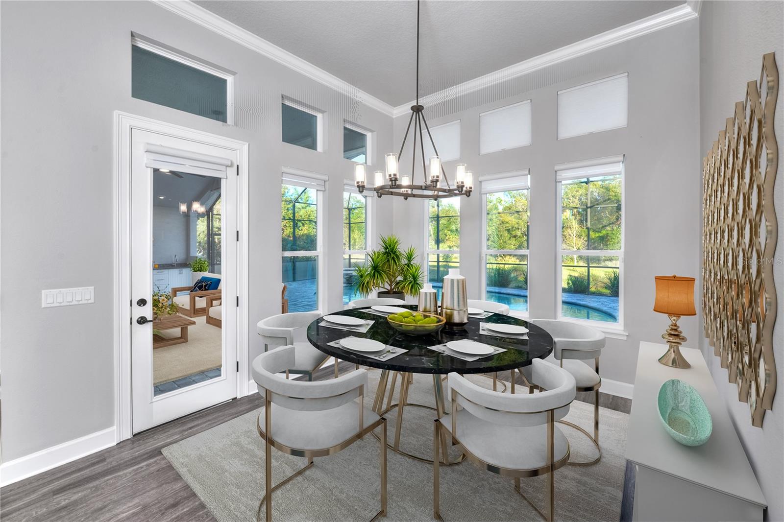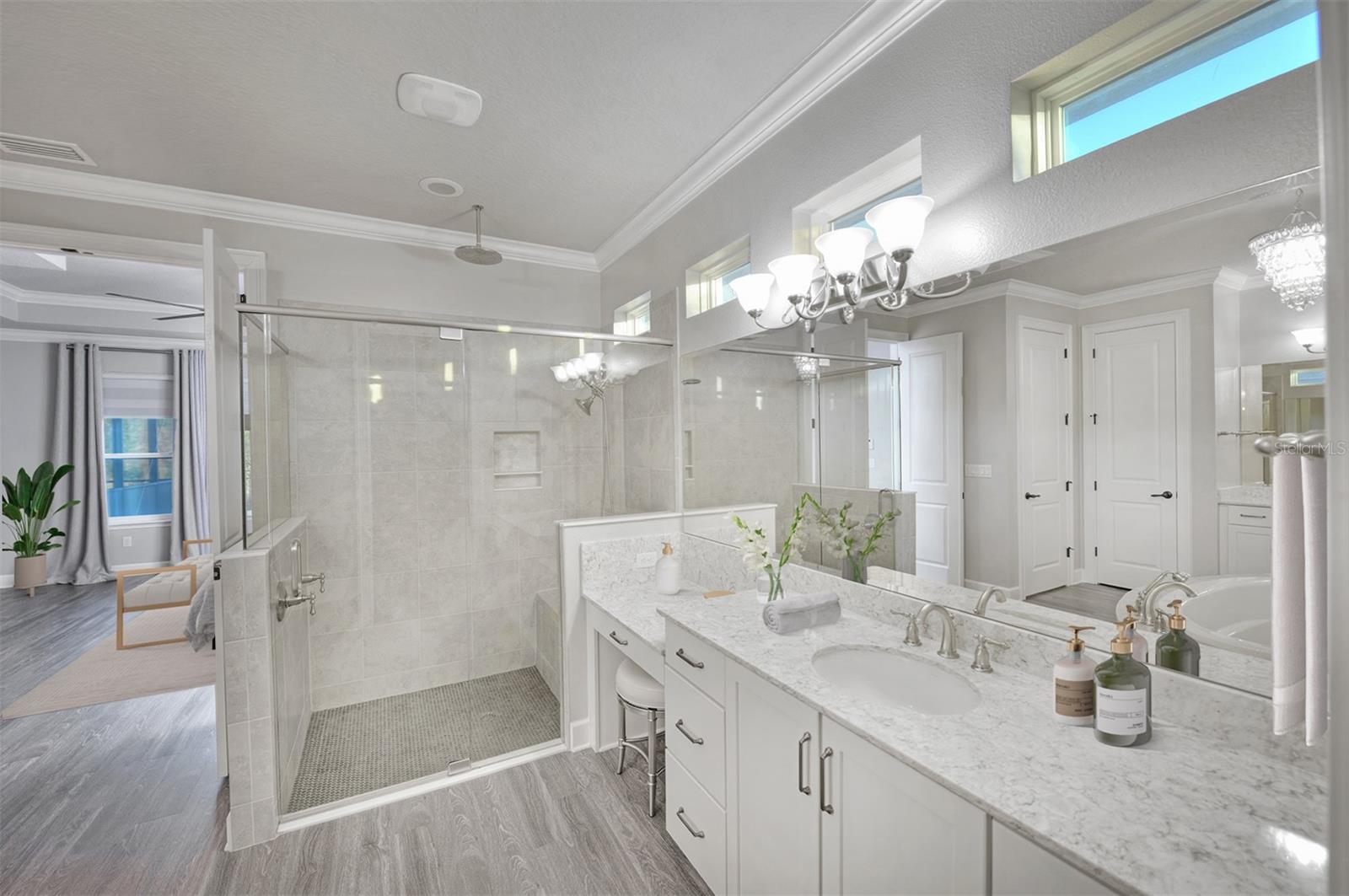 Under contract-accepting backup offers. One or more photo(s) has been virtually staged. Exquisite One-Story Home with Luxurious Features and Private Resort-like Amenities. This exceptional one-story, 3-car garage home seamlessly blends upscale finishes with a sense of comfort and sophistication. The open-concept layout, meticulously designed and appointed, features four spacious bedrooms, office (5th bedroom) and three and a half baths. The great room is highlighted by a shiplap-accented wall, complete with a fireplace that creates a welcoming ambiance, and an expansive wall of windows that invite natural light to fill the space. At the heart of the home, the chef's kitchen offers an abundance of custom cabinetry, a large center island, quartz countertops, and premium stainless steel appliances—creating an ideal space for family gatherings and culinary endeavors. The adjacent dining room offers a seamless transition for entertaining. The luxurious owner's suite is bathed in natural light and showcases an intricate double trey ceiling, with double doors that open to a spa-like bath. The striking oval soaking tub, illuminated by a dazzling chandelier and framed by a waterfall-tiled feature wall, serves as the focal point of the room. The bath also includes a spacious custom shower, double vanities, a separate water closet, and an impressive walk-in closet that leads directly into the conveniently located laundry room. Throughout the home, high-end flooring flows seamlessly from room to room with no transitions, enhancing the cohesive and luxurious feel of the space. Fiber and cable are installed, ensuring modern connectivity throughout. Designed with entertaining in mind, the lanai is an extraordinary outdoor living space, featuring a marine-grade outdoor kitchen complete with a grill, side burner, vent hood with dual fans, refrigerator, sink with disposal, and ample counter space. Relax in the serene outdoor setting as you enjoy the cascading waterfall from the heated spa, which flows into the pool below. The entire space is enhanced by remote-controlled lighting, an outdoor shower, and tall landscaped plantings that offer privacy and seclusion. The home backs to a peaceful preserve, further adding to the tranquil ambiance. Additional highlights include durable epoxy-coated garage floors, hybrid water heater, Grundfos recirculating instant hot water pump, ceiling speakers for surround sound in both living room & lanai plus overhead 8’ garage ceiling storage system. Additional features to be added the week of August 2nd include a new whole house water filtration & water softener system plus a new 77” LG flat screen TV. The home is also equipped with Eufy floodlights, IP cameras, and automated controlled lighting in the halls, bathrooms, and garage for added convenience and security. A private well, installed during construction, serves the home's automated irrigation system and can also be utilized for other outdoor needs. This is truly a private, resort-like retreat an unparalleled combination of elegance, functionality, and comfort. Bullet points of additional upgrades are available. Spruce Creek Fly-In Country Club offers memberships that are open to the public you don't have to be a resident of the community to join. Enjoy access to exceptional golf, dining, and social amenities in one of the most unique private airpark communities in the country. Please note: Some furniture in photos has been virtually staged.