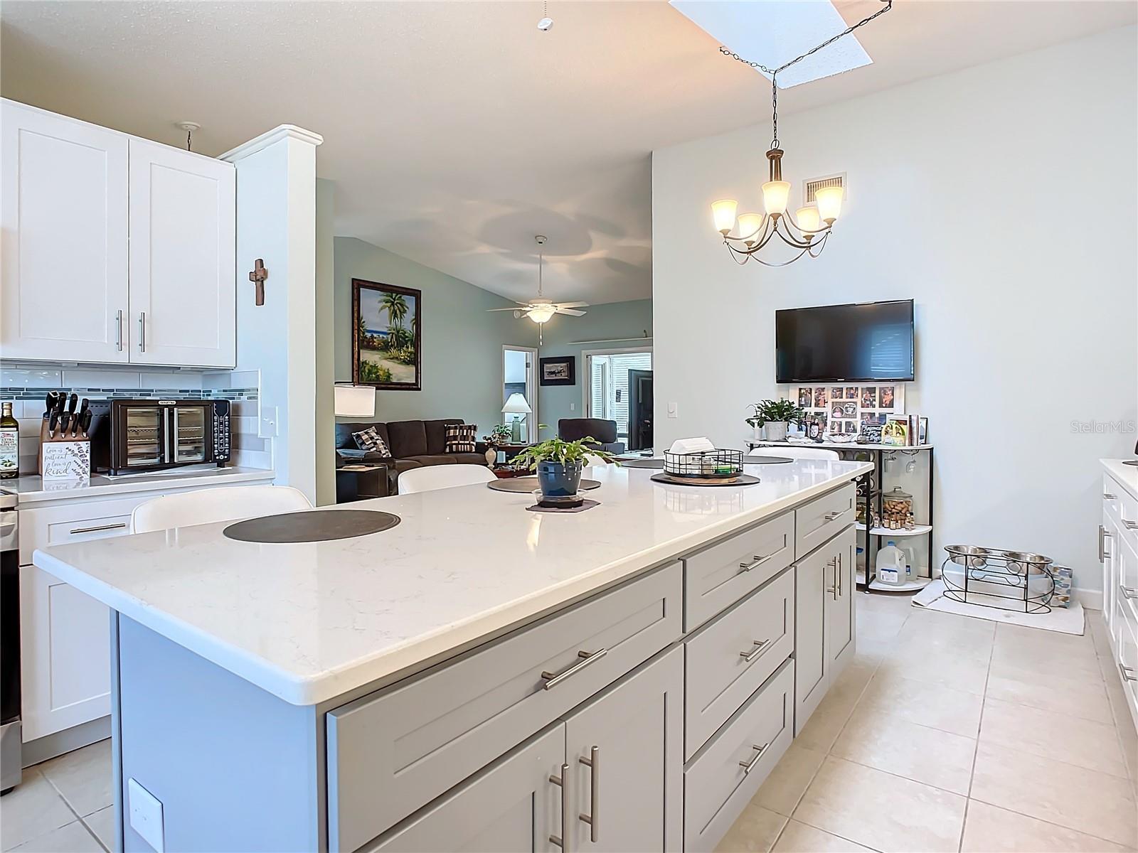 When only the best will do! You truly need to see this home! The kitchen alone will totally amaze you! The chef of the family will love this BRAND NEW kitchen that was redesigned & built in the last 2 years! White shaker cabinets with complimenting color cabinet island! The huge island has plenty of storage cabinetry & stool counter space to sit all your dining guests! Quartz countertops! Stainless steel appliances! Crown molding & under cabinet lighting! Windowed breakfast nook! Updated & upgraded bathrooms! Split bedroom plan! Cathedral ceilings! Florida room! Patio! Corner lot! New roof & skylights in 2021! The HOA provides an array of services, including RV storage, exterior painting, lawn mowing, subterranean termite protection, internet & cable. With the pertinent maintenance being cared for, owners have more time to enjoy the clubhouse, which is a hub of activities, a screened community pool, the tennis/pickleball court, shuffleboard & walking & biking trails.