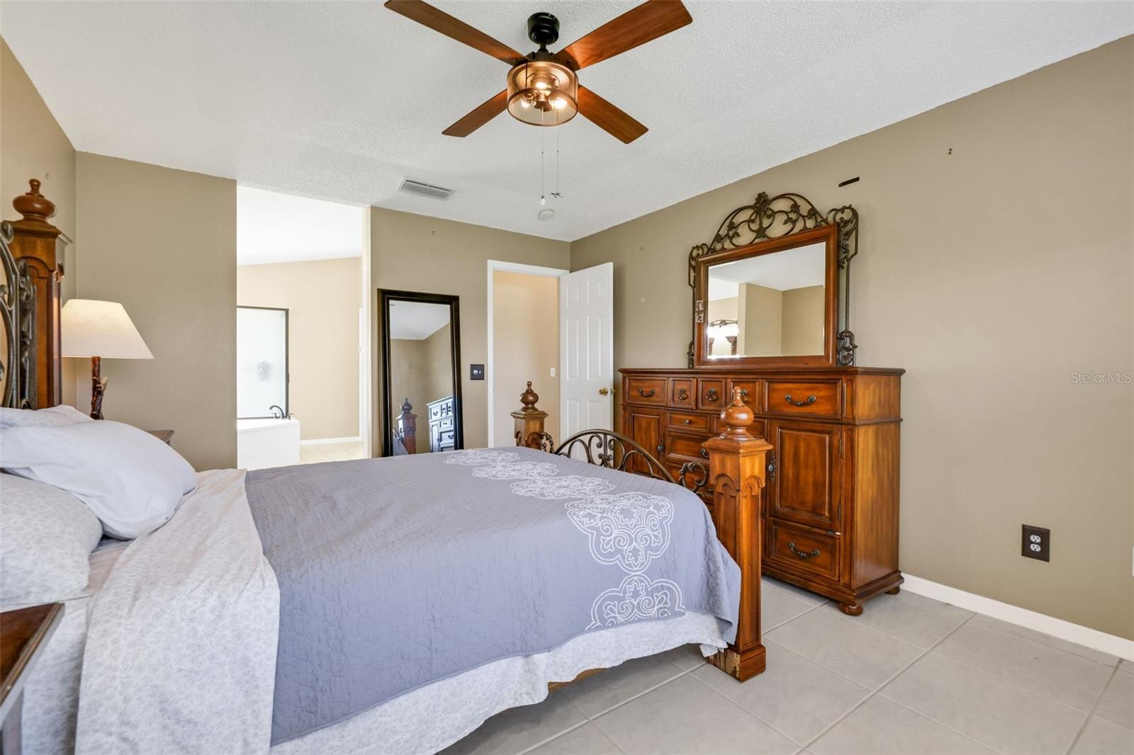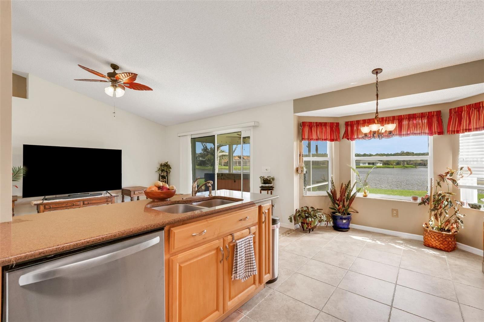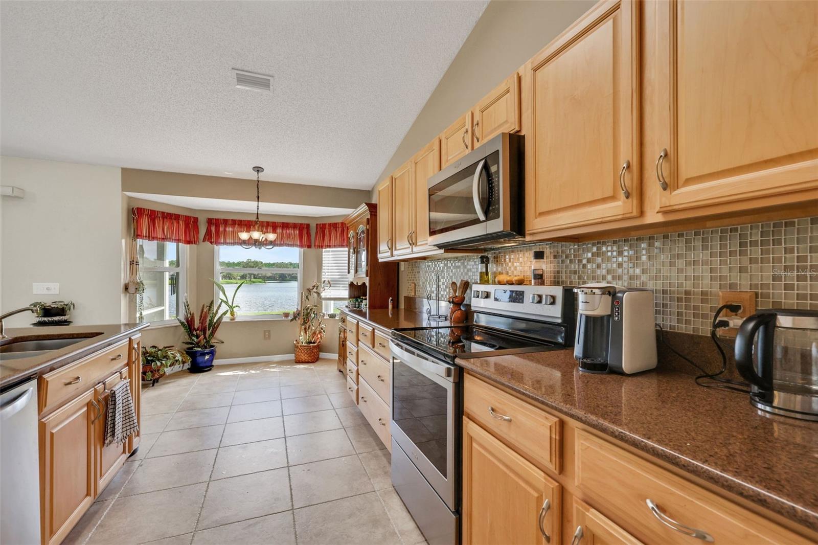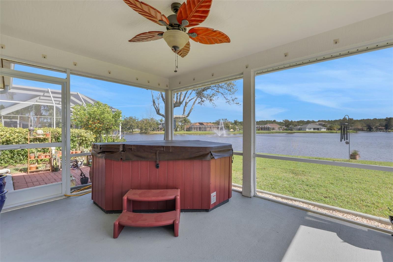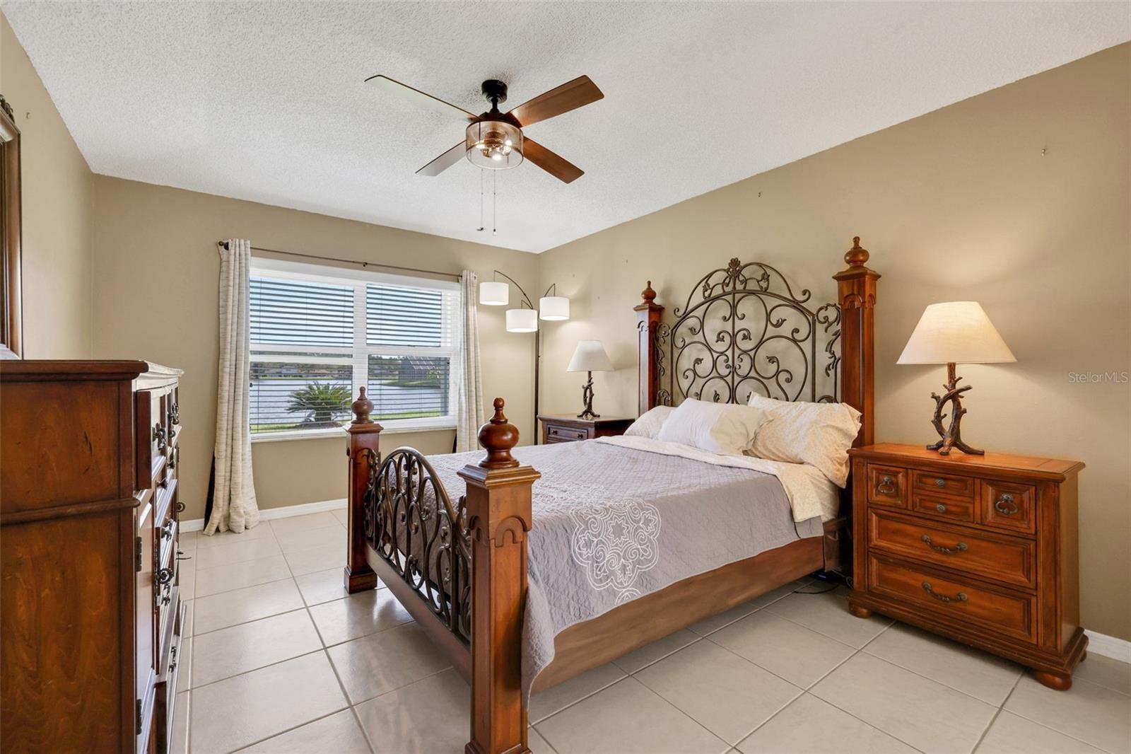 This beautiful lakefront home is move-in ready and waiting for you! With a spacious and bright split 3-bedroom, 2-bathroom layout, it has an open, airy feel that's perfect for relaxing or entertaining. The remodeled kitchen features extended quartz countertops and raised wood cabinets for plenty of storage. The master bath has been upgraded with sleek Silestone finishes for a touch of luxury. Plus, the home is hurricane-ready with durable shutters for extra peace of mind. Step outside to the covered screened porch, where you can soak in the breathtaking lake views—and yes, the jacuzzi is included! Located in the sought-after Waters Edge neighborhood, this home is also in one of the area's top-rated school zones, making it a great spot for families.