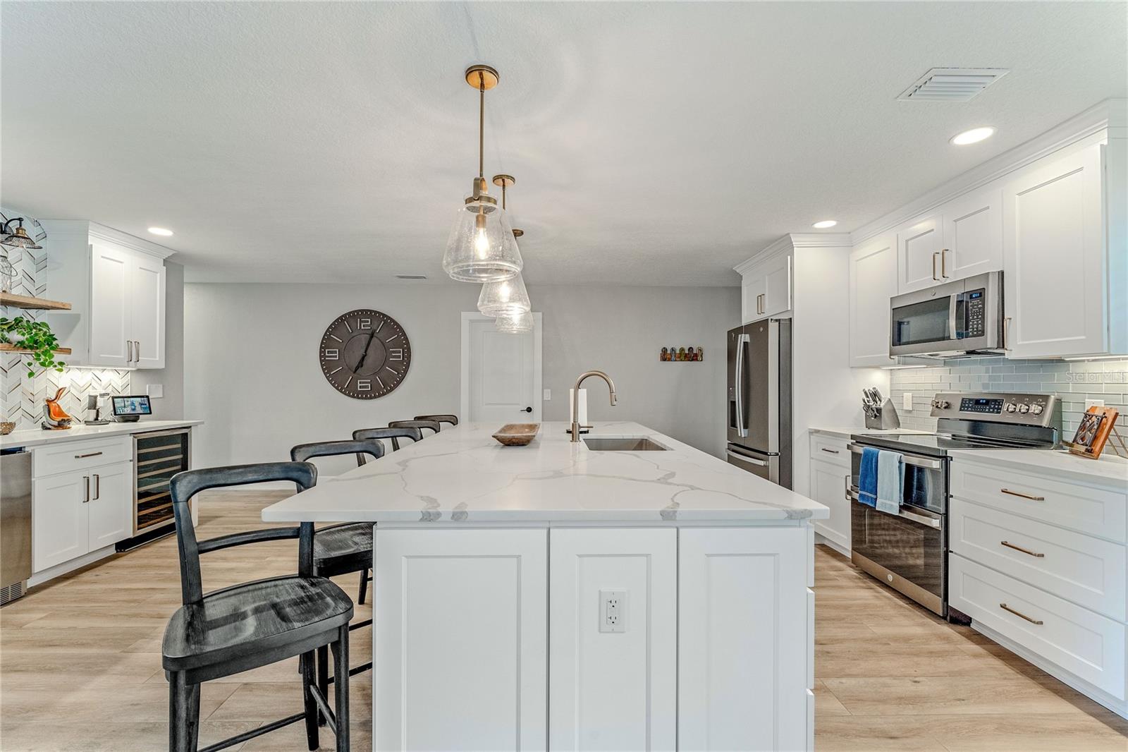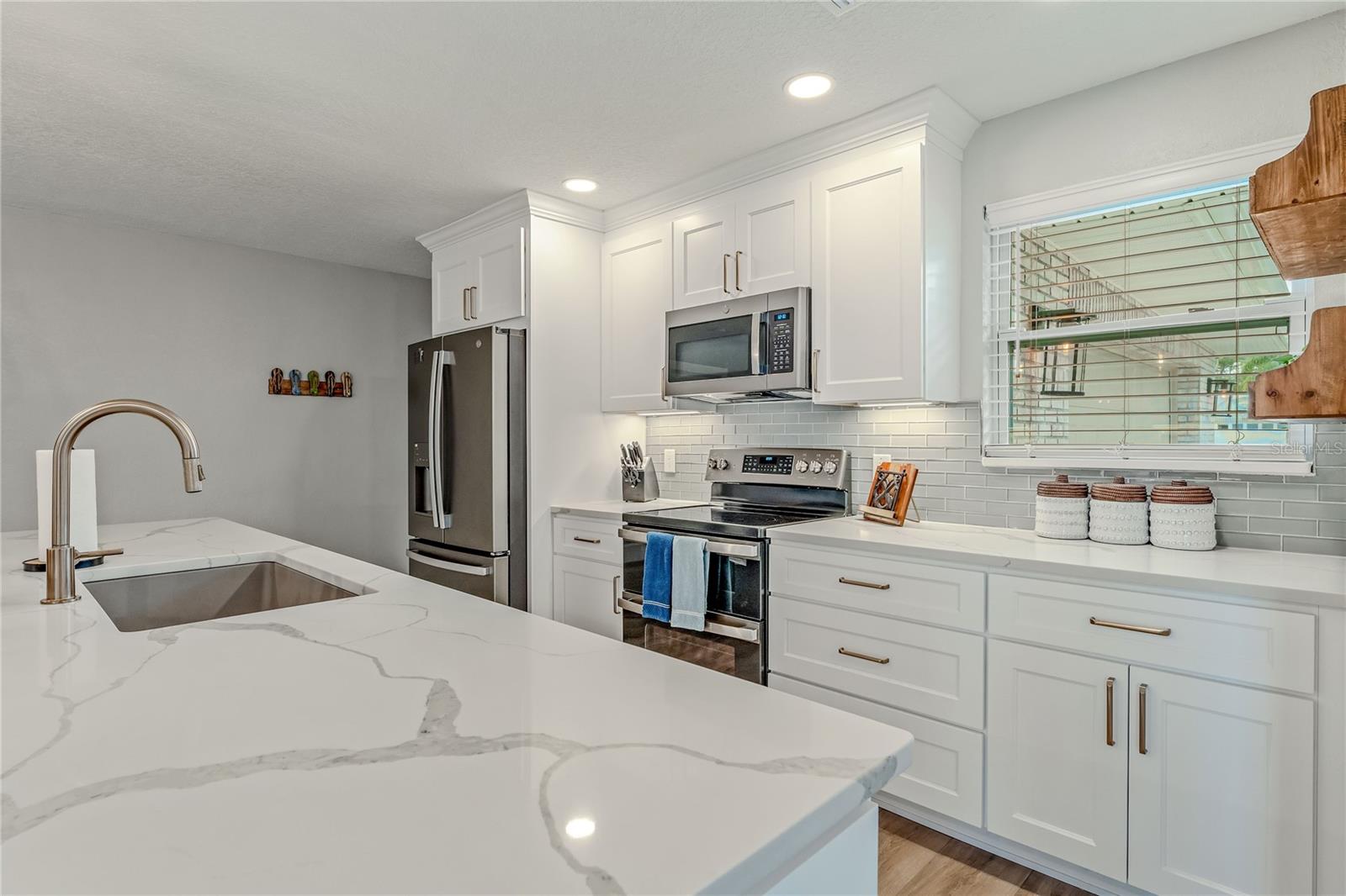 Indulge in the tranquility of coastal living with this enchanting property, boasting nearly 80 feet of bay frontage along the serene Rosebay. A gateway to coastal delights awaits you, inviting you to immerse yourself in expansive views, enjoy leisurely fishing and kayaking, and revel in the delightful company of dolphins and manatees—just a short boat ride away from the inlet and Disappearing Island. After a day spent on the water, find your oasis of calm on the hammock, gently swaying with the rhythm of the bay breeze on the spacious stone patio. The coastal charm seamlessly extends indoors, where a beautiful new bay window and sliders frame the scenery. Modern finishes, durable neutral porcelain tile, and custom light fixtures enhance the inviting atmosphere throughout the home. The heart of this tropical retreat lies in its open floor plan, anchored by a brand new kitchen featuring an entertainer's dream island. Discover the joy of cooking with all-new appliances and an extended area dedicated to your wine and coffee pleasures, offering ample storage for your convenience. The owner's suite is a dream space, providing a captivating view of Rosebay, a walk-in closet, a second storage closet, and an extended patio for those serene sunrise moments. Luxuriate in the upgraded master bath adorned with designer finishes. Two other generously sized bedrooms offer ample space and storage, complemented by a nearby delightful guest bath. This coastal haven is not only a retreat for the soul but also a practical investment with recent upgrades including a new roof, AC units, water heaters, appliances, windows, irrigation, and landscaping. Discover the allure of this home, nestled in a vibrant marine ecosystem right behind its walls, with delicious restaurants and pristine beaches just minutes away. Welcome to your new sanctuary by the sea!