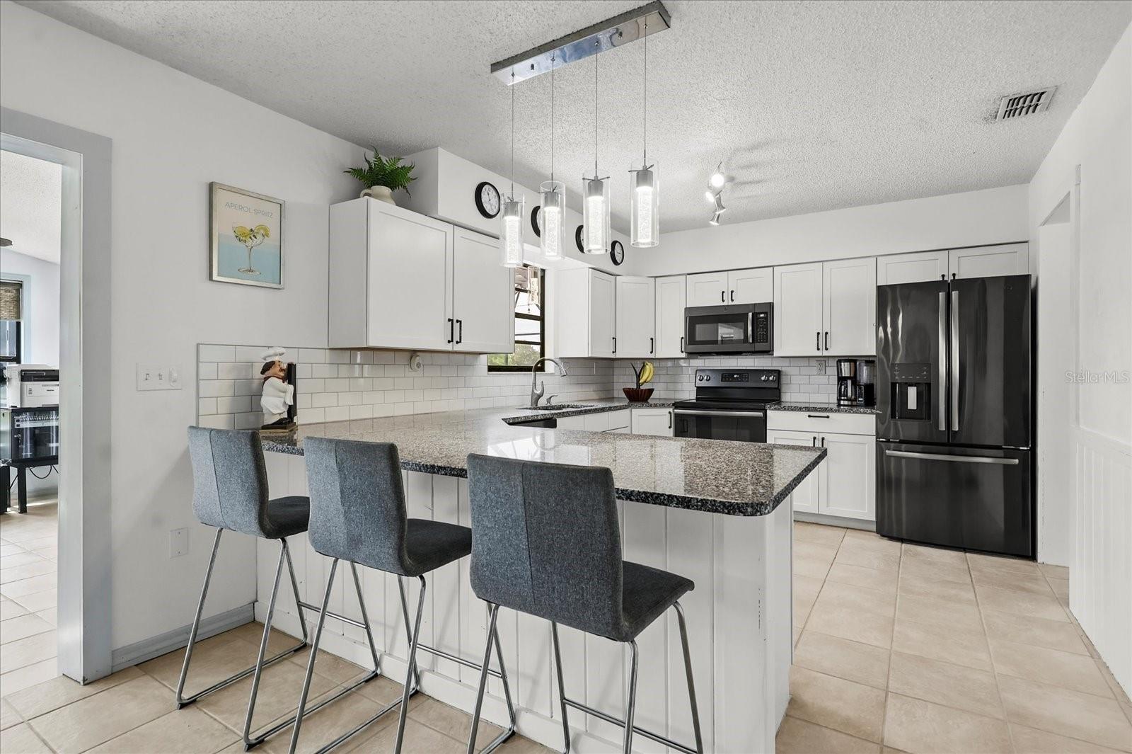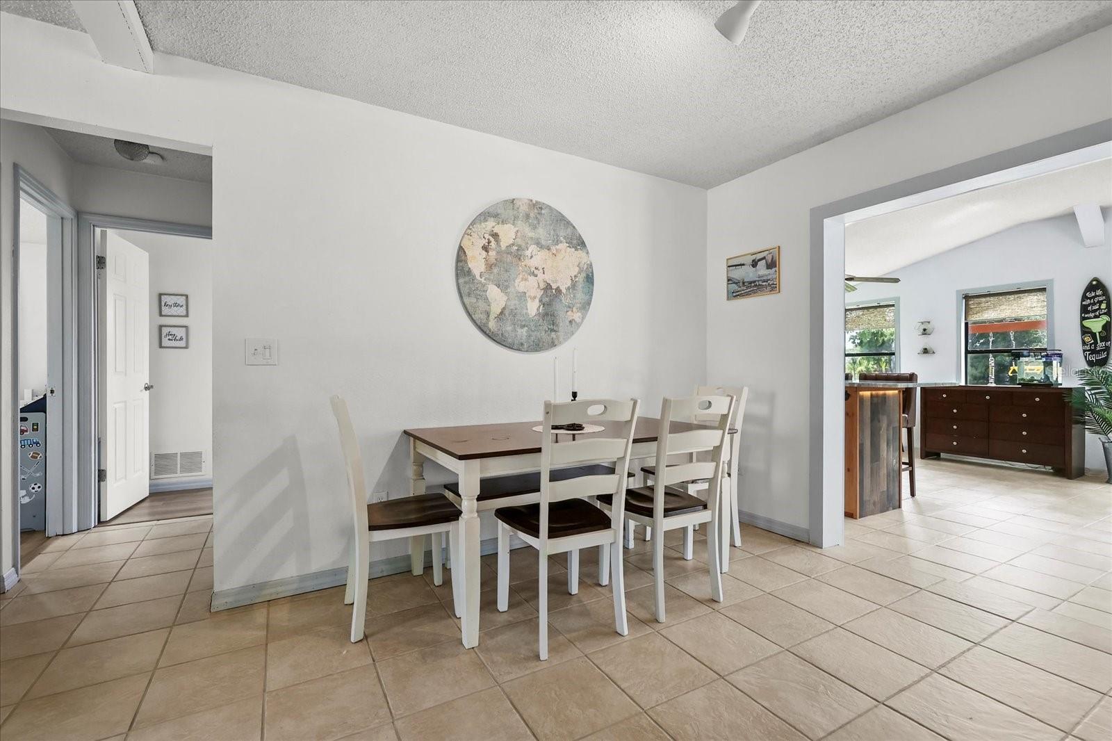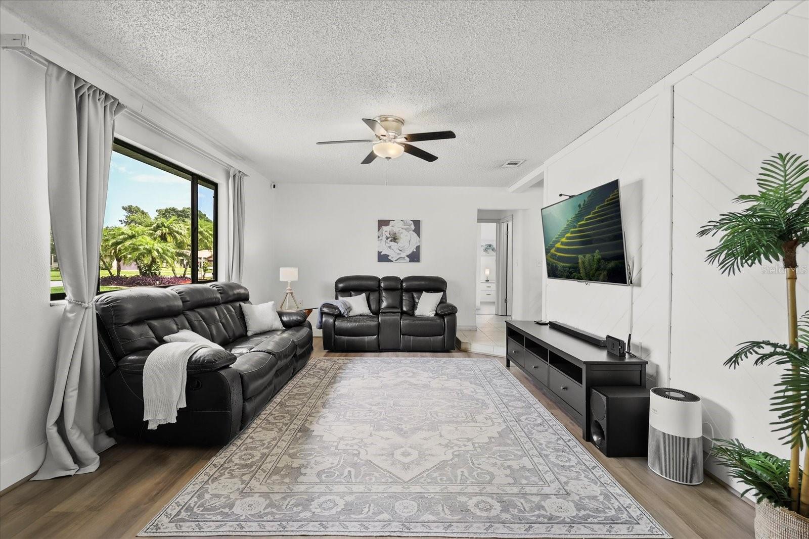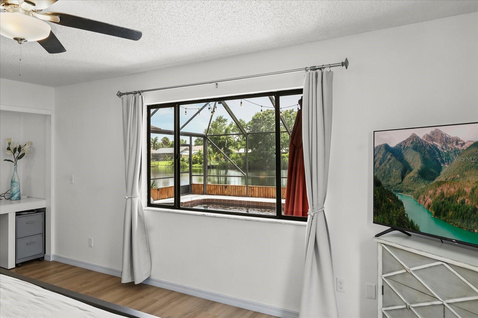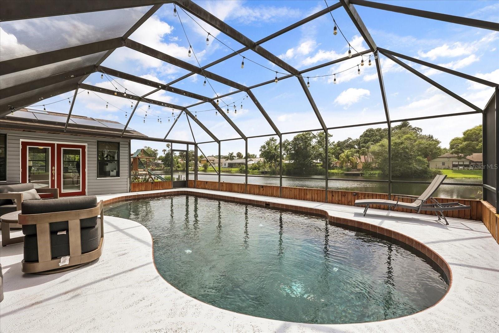 Presenting a beautifully maintained 3-bedroom residence with a spacious master suite, complete with a large walk-in closet, located in one of Port Orange’s most desirable school zones. This thoughtfully designed home offers a split bedroom floor plan and multiple living spaces, including a formal living room, a family room with serene lake views, and a large dining area. The expansive kitchen features modern finishes, ample cabinetry, and a convenient breakfast bar—ideal for both everyday living and entertaining. Interior highlights include tile flooring in the kitchen and family room, complemented by LVT in the formal living room and all bedrooms, creating a warm and inviting atmosphere throughout. A standout feature of this home is the dedicated man cave-style bar—a perfect retreat for entertaining guests or enjoying a relaxing evening at home. Step outside to the screened-in pool area, recently resurfaced with a premium finish, and enjoy stunning lake views in a private, resort-style setting.