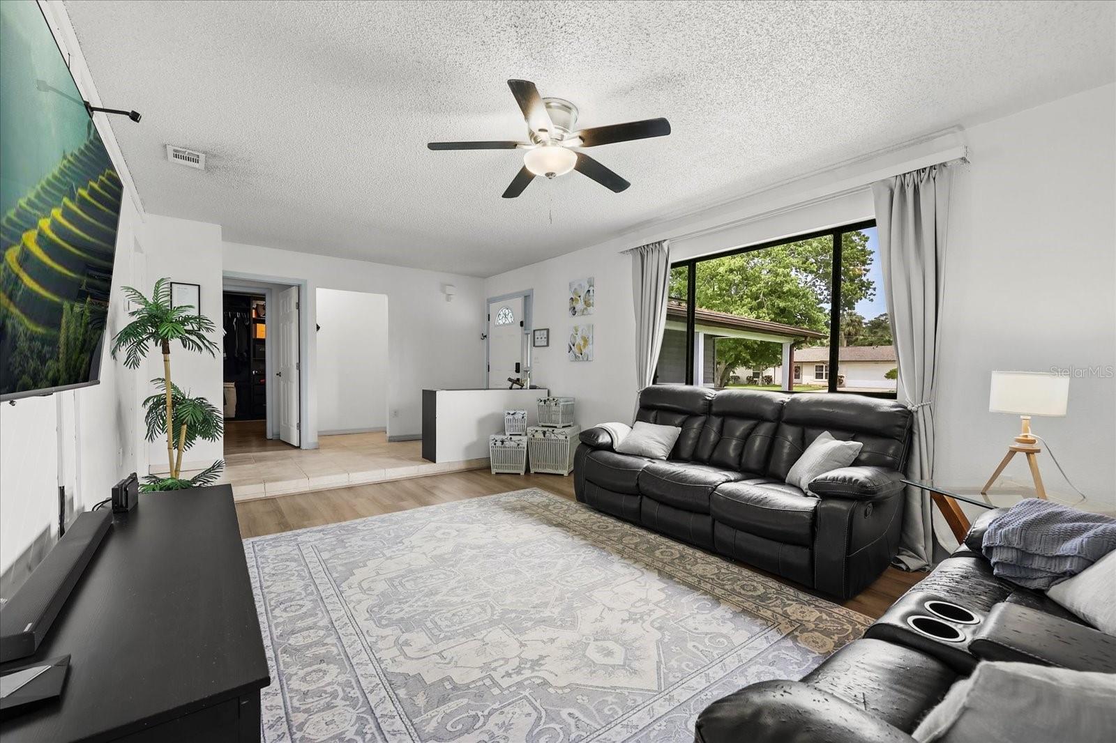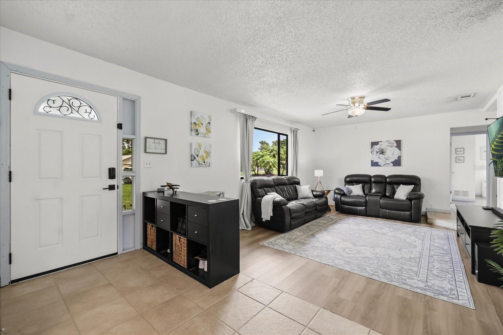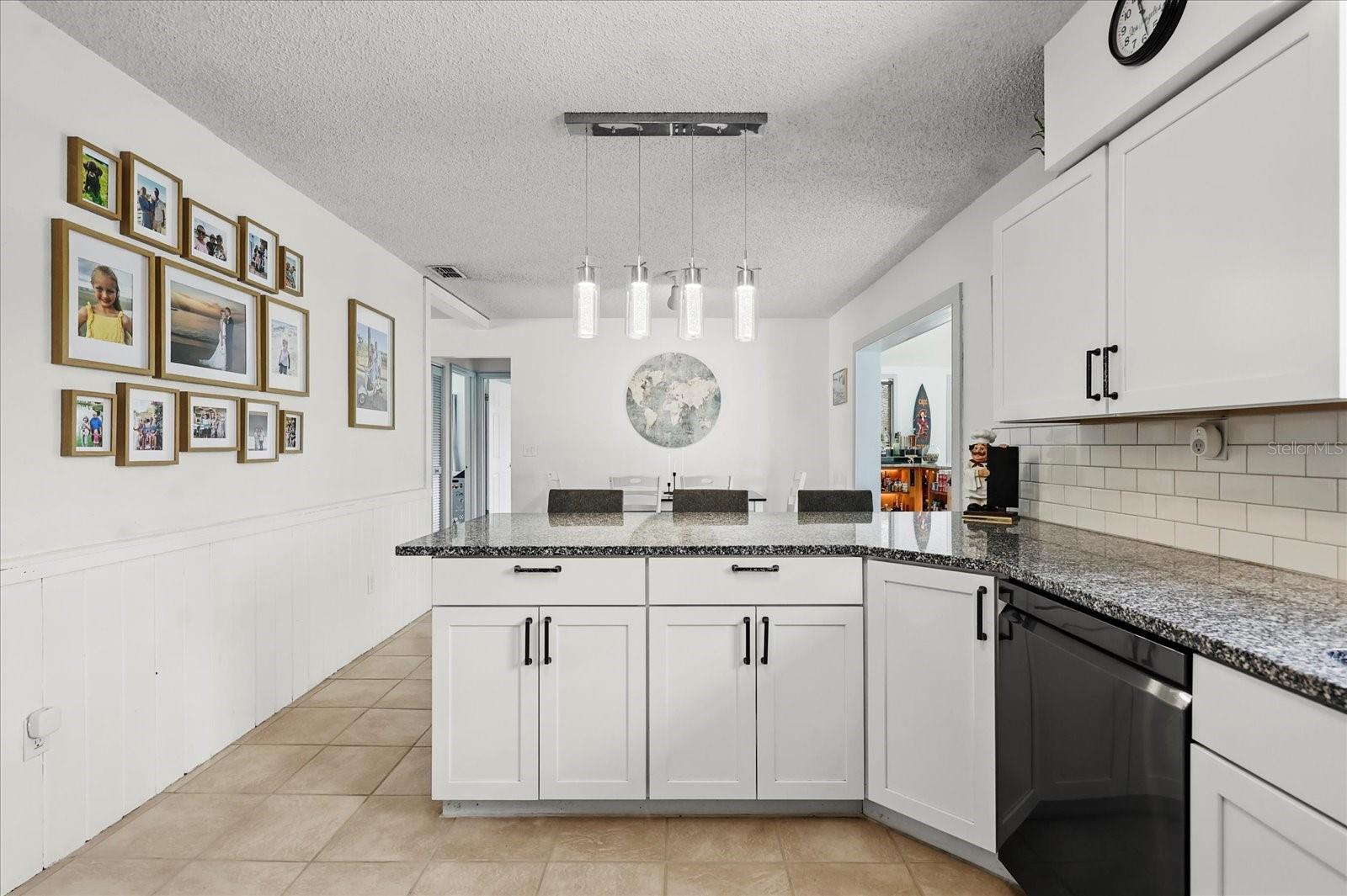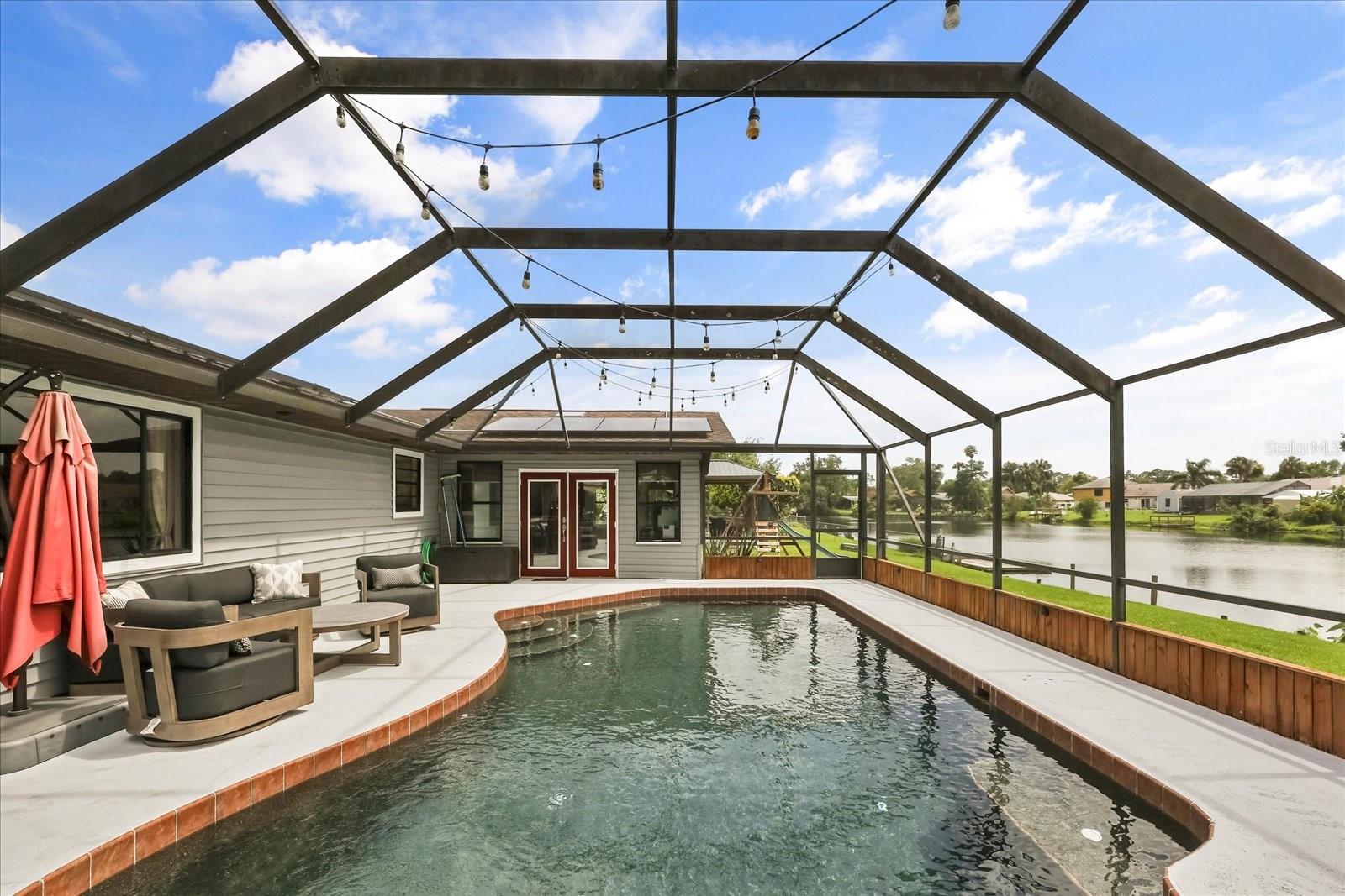 Presenting a beautifully maintained 3-bedroom residence with a spacious master suite, complete with a large walk-in closet, located in one of Port Orange’s most desirable school zones. This thoughtfully designed home offers a split bedroom floor plan and multiple living spaces, including a formal living room, a family room with serene lake views, and a large dining area. The expansive kitchen features modern finishes, ample cabinetry, and a convenient breakfast bar—ideal for both everyday living and entertaining. Interior highlights include tile flooring in the kitchen and family room, complemented by LVT in the formal living room and all bedrooms, creating a warm and inviting atmosphere throughout. A standout feature of this home is the dedicated man cave-style bar—a perfect retreat for entertaining guests or enjoying a relaxing evening at home. Step outside to the screened-in pool area, recently resurfaced with a premium finish, and enjoy stunning lake views in a private, resort-style setting.