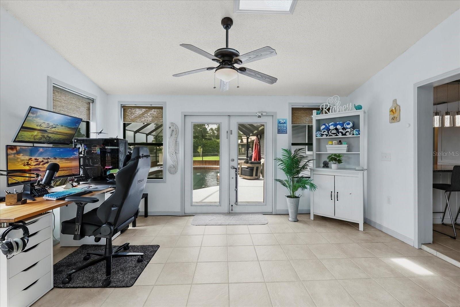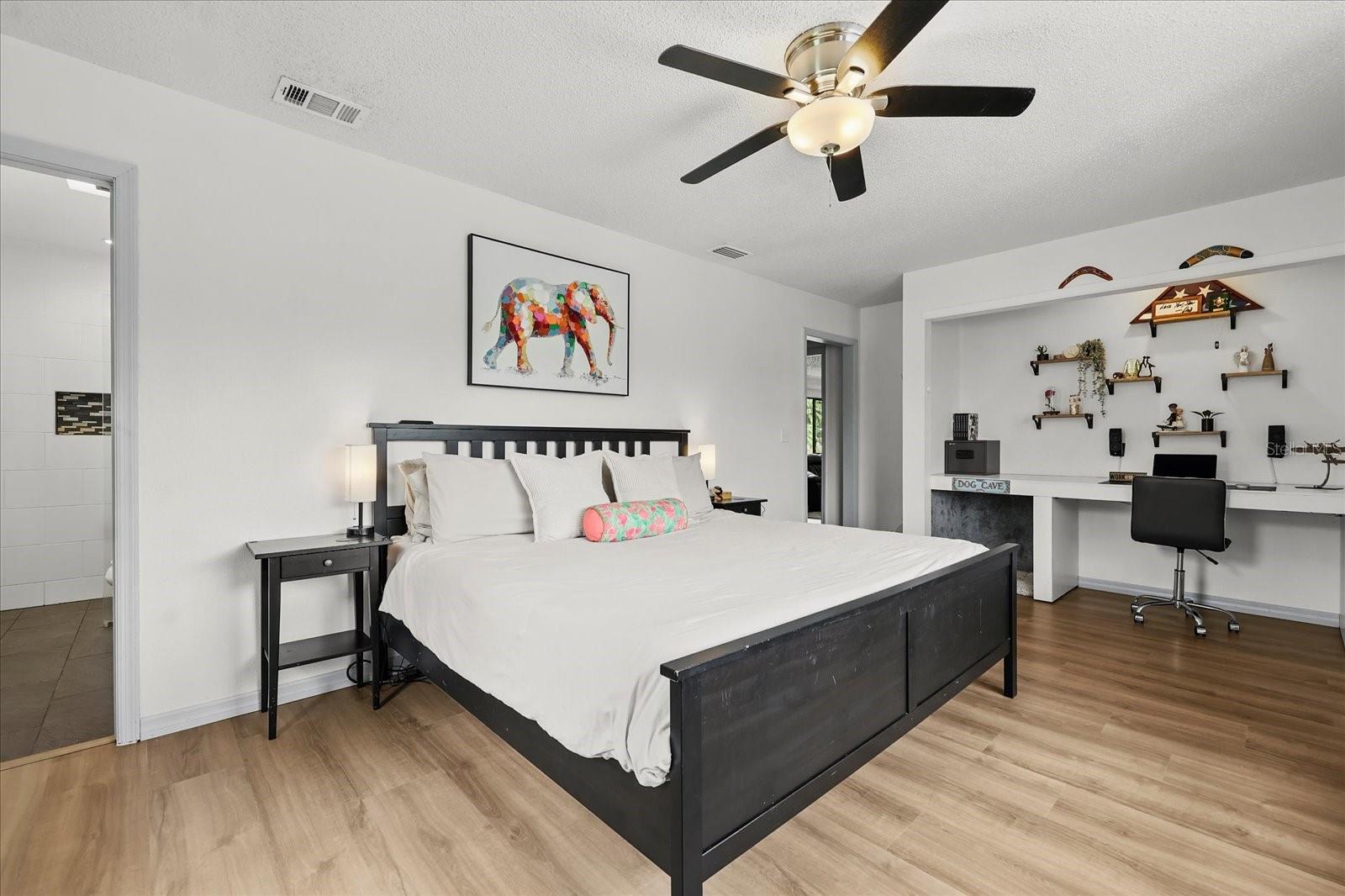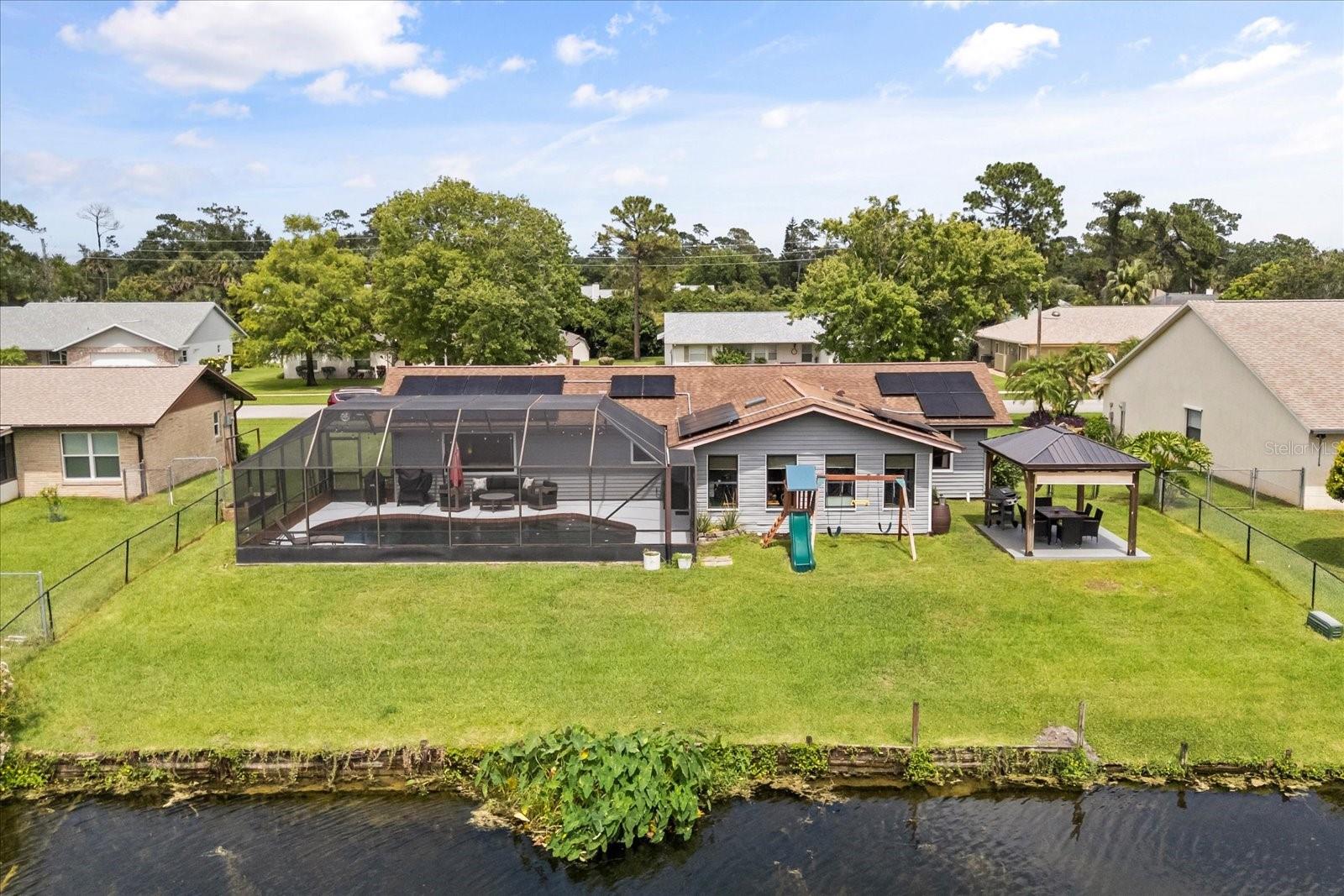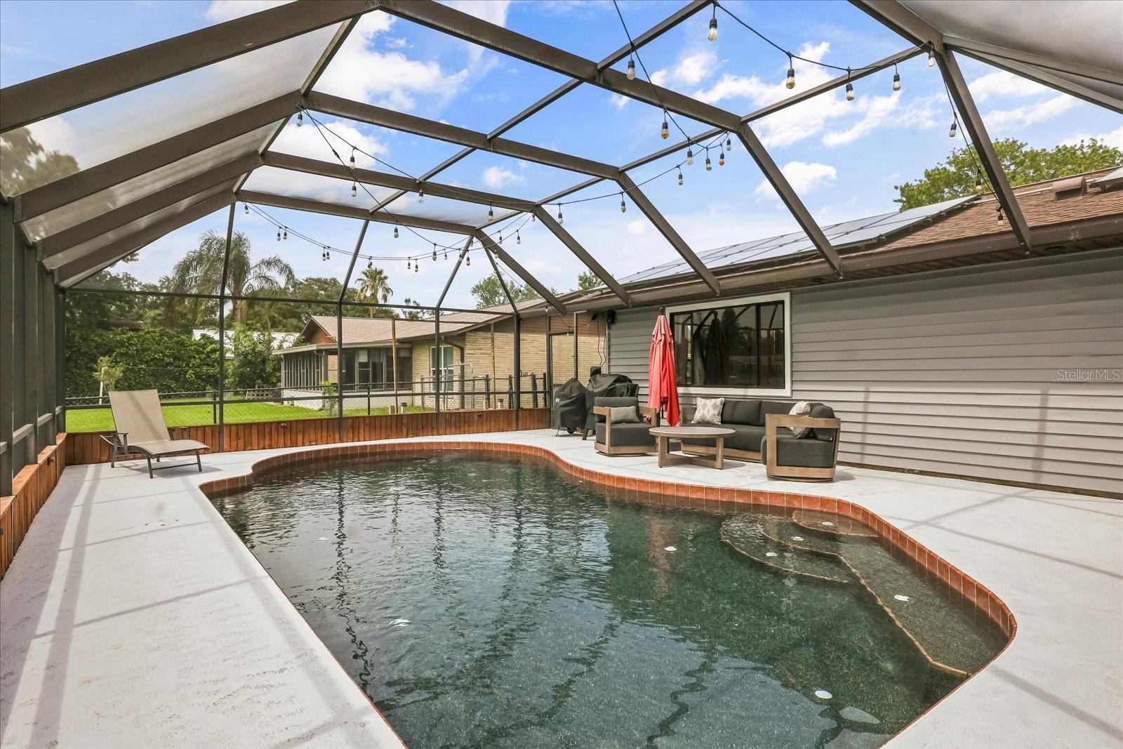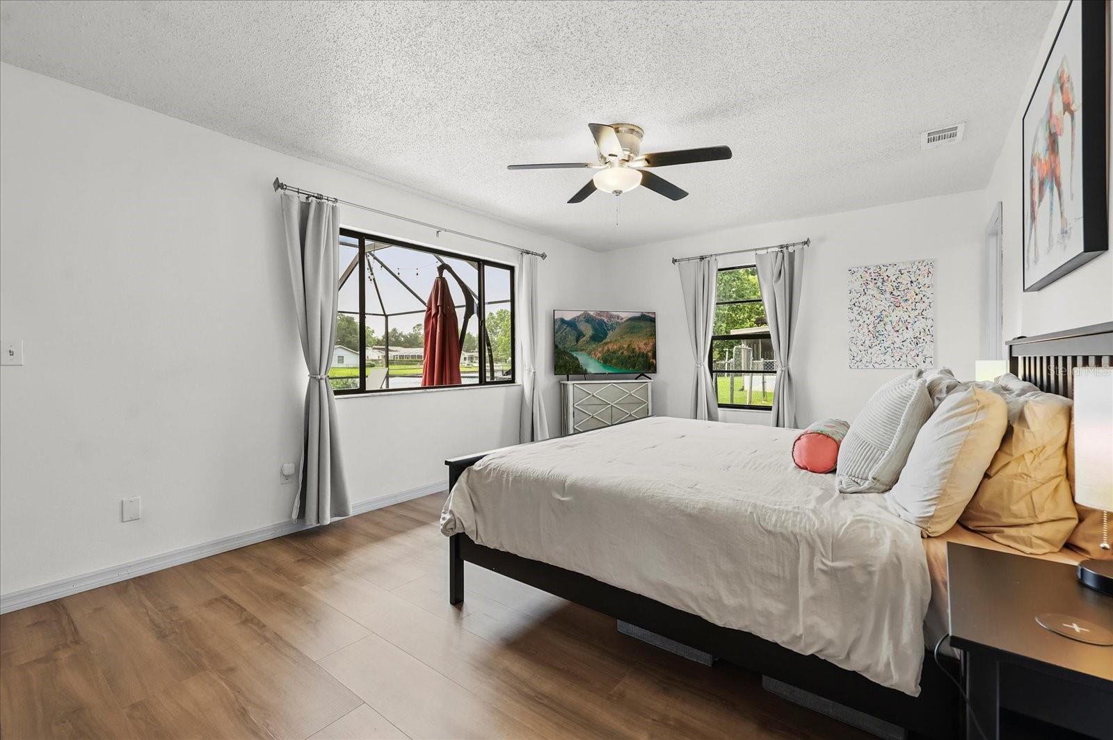 Presenting a beautifully maintained 3-bedroom residence with a spacious master suite, complete with a large walk-in closet, located in one of Port Orange’s most desirable school zones. This thoughtfully designed home offers a split bedroom floor plan and multiple living spaces, including a formal living room, a family room with serene lake views, and a large dining area. The expansive kitchen features modern finishes, ample cabinetry, and a convenient breakfast bar—ideal for both everyday living and entertaining. Interior highlights include tile flooring in the kitchen and family room, complemented by LVT in the formal living room and all bedrooms, creating a warm and inviting atmosphere throughout. A standout feature of this home is the dedicated man cave-style bar—a perfect retreat for entertaining guests or enjoying a relaxing evening at home. Step outside to the screened-in pool area, recently resurfaced with a premium finish, and enjoy stunning lake views in a private, resort-style setting.