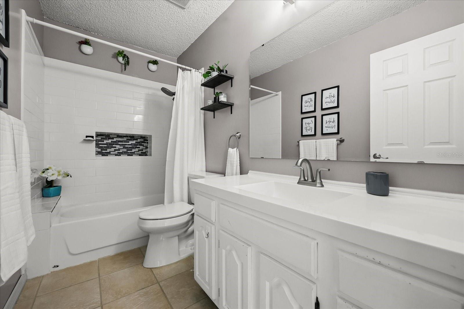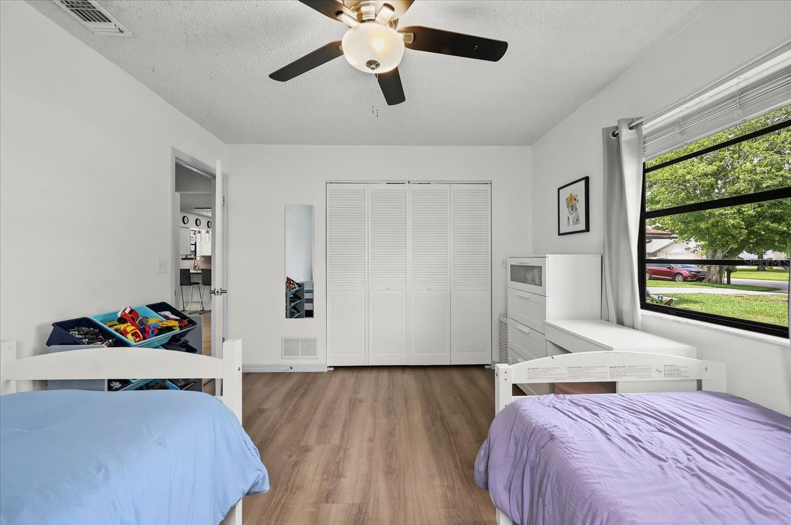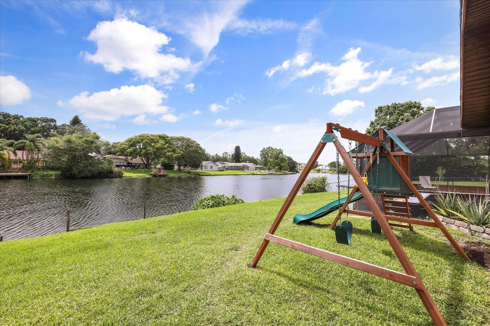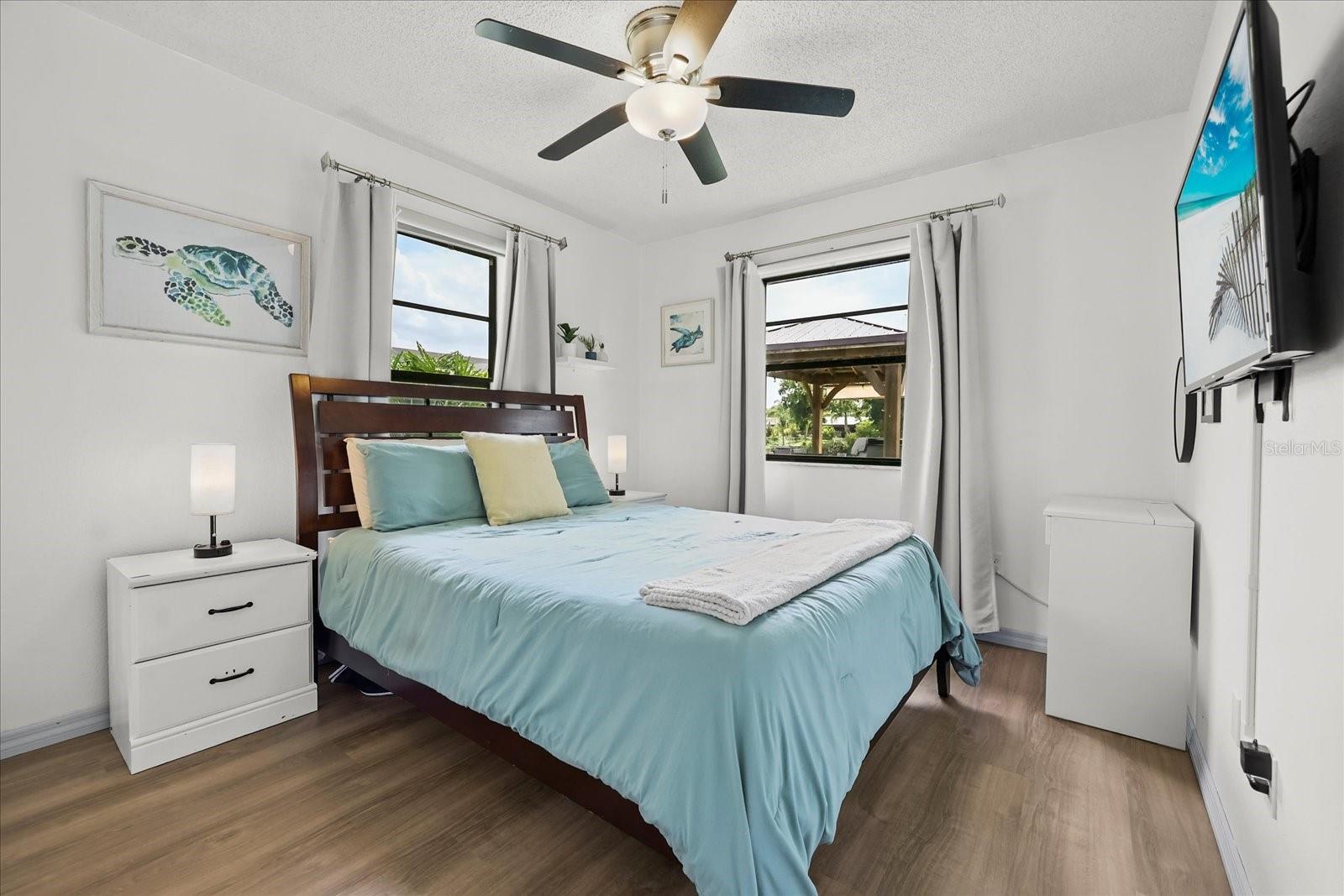 Presenting a beautifully maintained 3-bedroom residence with a spacious master suite, complete with a large walk-in closet, located in one of Port Orange’s most desirable school zones. This thoughtfully designed home offers a split bedroom floor plan and multiple living spaces, including a formal living room, a family room with serene lake views, and a large dining area. The expansive kitchen features modern finishes, ample cabinetry, and a convenient breakfast bar—ideal for both everyday living and entertaining. Interior highlights include tile flooring in the kitchen and family room, complemented by LVT in the formal living room and all bedrooms, creating a warm and inviting atmosphere throughout. A standout feature of this home is the dedicated man cave-style bar—a perfect retreat for entertaining guests or enjoying a relaxing evening at home. Step outside to the screened-in pool area, recently resurfaced with a premium finish, and enjoy stunning lake views in a private, resort-style setting.