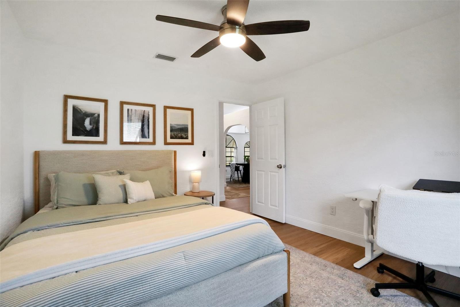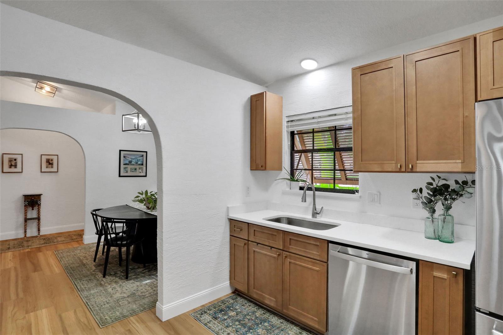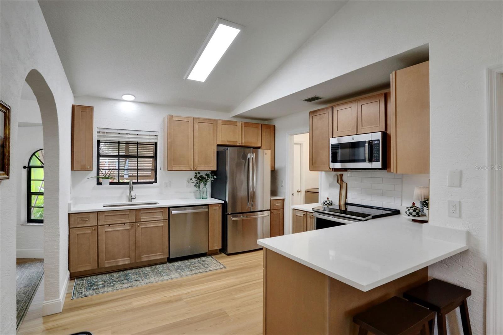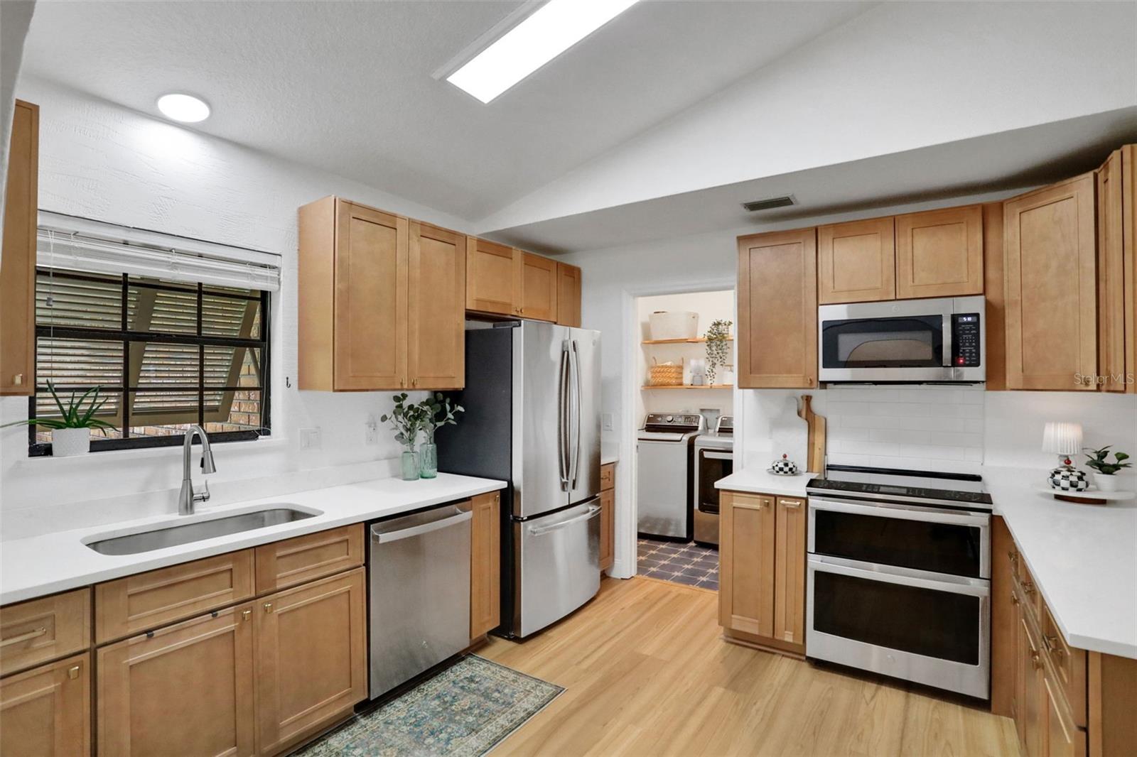 This exquisitely updated 3-bedroom, 2-bath home sits on a large corner lot and has been thoughtfully renovated with modern finishes and everyday comfort in mind. From the moment you step inside, you'll notice how fresh and move-in ready everything feels. The brand-new LVP flooring throughout (2025) gives the home a cohesive, clean look, and the fresh interior paint (2025) adds a light, airy feel to every room. The kitchen has seen a full refresh this year, including brand-new cabinetry, updated countertops, and a new refrigerator (2025). It's a bright and functional space—perfect whether you're cooking a quick breakfast or entertaining friends and family. The stovetop (2022) is a chef's delight. The washer and dryer (2024) are tucked away for convenience. Both bathrooms are well-appointed, and the layout offers a nice balance between shared and private spaces, making it ideal for families, roommates, or anyone who wants a little extra room to spread out. The home also features a newer roof (2022) and a new water heater (2023), so you can rest easy knowing that two of the biggest systems have already been taken care of. Outside, the corner lot offers more yard space than most, and there's plenty of potential for a garden, play area, or outdoor entertaining. You will find this home in an established and welcoming neighborhood near Neighbor's Ice Cream and All Children's Park plus it's just a short drive from shops, dining, and everyday essentials. This home has the updates you want, the layout you need, and the kind of charm that makes it easy to imagine living here. It's the kind of place that just feels good from the moment you walk in.