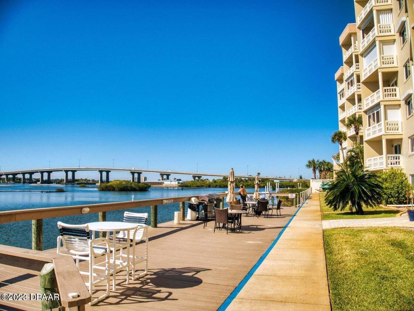 Extraordinary RARE opportunity to own this END UNIT with million dollar views from this DIRECT RIVERFRONT condo. MOVE RIGHT IN to this FURNISHED condo and start enjoying carefree, beachside living! Watch the gorgeous sunsets from your balcony overlooking the Intracoastal Waterway/Halifax River or walk a few blocks to the beach to enjoy the surf or watch the rocket launches from the beach or your balcony! This 1495 square foot, 3rd floor, 3 Bed / 2 Bath unit lets you relax and enjoy the waterfront scenery on your balcony. Condo includes Assigned Covered Parking spot and amenities of a Large Riverfront Heated Pool, BBQ’s where you can sit and watch the dolphins and pelicans frolic as boats go by. Floating Kayak Launch (yearly fee for kayak storage), Fishing Dock, sauna, coin operated laundry on each floor, Bicycle Storage and the beautiful Community Pelican Lounge for your gatherings and Happy Hour get-togethers. LOW condo fees, close to shopping and restaurants. HURRY! Before the ‘Sun sets’ on your opportunity to own your very own slice of paradise in this remarkable and sought after end unit condo!