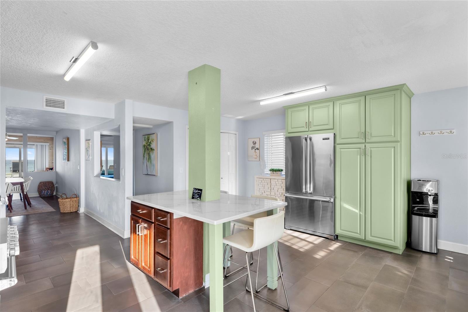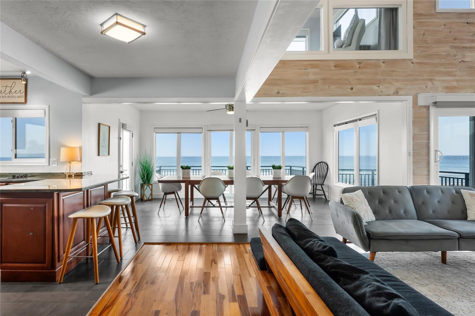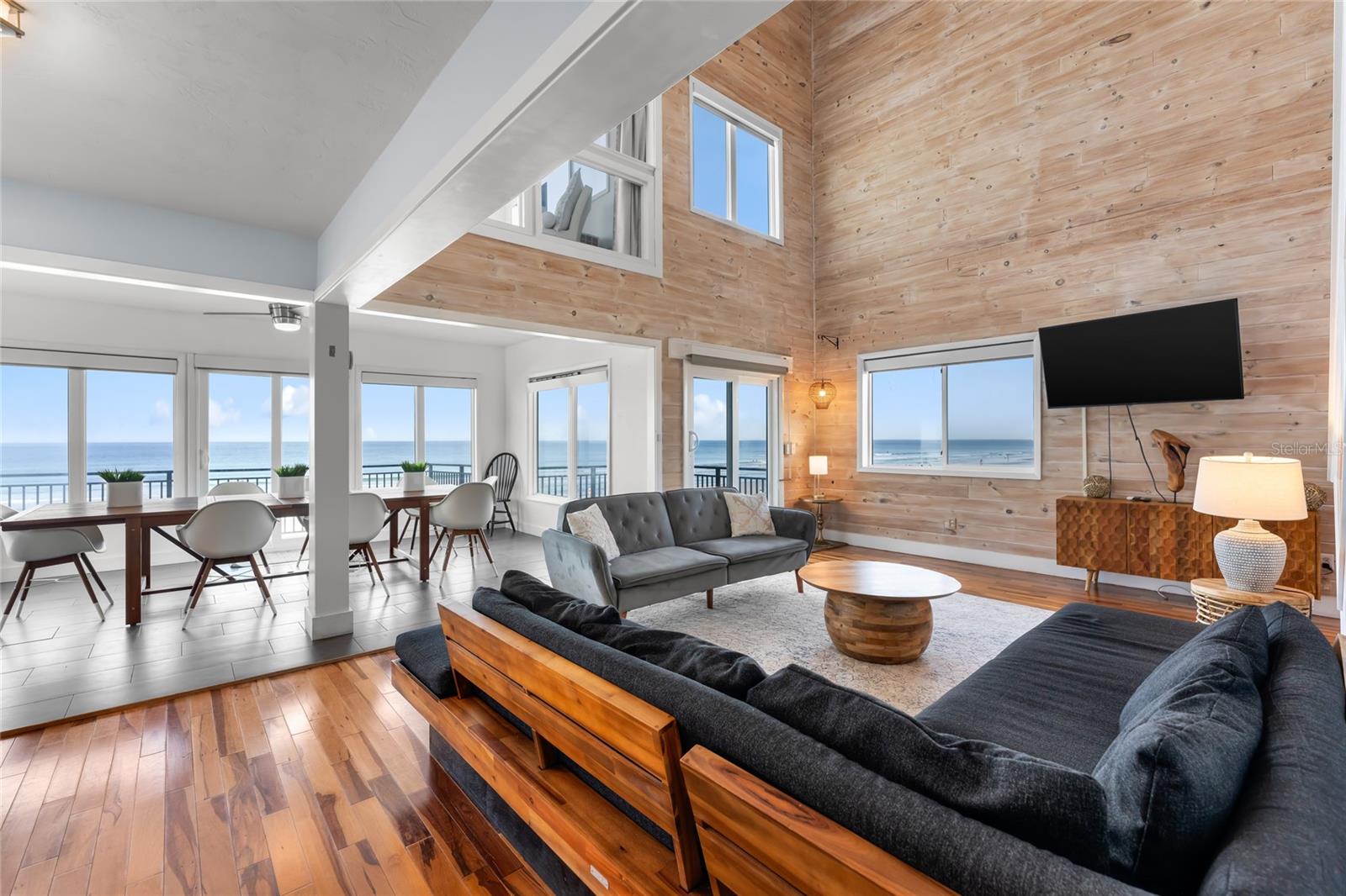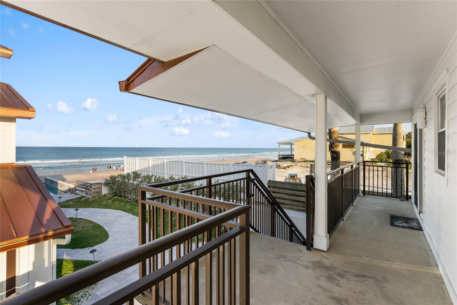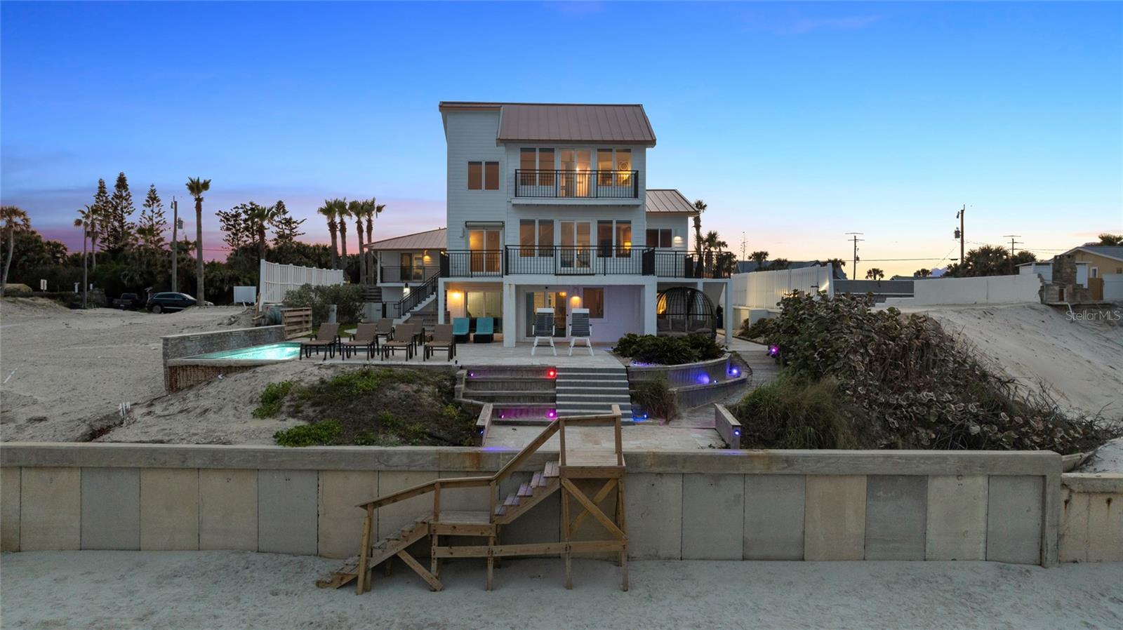 Welcome to your luxurious oceanfront retreat, a sprawling compound designed for both relaxation and entertainment. Nestled on the coastline, this property offers unparalleled views of the ocean and a wealth of amenities to ensure a truly indulgent experience. As you approach, the elegance of the estate is evident from the outset. The concrete driveway with turf inlay sets the stage for the European-inspired architecture that awaits. The main residence, spanning three levels, is a masterpiece of design and functionality. With 5 bedrooms, 5 baths, and a 1 car garage, it effortlessly accommodates both family living and entertaining on a grand scale. Additionally, the detached two-car garage introduces added flexibility with 2 separate guest quarters on the upper floor, each featuring private baths, kitchens, and Murphy beds. Upon entering the home, custom tile with herringbone accents welcomes you into the lower level chef's kitchen. Stone countertops, a center island, and upgraded cabinetry adorned with Viking appliances create a culinary haven that's as stylish as it is practical. The entry level seamlessly flows into the living room and breakfast nook, where large windows and French doors blur the lines between indoor and outdoor living. Step outside to discover a patio, outdoor dining area, and a pool, all framed by panoramic ocean views. Two guest rooms with ocean views and two guest bathrooms (one en-suite) complete the entry level. Ascend to the main level, where soaring 20-foot ceilings and Brazilian oak floors set the stage for a grandeur living experience. Oversized windows and French doors invite natural light to flood the space, showcasing the breathtaking vistas beyond. A second fully equipped water view kitchen, formal living and waterfront dining areas, plus 2 guest bedrooms, 2 guest baths and an office complete this level, offering both functionality and breathtaking vistas. Retreat to the third-floor owner's suite, where a private concrete balcony awaits. Enjoy sweeping ocean views from the comfort of your bed or indulge in the luxurious en-suite bath, complete with a tub and stand-up tile shower. A spacious closet ensures ample storage space, while every detail has been meticulously curated for maximum comfort and convenience. Outside, the indulgence continues with a saltwater solar-heated pool, a private outdoor shower, and a covered patio perfect for al fresco dining. Travertine decking and pathways lead to private beach access, inviting you to explore the pristine shoreline at your leisure. Whether you're seeking a private sanctuary for your family or a lucrative investment opportunity, this oceanfront retreat offers the best of both worlds. With a 30-day minimum for short-term rentals and a proven rental history, it promises both relaxation and potential for financial gain. Don't miss your chance to experience coastal living at its finest - schedule your private tour today.