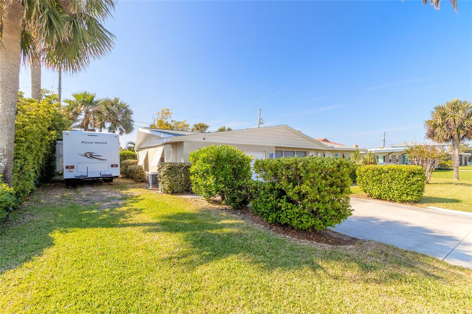 Experience the quintessential beachside lifestyle in this captivating home! Nestled in walking distance to direct beach access and the vibrant Port Orange 'Down Under' district, every day feels like a vacation. Indulge in the coastal charm of this area, boasting Dunes Brewing, Deck Down Under, Jimmy Hulas, and a calendar full of seasonal events just steps away from your door.Step inside to discover a spacious open floor plan flooded with natural light, inviting you to unwind in the large living room or bask in the sun-soaked Florida room. The recently updated kitchen is a chef's dream, featuring a breakfast nook and seamless access to the tropic-themed outdoor seating area—perfect for savoring the ocean breeze and soothing sounds of the waves.Forget about worrying over sand-filled carpets—this home boasts durable wood plank tile throughout, ensuring effortless cleanup after beach days. Plus, with extra private parking for your boat or R/V, adventure is always within reach.But the perks don't end there—benefit from the potential for short-term rental income, a newer HVAC system, updated electrical panel, and a brand NEW roof installed in 2023, providing peace of mind for years to come. Retreat to the ultra-private semi-fenced tropical backyard, nestled on a tranquil cul-de-sac, and relish in the convenience of a boat ramp just 5 minutes away.