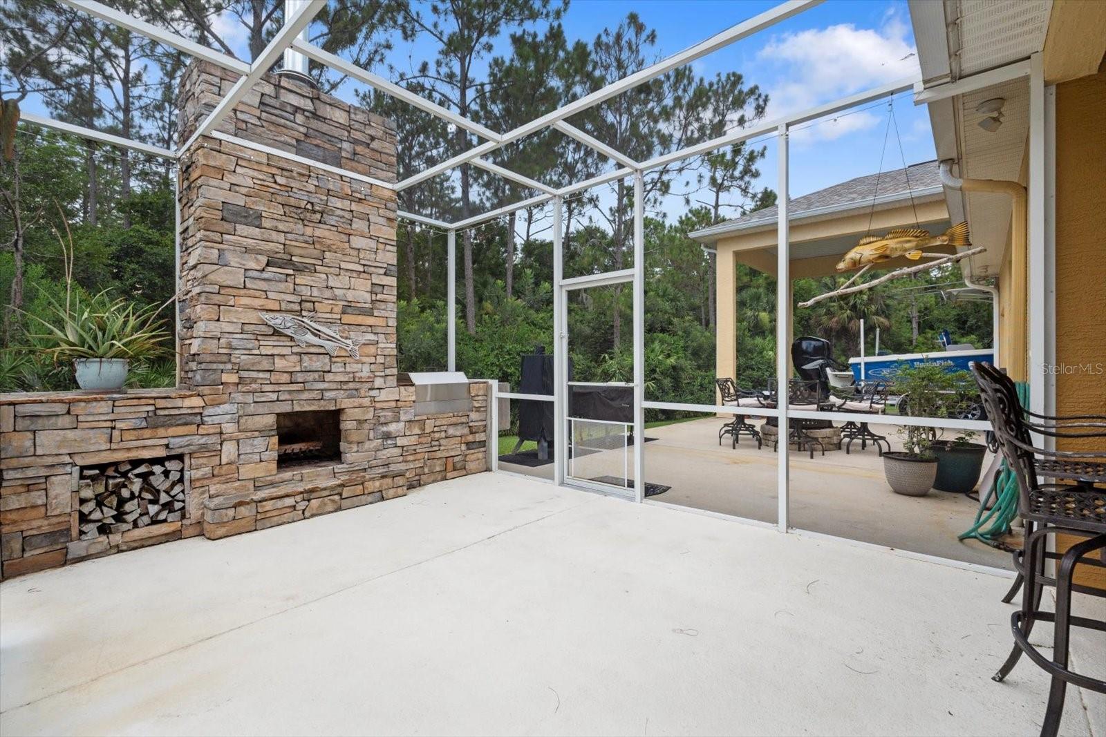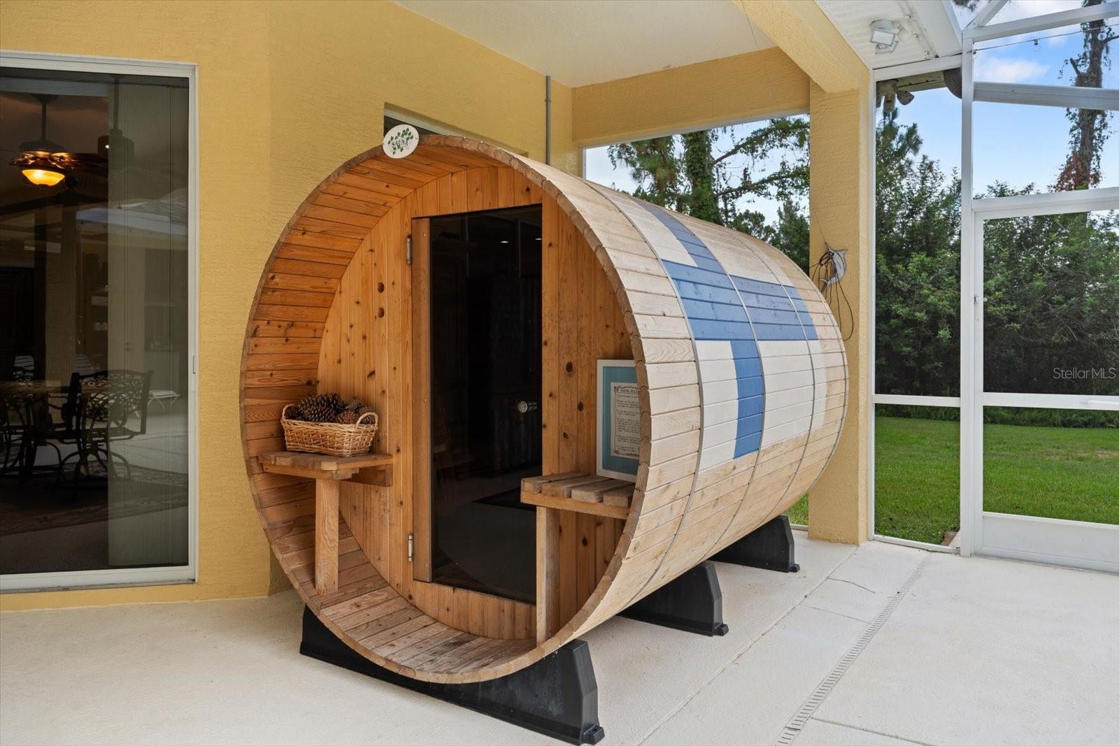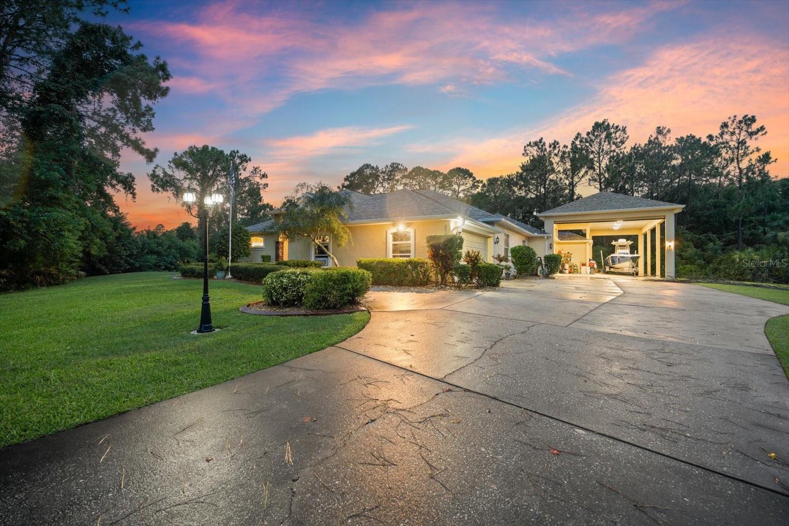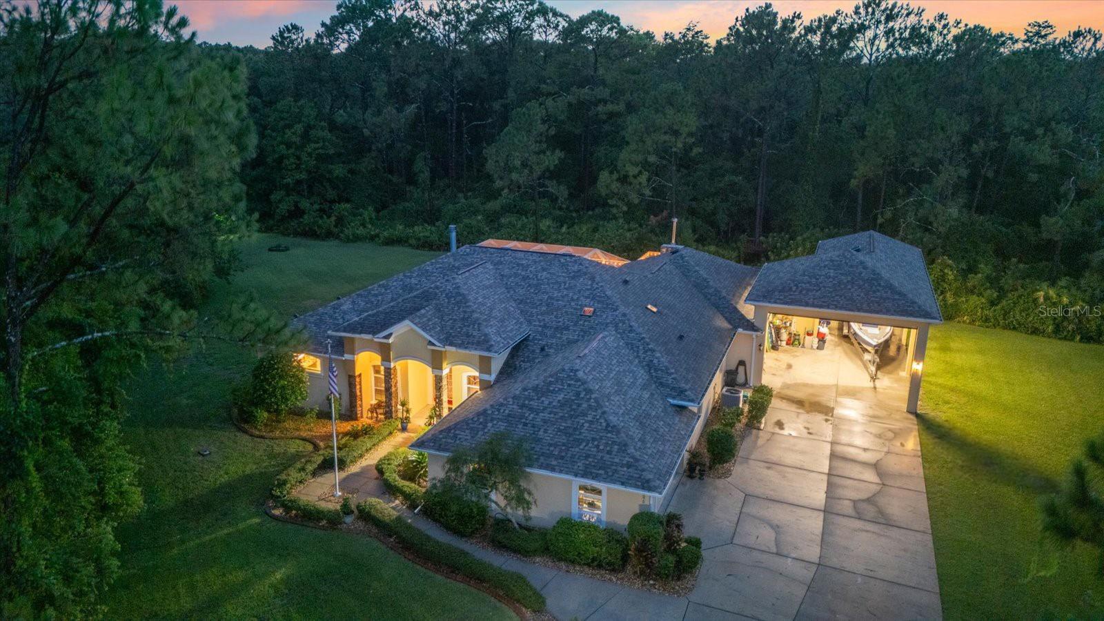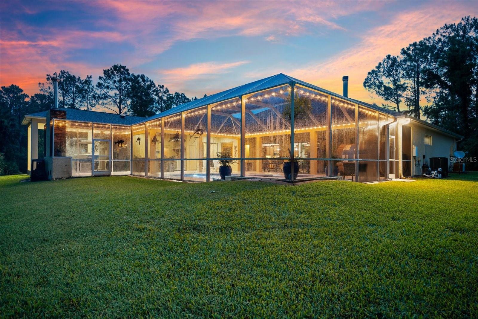 More than a home, are you looking for a lifestyle? Discover Florida luxury in this rare find: a meticulously maintained custom estate located in the exclusive and highly sought-after Whispering Creek Estates. This stunning property boasts 4 large bedrooms, 3 full baths, and an office or potential 5th bedroom, all situated on a high and dry 1.41-acre lot at the end of a cul-de-sac, backing up to conservation land that will never be developed. As you approach, you’ll be impressed by the expansive porte-cochère (52.6' x 24') with a commercial electric garage door, easily accommodating a class 1 RV or boat with extra room for all the toys, allowing for easy drive-through access. Additionally, there is a single garage space attached to the house, ideal for golf cart parking or extra storage. Step inside to find 3,128 square feet of living space, all on one floor, yet feeling much larger due to the well-thought-out design. Most rooms have serene views of the pool area through double slider glass doors and double pane windows with Corian sills. The home features two lighted niches, 10' ceilings, and beautiful wood floors throughout. The living room, with its remote control gas fireplace and 10' tray ceilings, exudes elegance and comfort. The state-of-the-art kitchen is a chef’s dream, equipped with custom maple cabinets, granite countertops, a custom tile backsplash, and top-grade stainless steel appliances, including a new convection and air fry oven. The large, double-door, lighted pantry provides ample storage space. Retreat to the expansive master suite, which opens directly to the pool area. The remodeled (May 2024) spa-style master bathroom features his and her vanities, a Jacuzzi jetted tub, zero entry walk-in shower with custom river rock tile to the ceiling, back-lit LED anti-fog mirrors, wood cabinets, granite countertops, a gorgeous chandelier, a separate water closet, and a walk-in closet. The fourth bedroom, perfect for guests or a mother-in-law suite, offers its own full bathroom and access to the pool area. It is connected to the second living room or "game room," which features a tray ceiling with a stunning sky mural and glass French double doors. Two additional large bedrooms share a bathroom on the opposite side of the house, and the fifth bedroom, ideal as an office or workout room, is located next to the master suite. All bedrooms feature walk-in closets. The large screened pool area is an entertainer's paradise, boasting a huge heated pool, a raised hot tub with a waterfall, and recent resurfacing. The outdoor kitchen includes a 10-seater stone bar, a Delta stainless steel BBQ, granite countertops, special night lighting, and surround sound speakers throughout the entire pool area and inside the house. Adjacent to the outdoor kitchen is a massive stone-faced, floor-to-ceiling wood-burning custom fireplace with another built-in stainless steel BBQ. Additional amenities include a 6-person sauna and a custom-built fire pit on the back lanai. This very private, fully irrigated lot in Whispering Creek Subdivision offers country living with the convenience of being just minutes from the beach, restaurants, shopping, and only 1 hour from Orlando. With too many amenities to list, this home is a must-see for those seeking luxury and tranquility in a prime location. Don’t miss this incredible opportunity to own a piece of paradise in Whispering Creek!