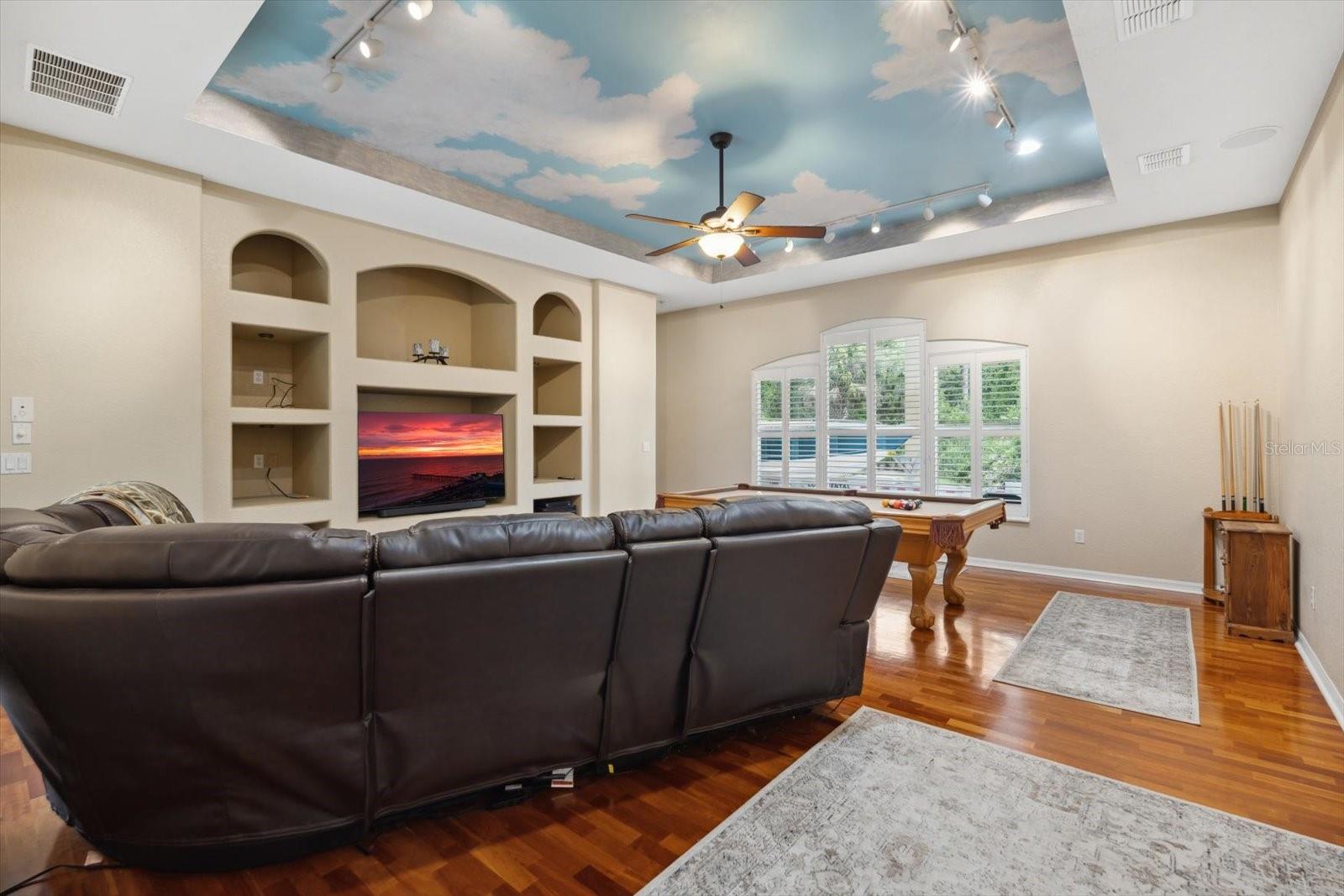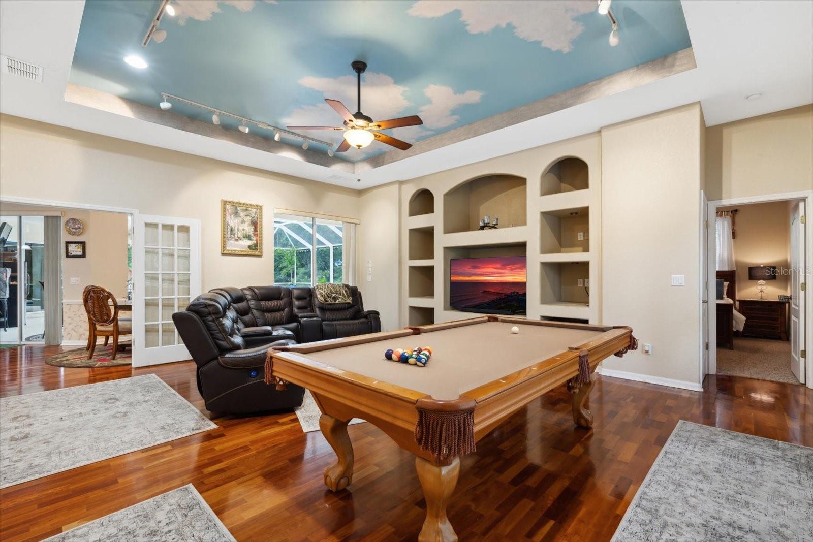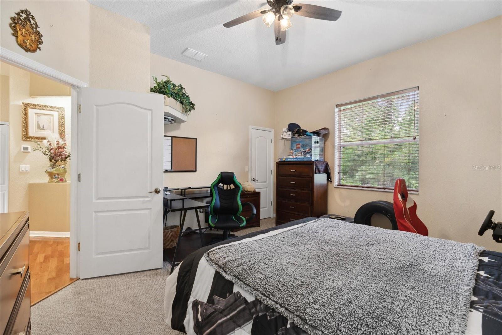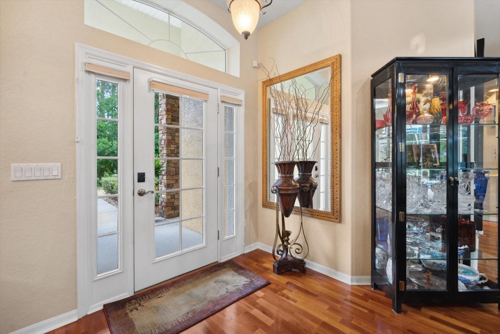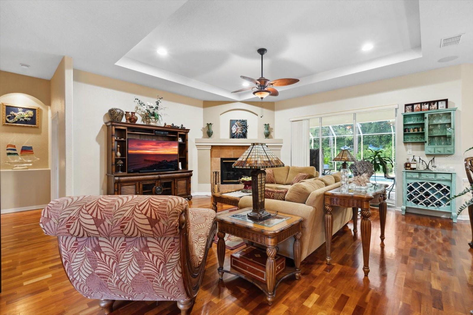 More than a home, are you looking for a lifestyle? Discover Florida luxury in this rare find: a meticulously maintained custom estate located in the exclusive and highly sought-after Whispering Creek Estates. This stunning property boasts 4 large bedrooms, 3 full baths, and an office or potential 5th bedroom, all situated on a high and dry 1.41-acre lot at the end of a cul-de-sac, backing up to conservation land that will never be developed. As you approach, you’ll be impressed by the expansive porte-cochère (52.6' x 24') with a commercial electric garage door, easily accommodating a class 1 RV or boat with extra room for all the toys, allowing for easy drive-through access. Additionally, there is a single garage space attached to the house, ideal for golf cart parking or extra storage. Step inside to find 3,128 square feet of living space, all on one floor, yet feeling much larger due to the well-thought-out design. Most rooms have serene views of the pool area through double slider glass doors and double pane windows with Corian sills. The home features two lighted niches, 10' ceilings, and beautiful wood floors throughout. The living room, with its remote control gas fireplace and 10' tray ceilings, exudes elegance and comfort. The state-of-the-art kitchen is a chef’s dream, equipped with custom maple cabinets, granite countertops, a custom tile backsplash, and top-grade stainless steel appliances, including a new convection and air fry oven. The large, double-door, lighted pantry provides ample storage space. Retreat to the expansive master suite, which opens directly to the pool area. The remodeled (May 2024) spa-style master bathroom features his and her vanities, a Jacuzzi jetted tub, zero entry walk-in shower with custom river rock tile to the ceiling, back-lit LED anti-fog mirrors, wood cabinets, granite countertops, a gorgeous chandelier, a separate water closet, and a walk-in closet. The fourth bedroom, perfect for guests or a mother-in-law suite, offers its own full bathroom and access to the pool area. It is connected to the second living room or "game room," which features a tray ceiling with a stunning sky mural and glass French double doors. Two additional large bedrooms share a bathroom on the opposite side of the house, and the fifth bedroom, ideal as an office or workout room, is located next to the master suite. All bedrooms feature walk-in closets. The large screened pool area is an entertainer's paradise, boasting a huge heated pool, a raised hot tub with a waterfall, and recent resurfacing. The outdoor kitchen includes a 10-seater stone bar, a Delta stainless steel BBQ, granite countertops, special night lighting, and surround sound speakers throughout the entire pool area and inside the house. Adjacent to the outdoor kitchen is a massive stone-faced, floor-to-ceiling wood-burning custom fireplace with another built-in stainless steel BBQ. Additional amenities include a 6-person sauna and a custom-built fire pit on the back lanai. This very private, fully irrigated lot in Whispering Creek Subdivision offers country living with the convenience of being just minutes from the beach, restaurants, shopping, and only 1 hour from Orlando. With too many amenities to list, this home is a must-see for those seeking luxury and tranquility in a prime location. Don’t miss this incredible opportunity to own a piece of paradise in Whispering Creek!