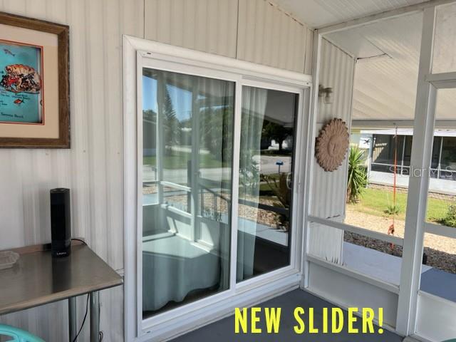 NO LOT RENT AND NO HOA AND A NEW ROOF 2023! You own the land with this lovely 3 bedroom, 2 bath double wide manufactured home. Large screened in porch on the east side with new sliding glass door and inside blind. Enjoy the sunrise and great view for watching the Rocket launches from Cape Canaveral! Home is freshly painted inside and out with brand new flooring in 2 rooms and primary bath and the rest was new a year ago. Newer appliances throughout! Outside is a large shed with power so it can be used as storage or a workroom. New landscaping rock in front and side yard and lots of mature plants including 2 and fruit bearing avocado trees. Convenient Port Orange location, close to shopping, entertainment and I95. Come home to this beautiful sunrise today.