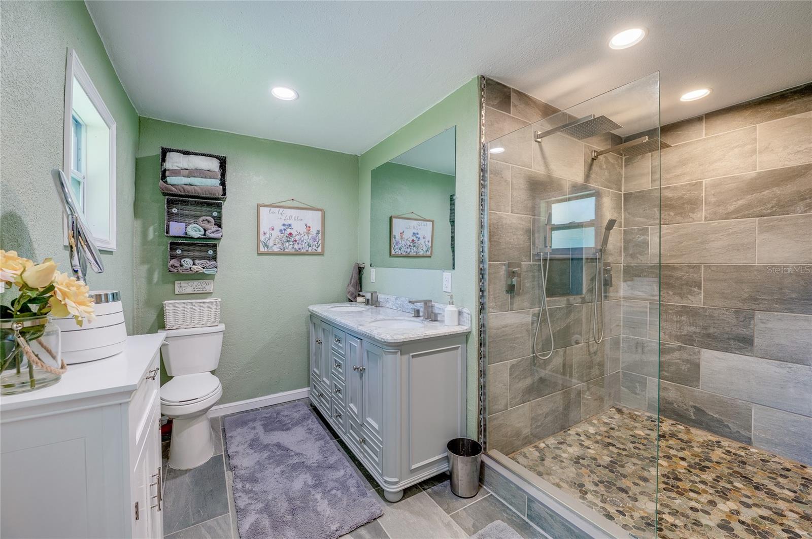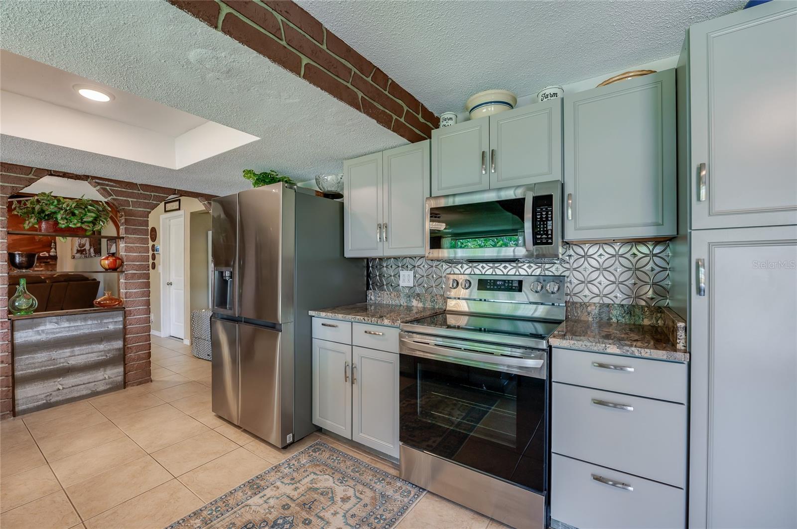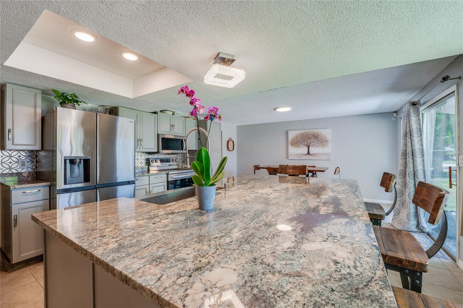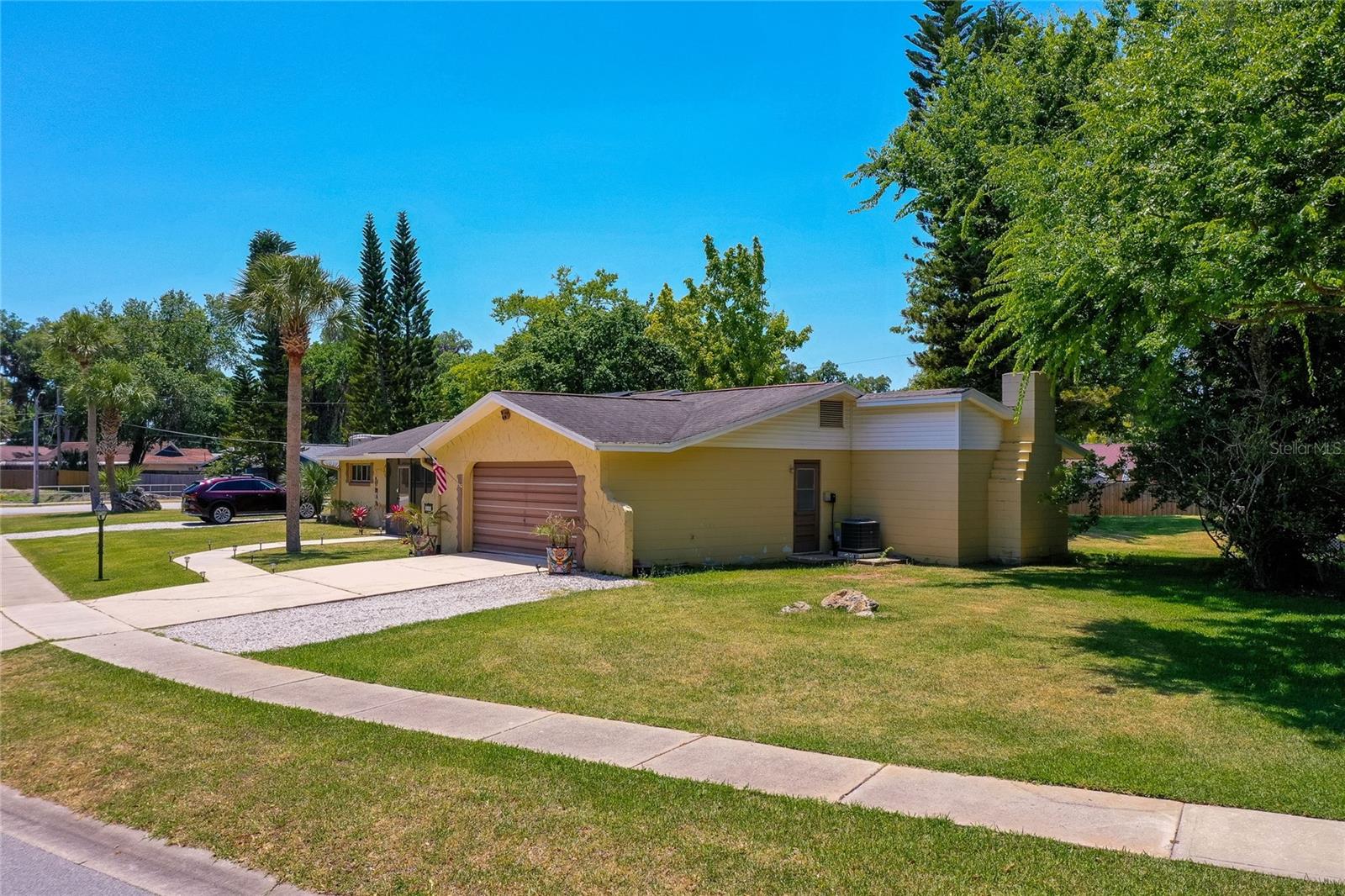 Large corner double lot! Remodeled 3 bedroom, 2 bathroom home with office in Port Orange. Eco-friendly solar panels offer sustainable living and lower energy bills. Freshly painted interior with an open floor plan that seamlessly connects the living areas. The heart of the home is the beautifully remodeled eat-in kitchen complete with granite countertops, large center island offering breakfast bar seating, and new stainless steel appliances. The living room beckons with its vaulted ceiling adorned with beams and a cozy wood burning fireplace. Generous primary bedroom with remodeled ensuite boasting a double sink vanity, granite countertops, and spacious tiled walk-in shower equipped with dual shower heads for a spa-like experience. Outside, the extended gravel driveway provides ample space for parking your RV or boat, making it ideal for outdoor enthusiasts. New AC, water heater and electric panel. Fantastic location with an amazing school zone. Just minutes from the Intracoastal, beach, dining, shopping and entertainment. Don't miss the chance to make this exceptional property your own and experience the ultimate Florida lifestyle. All information recorded in the MLS is intended to be accurate but cannot be guaranteed.