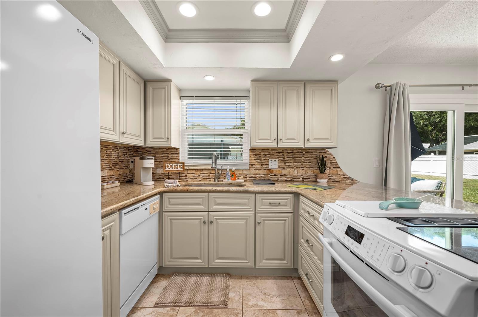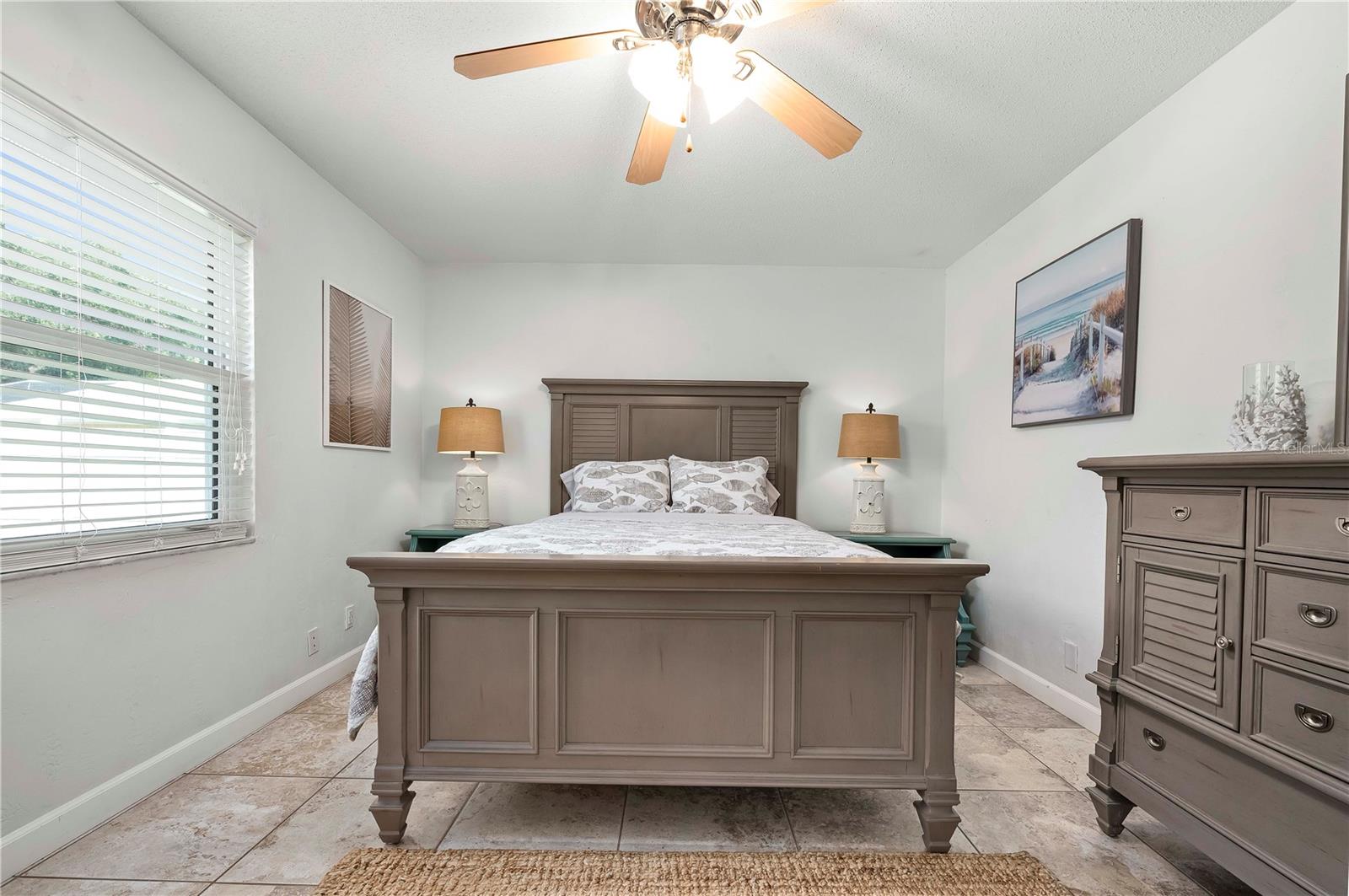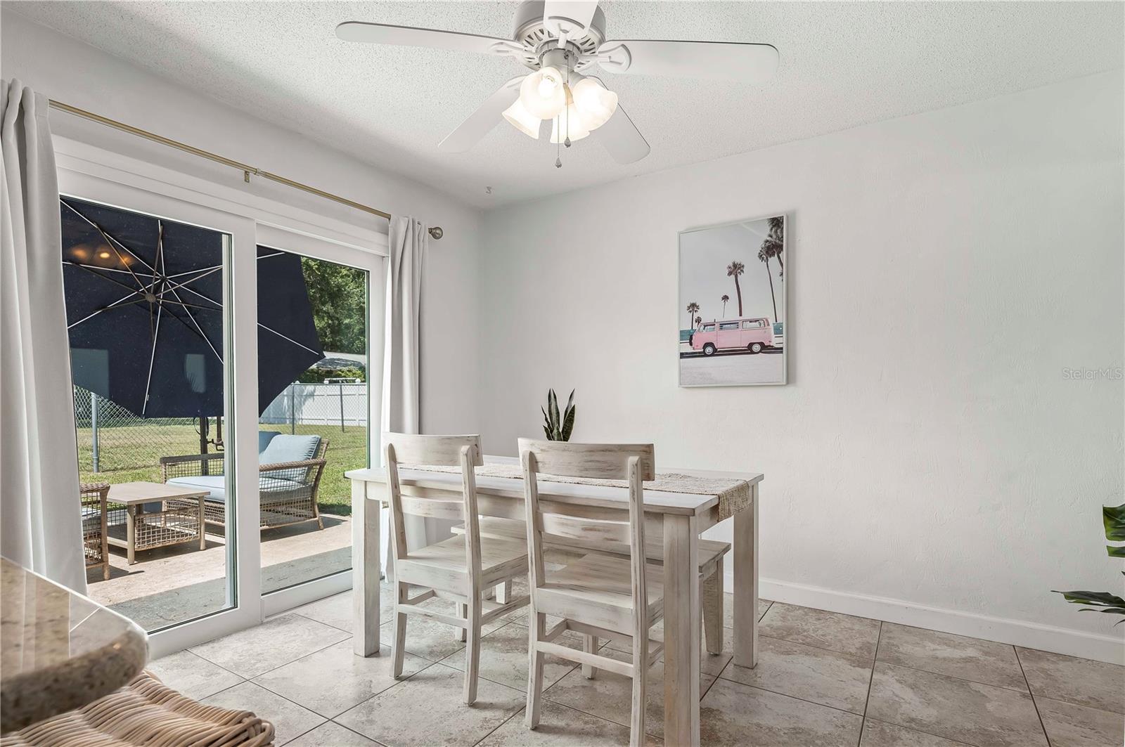 Welcome to this beautifully upgraded 2-bedroom, 2-bathroom TURN KEY home on a desirable corner lot in Port Orange. As you step inside, you're greeted by an abundance of natural light that fills the spacious living room, where front-facing windows showcase the meticulously landscaped front yard. The modern kitchen boasts new cabinets, a granite peninsula, and opens to a dedicated dining space—perfect for entertaining. The primary bedroom offers a serene retreat with an ensuite bathroom featuring a stunning tiled shower and seamless glass door. The generous guest bedroom is conveniently located near the upgraded guest bathroom, complete with a shower/tub combo. Outside, enjoy a large backyard with a patio, perfect for outdoor living. This home also features new floors, hurricane-impact windows and doors, soffits/gables, and fresh paint. With a 2017 roof and new water heater, and just minutes from the river and beach, this home is a must-see!