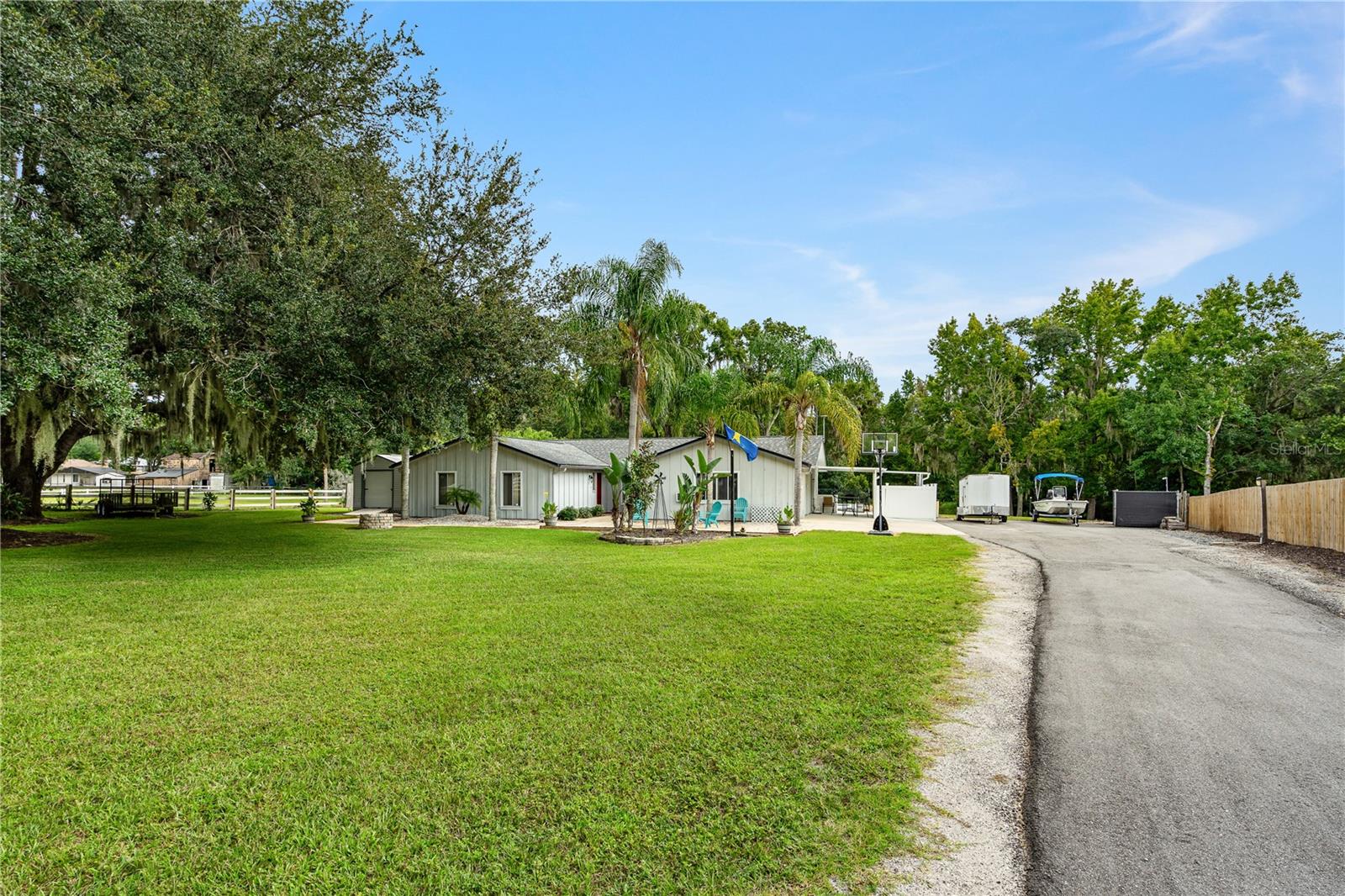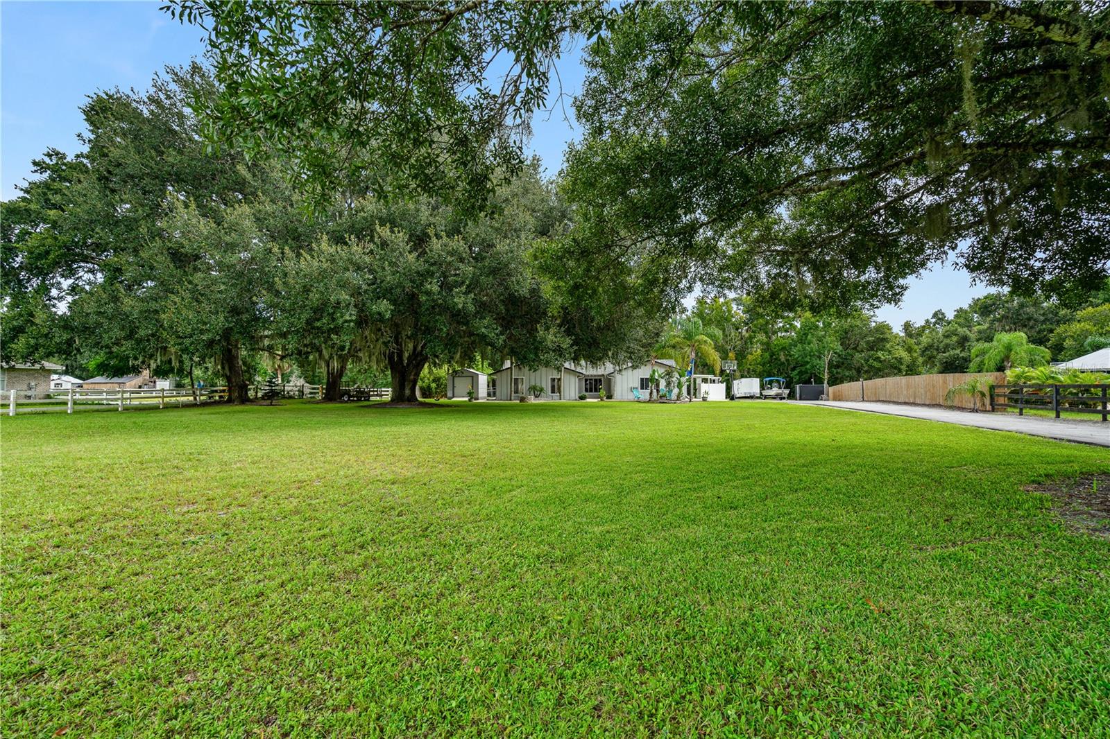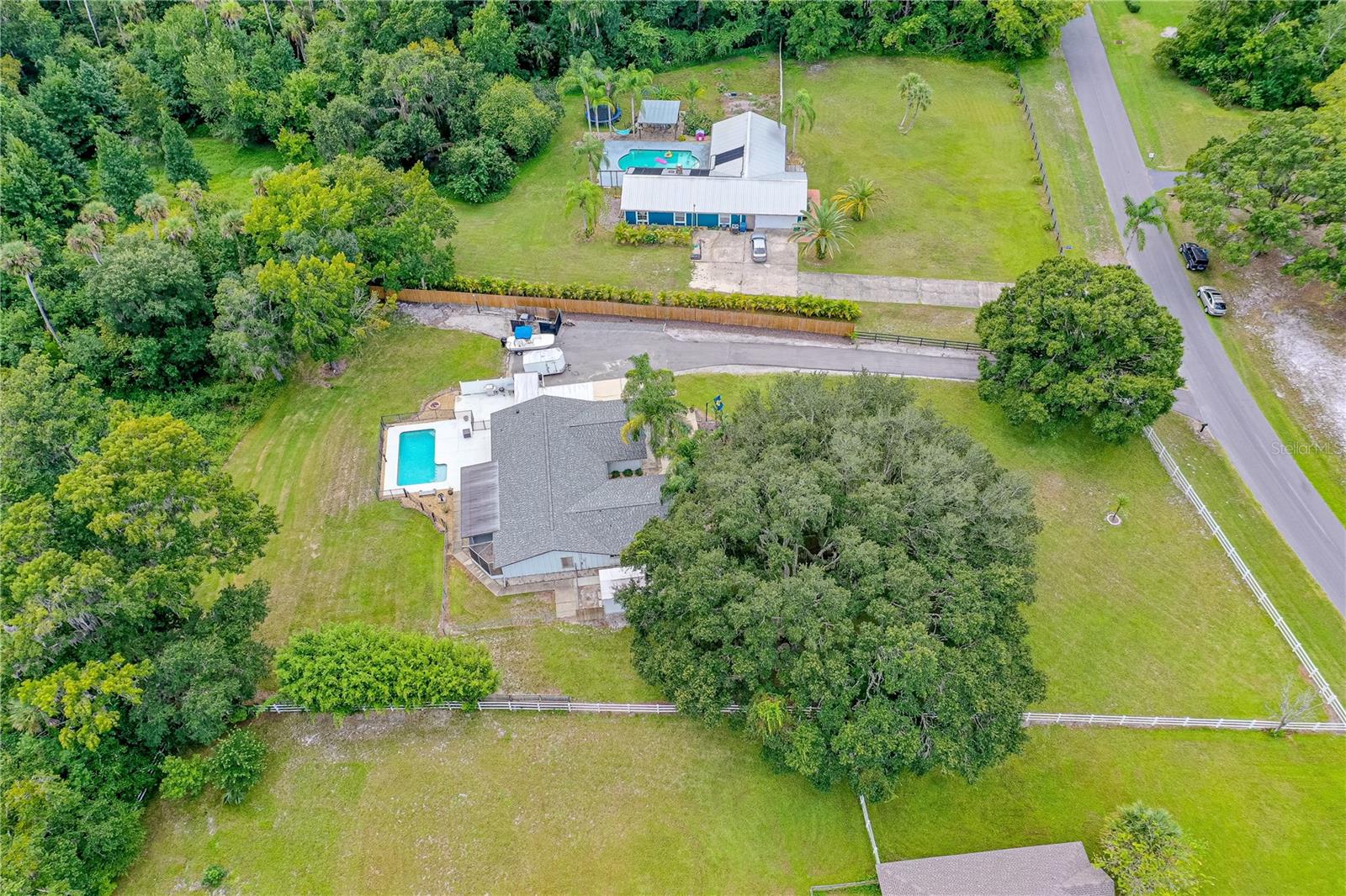 Nature Lover's Paradise - Spacious Ranch Home on 2.52 Acres! Tucked away on 2.52 lush acres, this four-bedroom, 2.5-bath Gem invites you to experience the joys of family life in a setting where the rhythm of nature is the soundtrack of your life. This ranch-style retreat offers a private sanctuary with creek access, perfect for launching kayaks or simply enjoying the peaceful flow of the water. Watch deer wander, from your secluded backyard or the sparkling pool area. The pool can easily convert back to a saltwater oasis. The outdoor amenities enhance the sense of freedom - a carport with a hot water shower, a sink for cleaning your daily catch and the ideal spot for an outdoor kitchen. The two-car oversized garage is cooled by a window AC unit that also has heat, and provides plenty of room for your vehicles and hobbies. Inside, over 2,000 sq ft of thoughtfully designed living space awaits. Modern tile floors flow through the updated kitchen, complete with a breakfast nook, convection oven, newer refrigerator and dishwasher. Living areas offer room for every occasion, and the Family Room can also be used as a Formal Dining Room. If your Family needs more Elbow Room you'll Appreciate the Split Bedroom Plan and the Primary bedroom connects to a second bedroom, with a pocket door for privacy. This home has Storage space Galore. The indoor laundry room with a half bath makes freshening up after outdoor adventures easy. Entertain on the expansive front deck overlooking beautiful Oak trees, or relax on the screened-in porch overlooking the pool deck. A fenced-in dog run adds a delightful feature for your furry friends. With updated electrical, double insulation for energy efficiency, two water heaters, and a four-zone/ 40 sprinkler system fed by a deep well, every detail is designed to provide comfort and convenience!