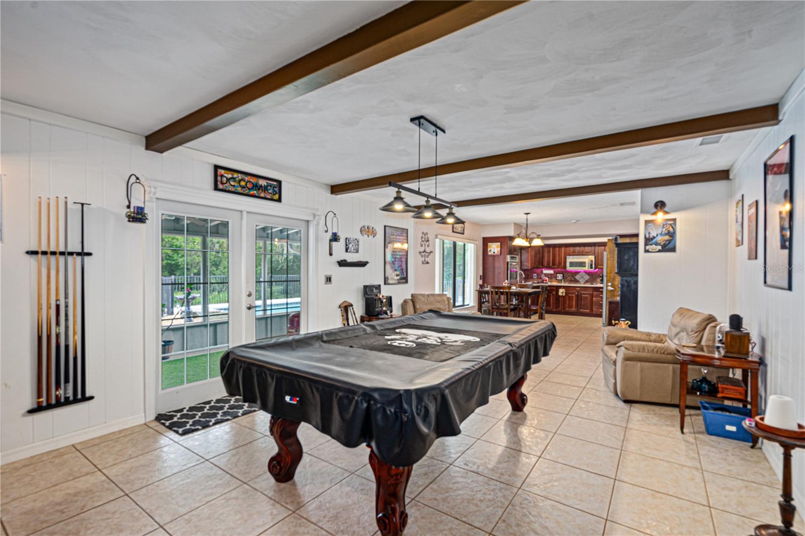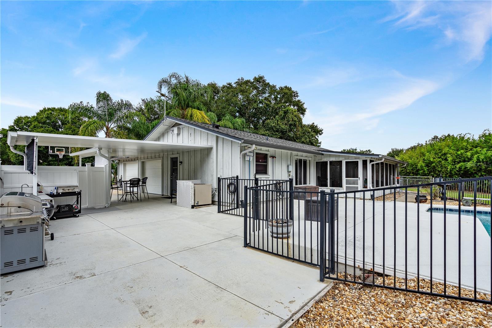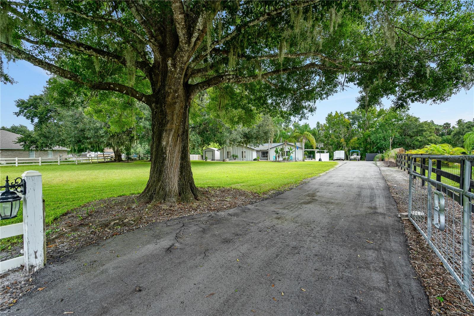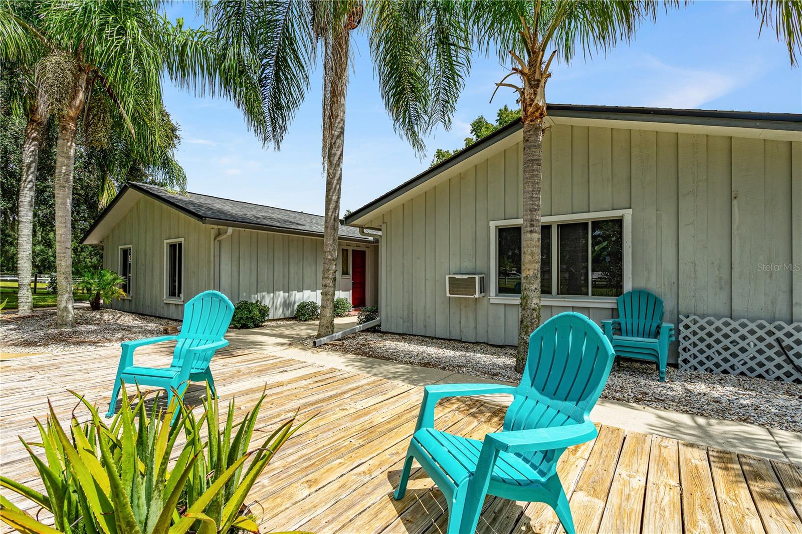 Nature Lover's Paradise - Spacious Ranch Home on 2.52 Acres! Tucked away on 2.52 lush acres, this four-bedroom, 2.5-bath Gem invites you to experience the joys of family life in a setting where the rhythm of nature is the soundtrack of your life. This ranch-style retreat offers a private sanctuary with creek access, perfect for launching kayaks or simply enjoying the peaceful flow of the water. Watch deer wander, from your secluded backyard or the sparkling pool area. The pool can easily convert back to a saltwater oasis. The outdoor amenities enhance the sense of freedom - a carport with a hot water shower, a sink for cleaning your daily catch and the ideal spot for an outdoor kitchen. The two-car oversized garage is cooled by a window AC unit that also has heat, and provides plenty of room for your vehicles and hobbies. Inside, over 2,000 sq ft of thoughtfully designed living space awaits. Modern tile floors flow through the updated kitchen, complete with a breakfast nook, convection oven, newer refrigerator and dishwasher. Living areas offer room for every occasion, and the Family Room can also be used as a Formal Dining Room. If your Family needs more Elbow Room you'll Appreciate the Split Bedroom Plan and the Primary bedroom connects to a second bedroom, with a pocket door for privacy. This home has Storage space Galore. The indoor laundry room with a half bath makes freshening up after outdoor adventures easy. Entertain on the expansive front deck overlooking beautiful Oak trees, or relax on the screened-in porch overlooking the pool deck. A fenced-in dog run adds a delightful feature for your furry friends. With updated electrical, double insulation for energy efficiency, two water heaters, and a four-zone/ 40 sprinkler system fed by a deep well, every detail is designed to provide comfort and convenience!