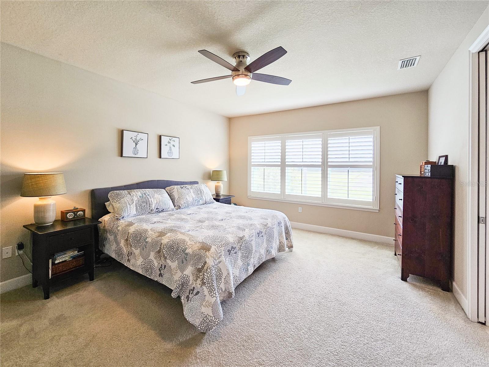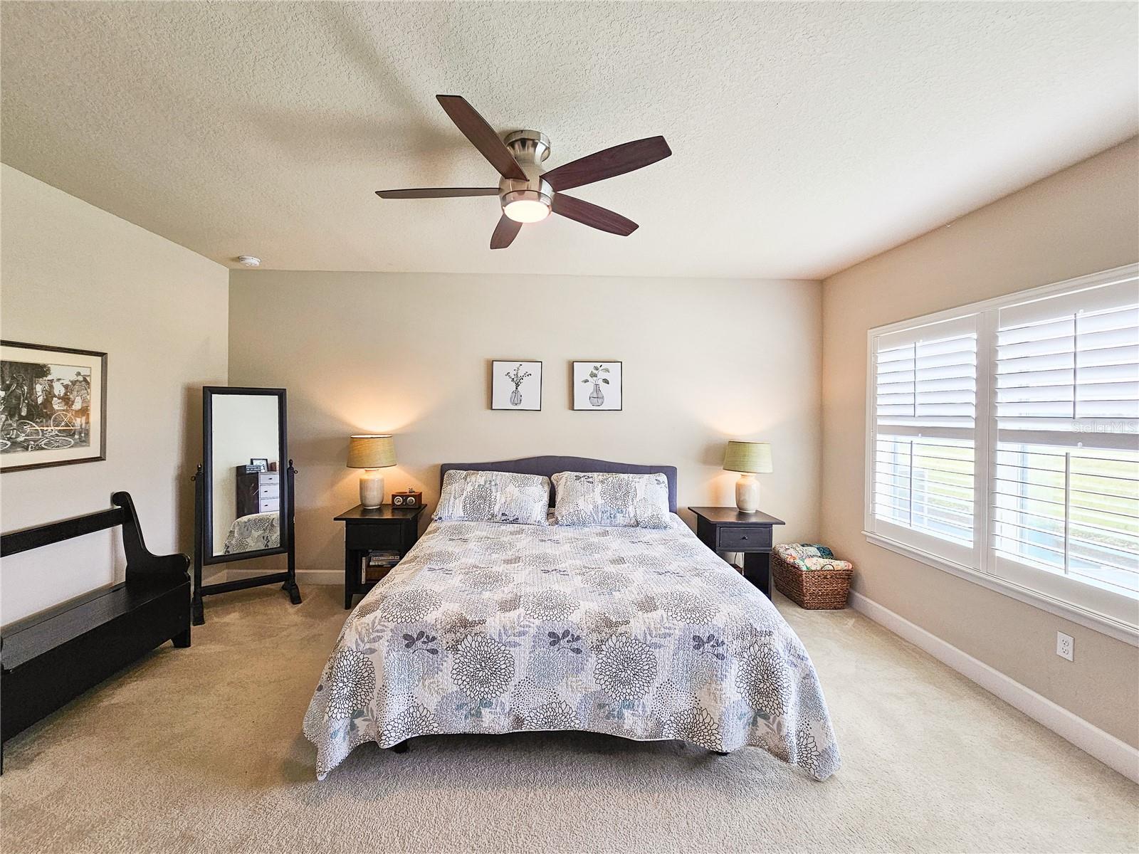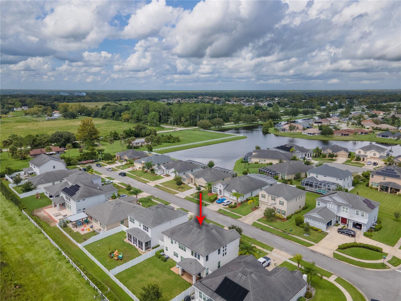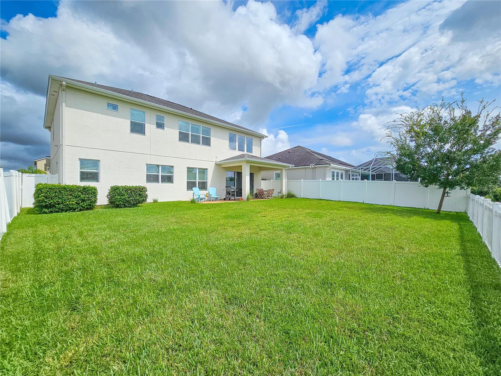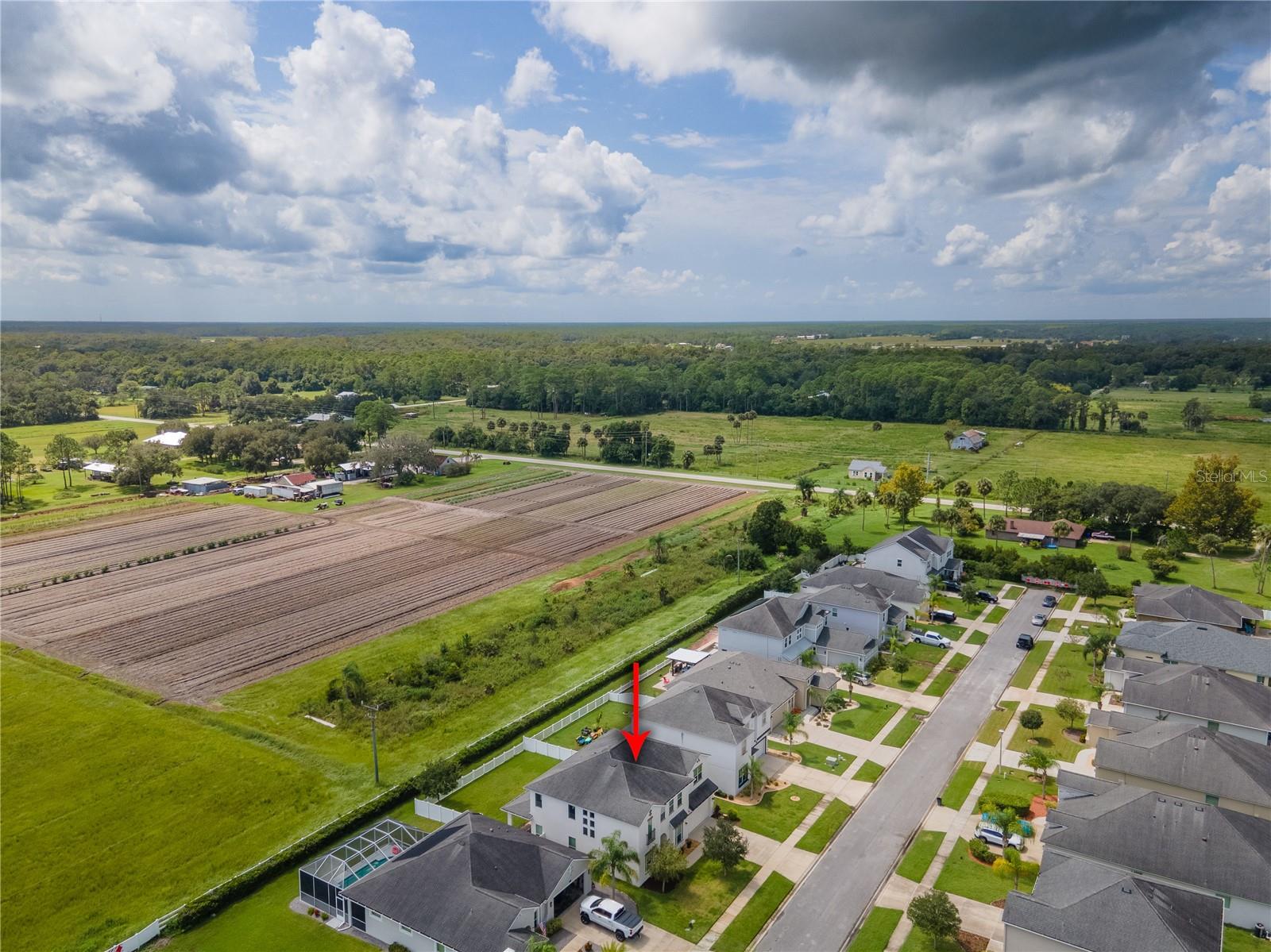 Welcome to your dream home in the sought-after Waters Edge Subdivision! This stunning 5-bedroom, 3.5 bathroom, 2 garage Travis model in the newest phase of the community offers a functional open floor plan. As you enter through the covered entry way to the welcoming foyer and living area, multiple transom windows, plantation shutters, and triple sliding doors to the extended patio provide an abundance of light making this home light and bright. A flex room on the main level off the foyer can be used as a study, office, or your choice. This home offers a gourment kitchen with eat-in nook and a separate dining room for entertaining family and friends. The main level features a versatile 5th bedroom and bath, ideal for guests or in-laws. Upstairs you have 4 additional bedrooms including the owner's suite and a bonus living area for additional use such as a game or recreation room. Enjoy picturesque views of lush farmland from your covered patio and private fenced backyard. With two stories of stylish living space, this home blends modern comfort with a touch of tranquility. Don't miss the chance to make it yours!
