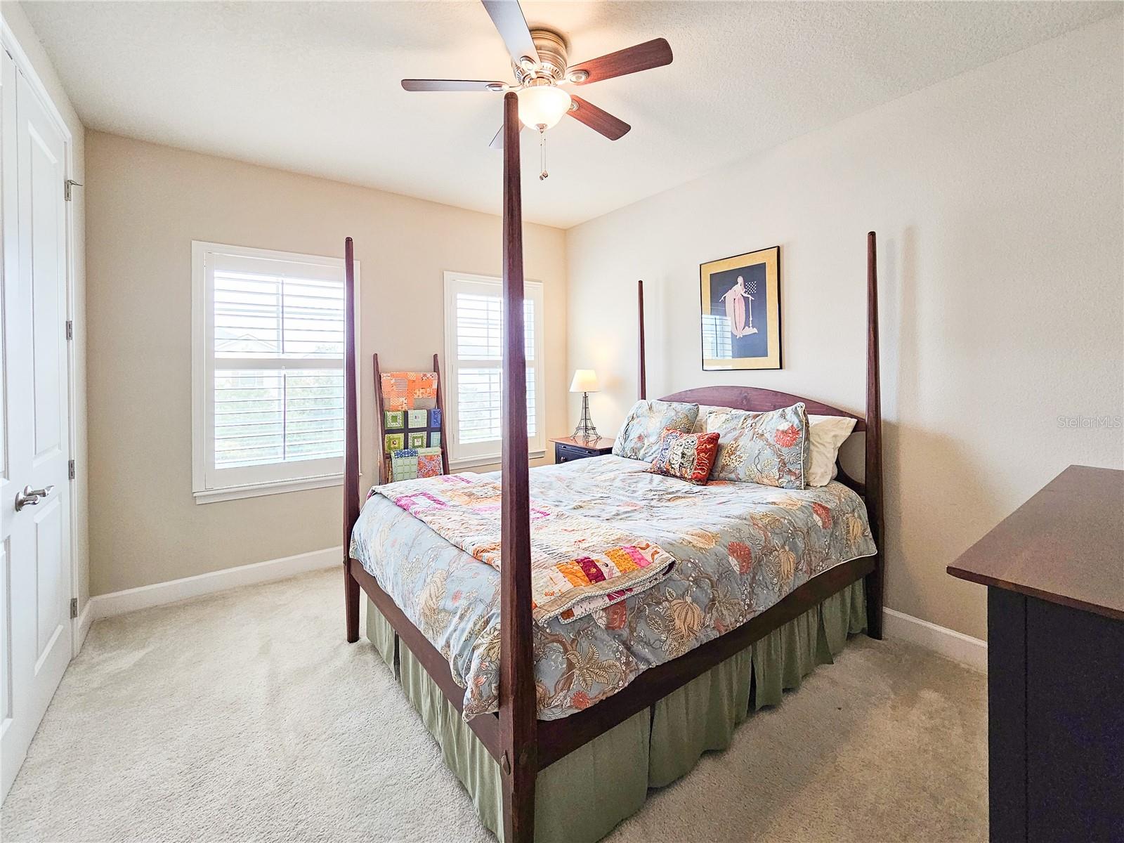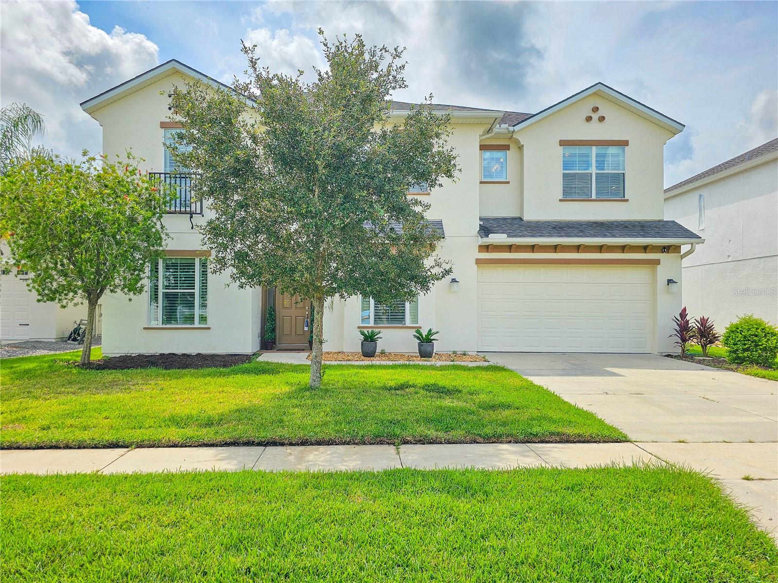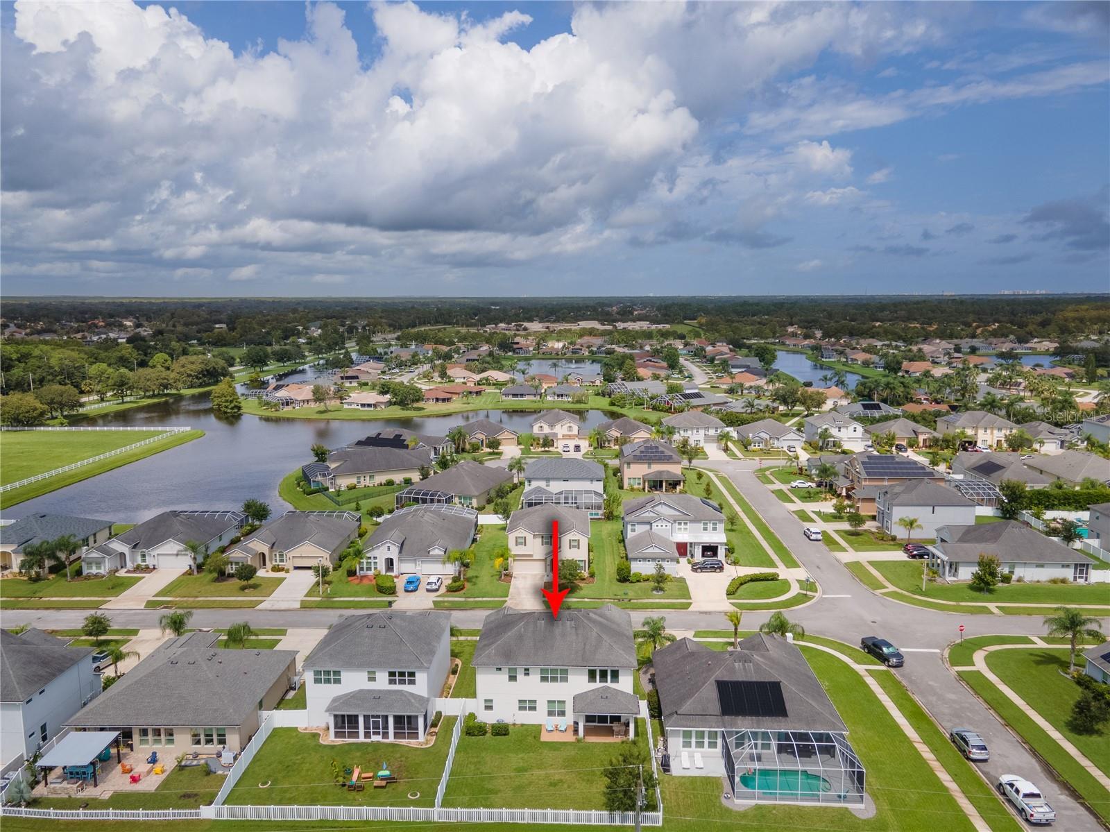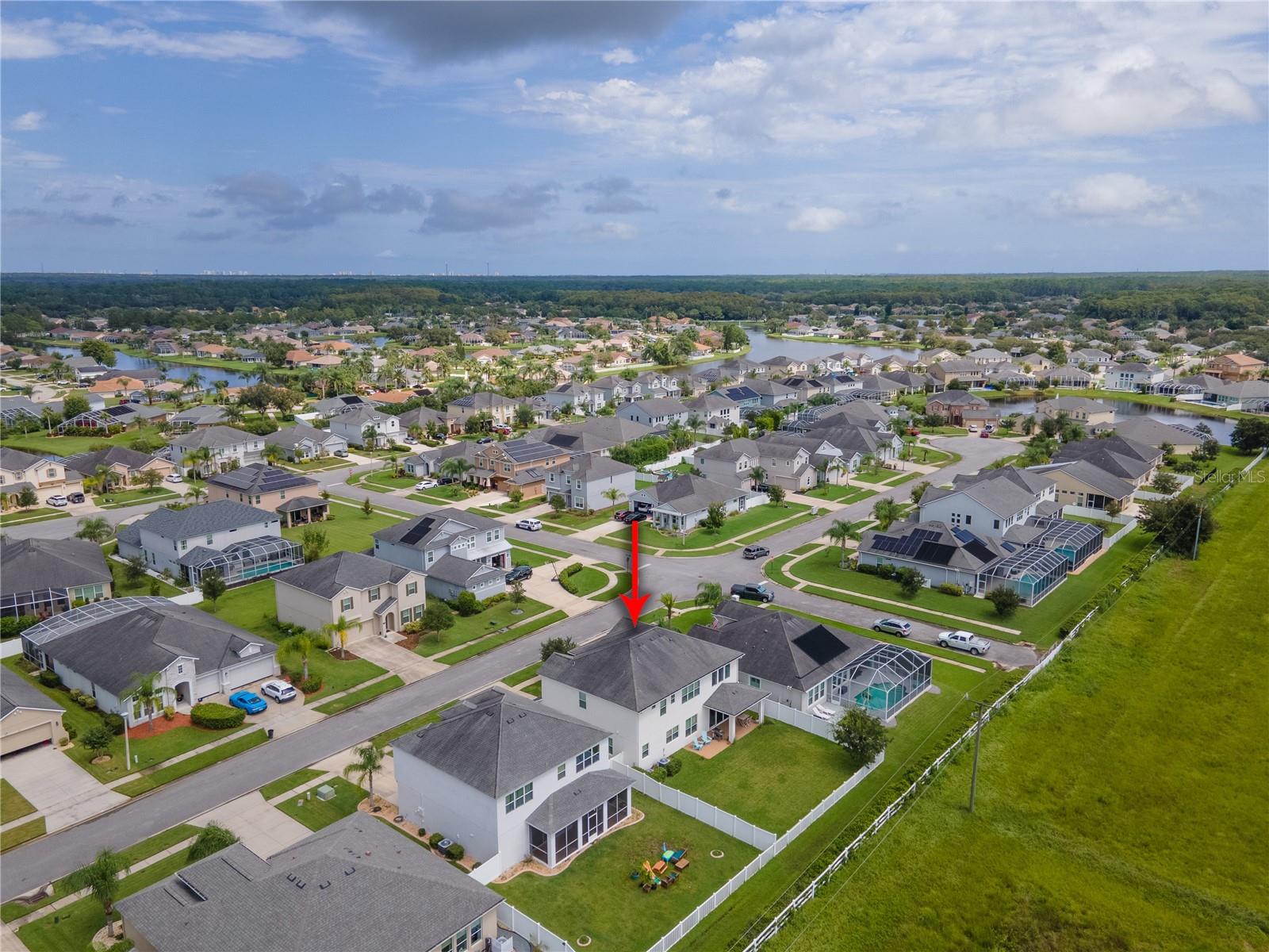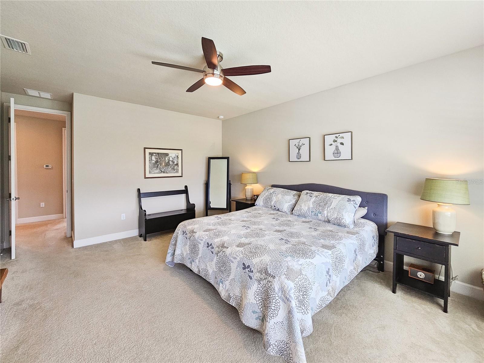 Welcome to your dream home in the sought-after Waters Edge Subdivision! This stunning 5-bedroom, 3.5 bathroom, 2 garage Travis model in the newest phase of the community offers a functional open floor plan. As you enter through the covered entry way to the welcoming foyer and living area, multiple transom windows, plantation shutters, and triple sliding doors to the extended patio provide an abundance of light making this home light and bright. A flex room on the main level off the foyer can be used as a study, office, or your choice. This home offers a gourment kitchen with eat-in nook and a separate dining room for entertaining family and friends. The main level features a versatile 5th bedroom and bath, ideal for guests or in-laws. Upstairs you have 4 additional bedrooms including the owner's suite and a bonus living area for additional use such as a game or recreation room. Enjoy picturesque views of lush farmland from your covered patio and private fenced backyard. With two stories of stylish living space, this home blends modern comfort with a touch of tranquility. Don't miss the chance to make it yours!