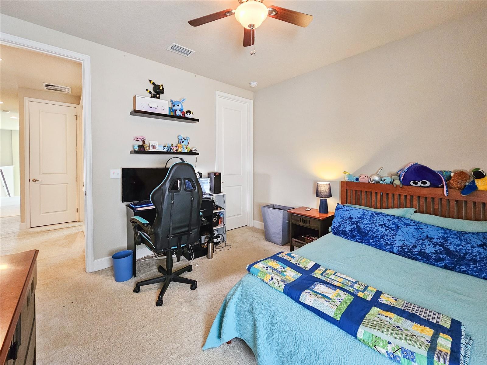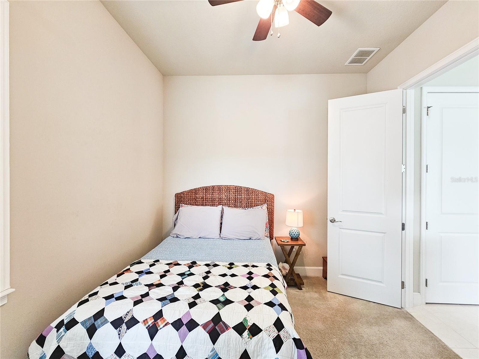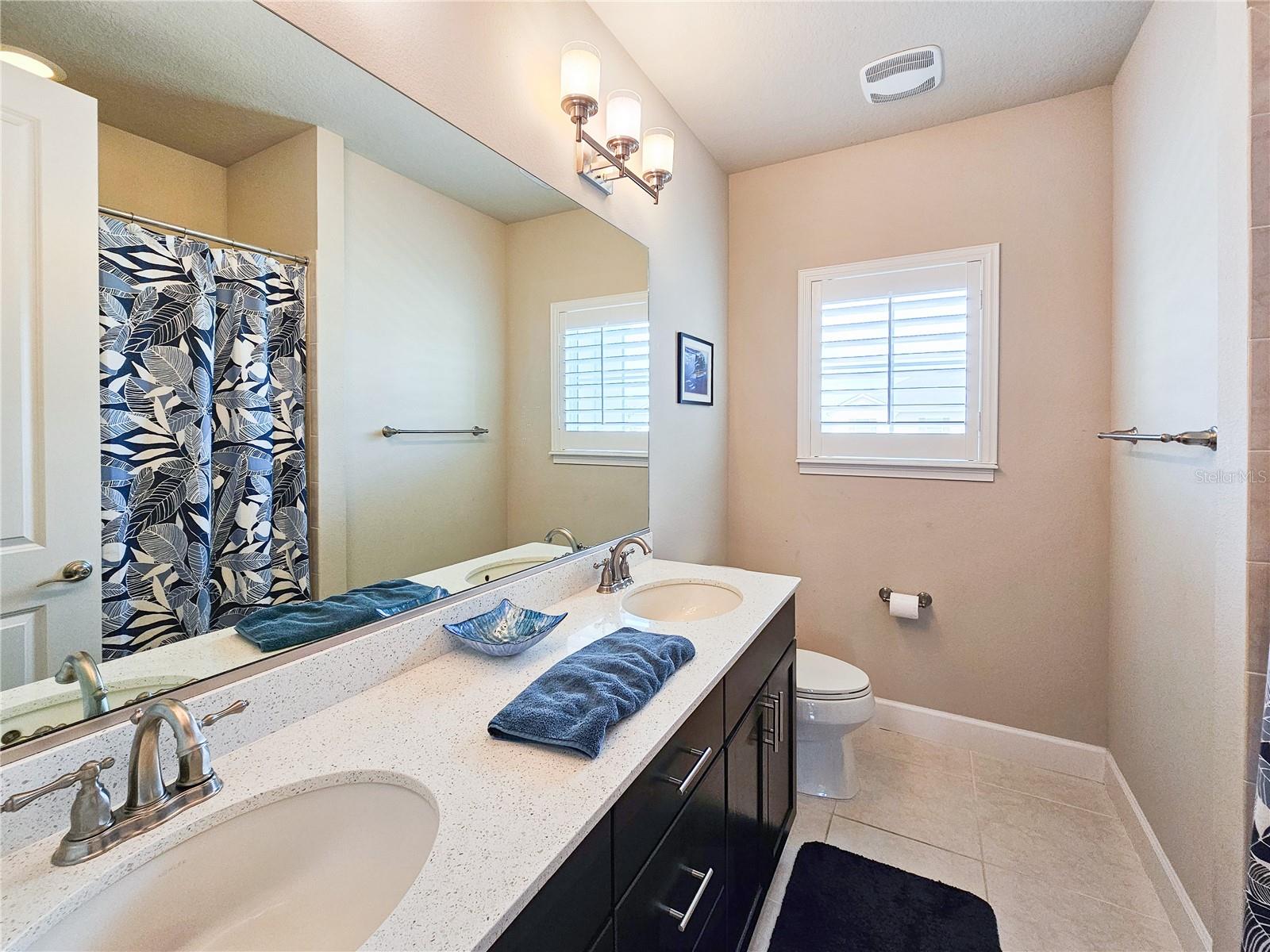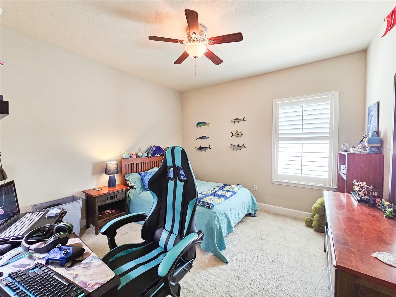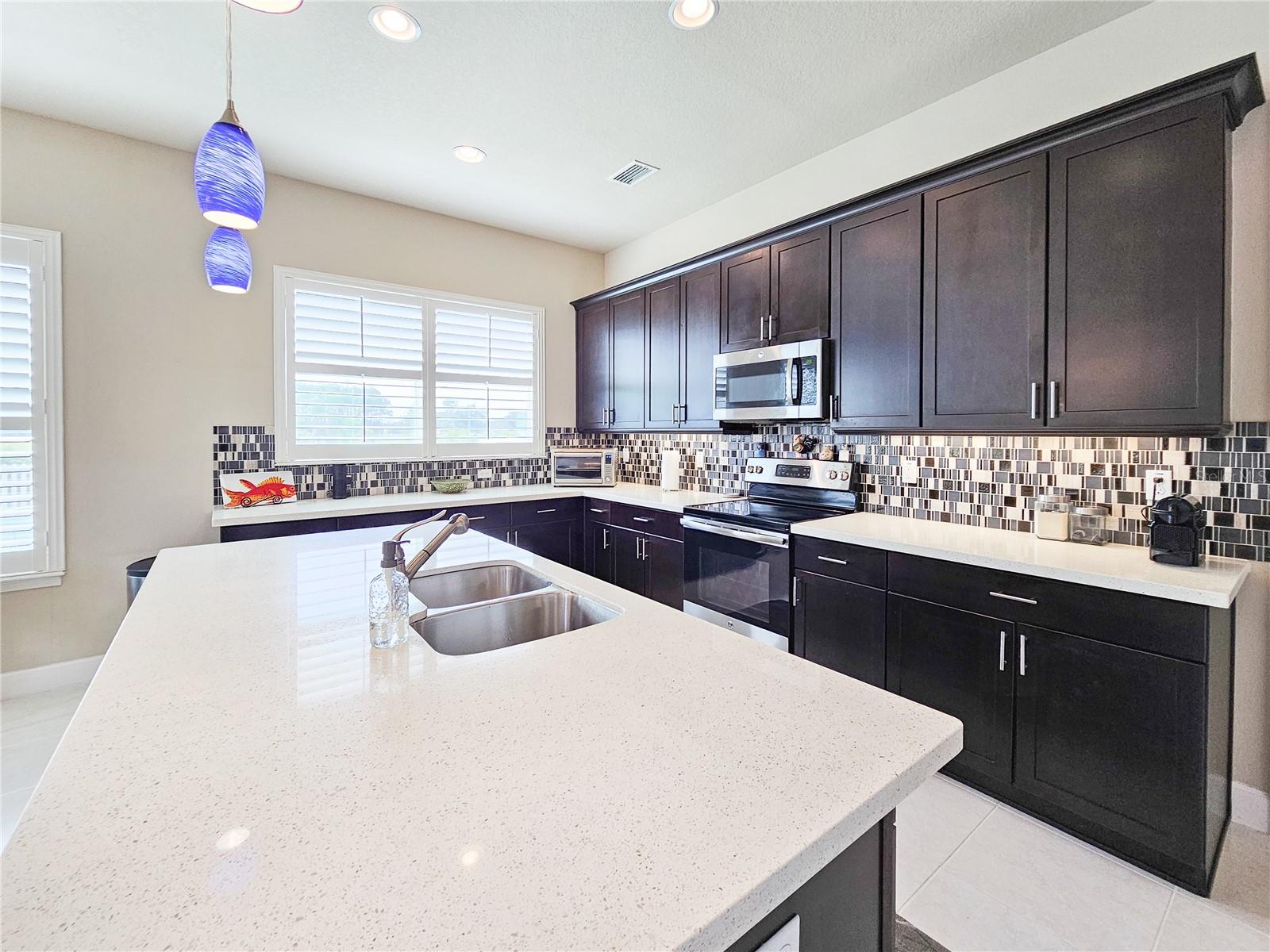Welcome to your dream home in the sought-after Waters Edge Subdivision! This stunning 5-bedroom, 3.5 bathroom, 2 garage Travis model in the newest phase of the community offers a functional open floor plan. As you enter through the covered entry way to the welcoming foyer and living area, multiple transom windows, plantation shutters, and triple sliding doors to the extended patio provide an abundance of light making this home light and bright. A flex room on the main level off the foyer can be used as a study, office, or your choice. This home offers a gourment kitchen with eat-in nook and a separate dining room for entertaining family and friends. The main level features a versatile 5th bedroom and bath, ideal for guests or in-laws. Upstairs you have 4 additional bedrooms including the owner's suite and a bonus living area for additional use such as a game or recreation room. Enjoy picturesque views of lush farmland from your covered patio and private fenced backyard. With two stories of stylish living space, this home blends modern comfort with a touch of tranquility. Don't miss the chance to make it yours!