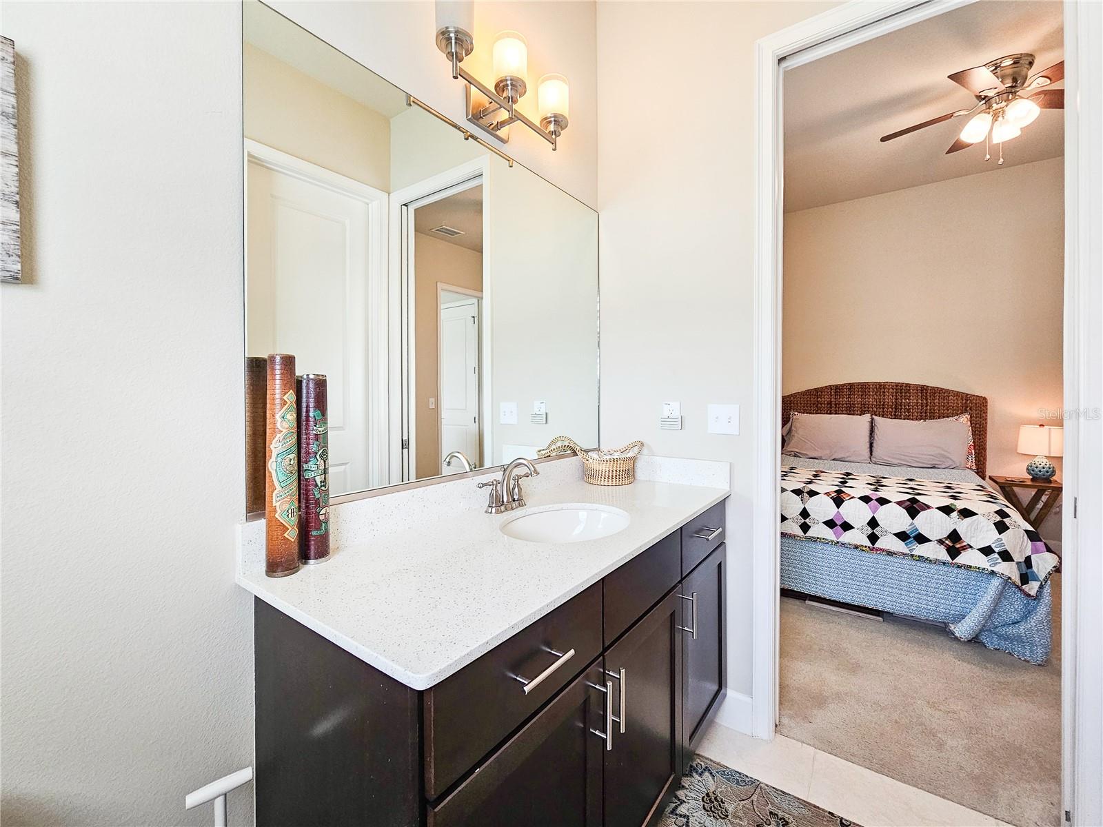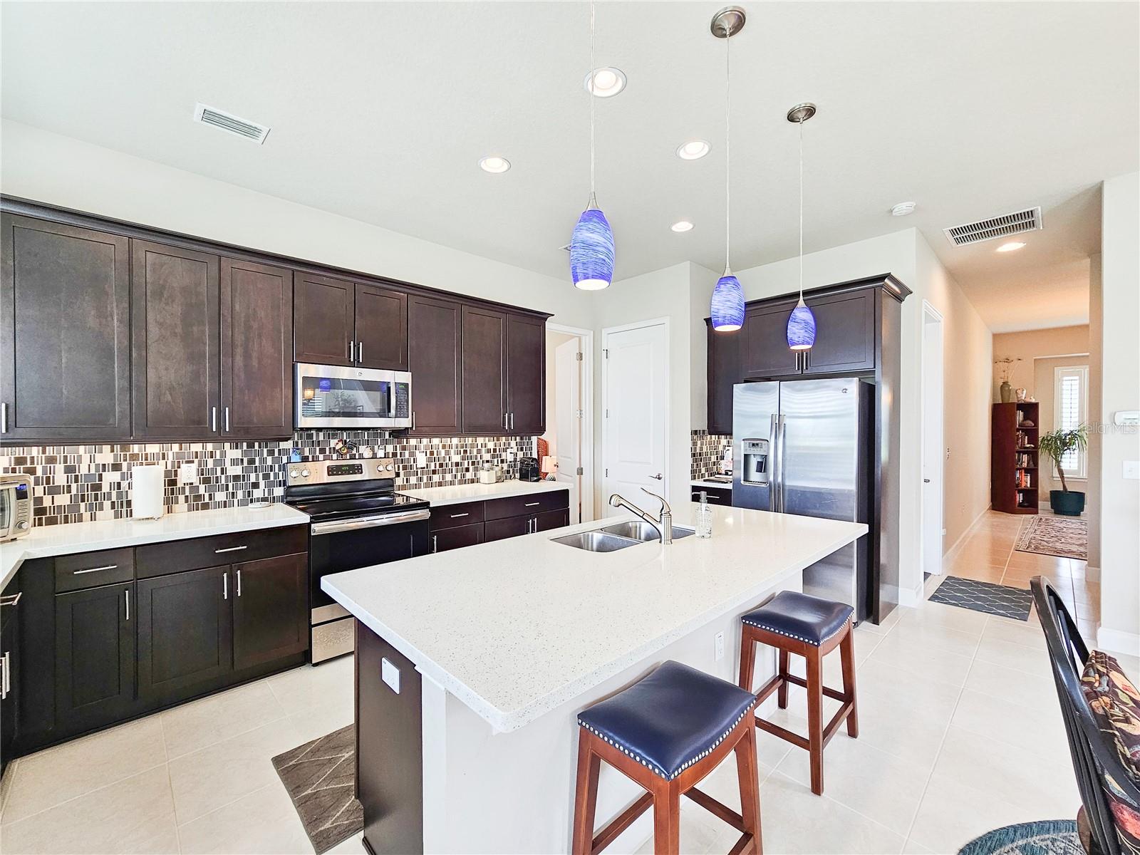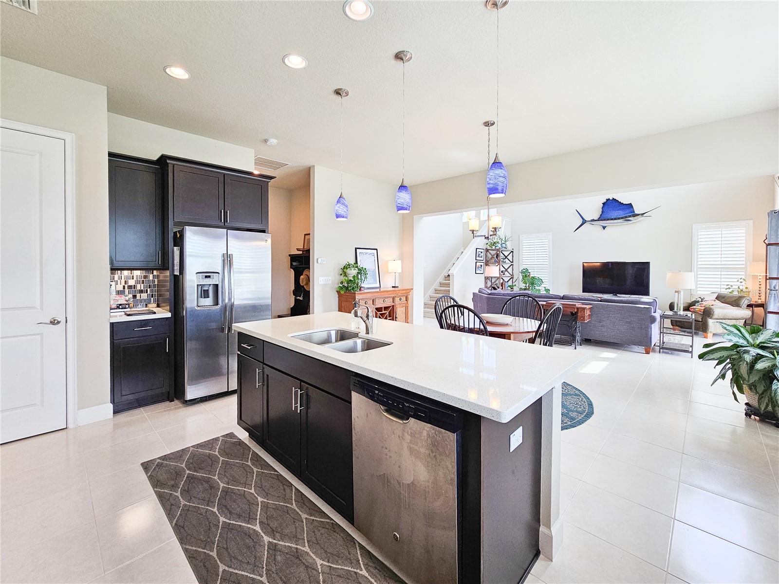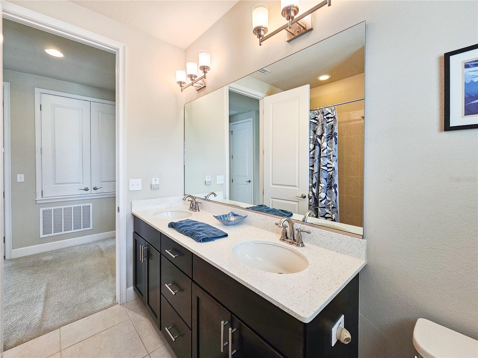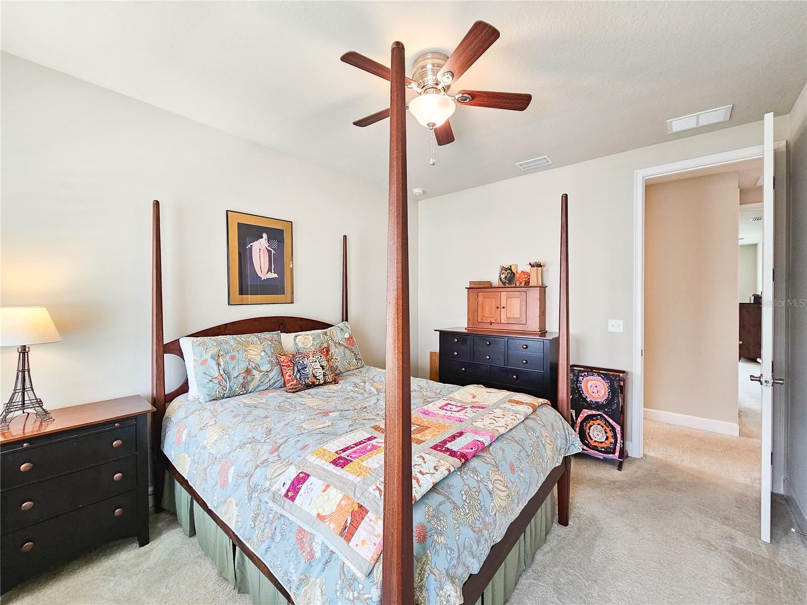 Welcome to your dream home in the sought-after Waters Edge Subdivision! This stunning 5-bedroom, 3.5 bathroom, 2 garage Travis model in the newest phase of the community offers a functional open floor plan. As you enter through the covered entry way to the welcoming foyer and living area, multiple transom windows, plantation shutters, and triple sliding doors to the extended patio provide an abundance of light making this home light and bright. A flex room on the main level off the foyer can be used as a study, office, or your choice. This home offers a gourment kitchen with eat-in nook and a separate dining room for entertaining family and friends. The main level features a versatile 5th bedroom and bath, ideal for guests or in-laws. Upstairs you have 4 additional bedrooms including the owner's suite and a bonus living area for additional use such as a game or recreation room. Enjoy picturesque views of lush farmland from your covered patio and private fenced backyard. With two stories of stylish living space, this home blends modern comfort with a touch of tranquility. Don't miss the chance to make it yours!