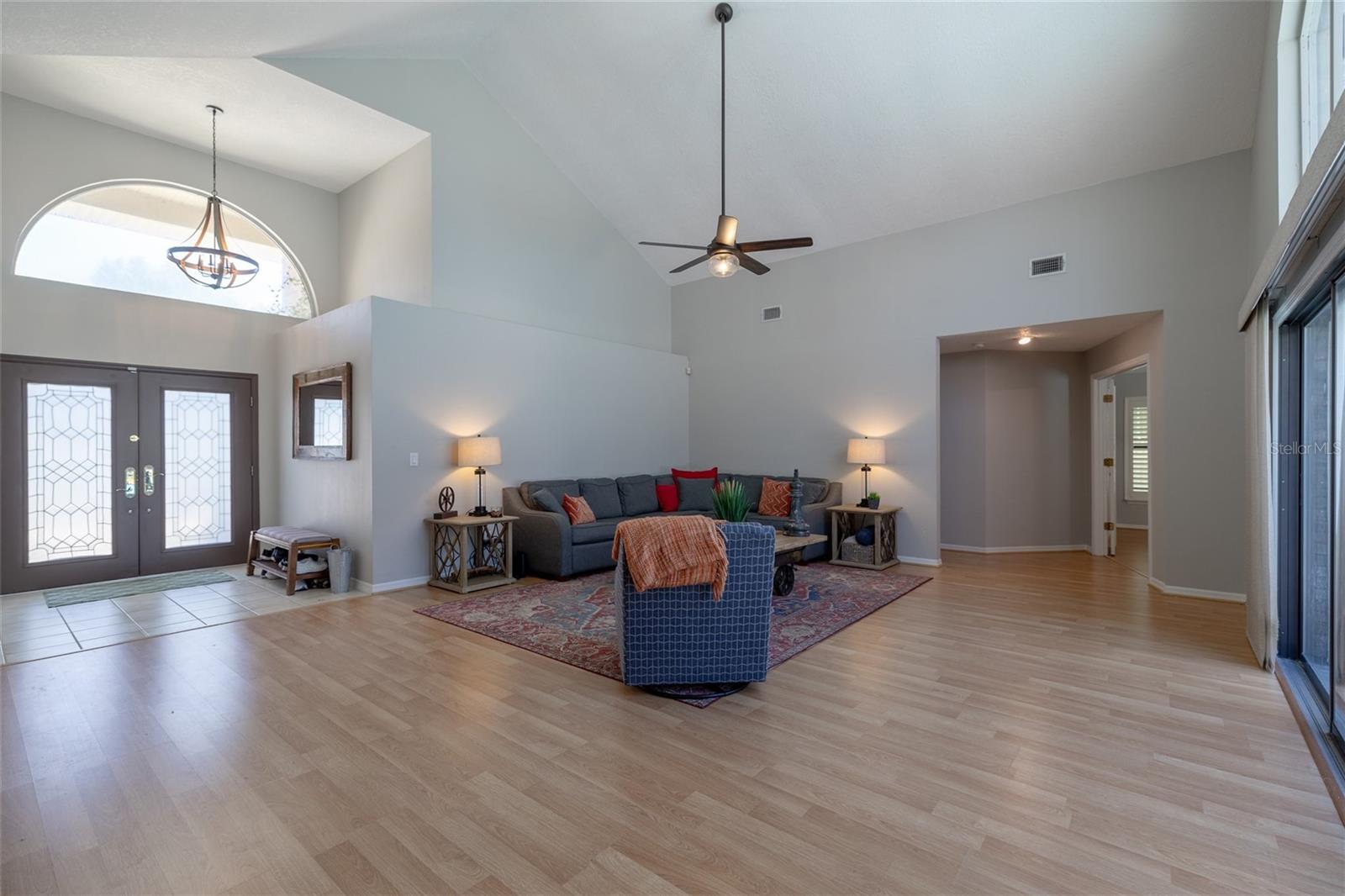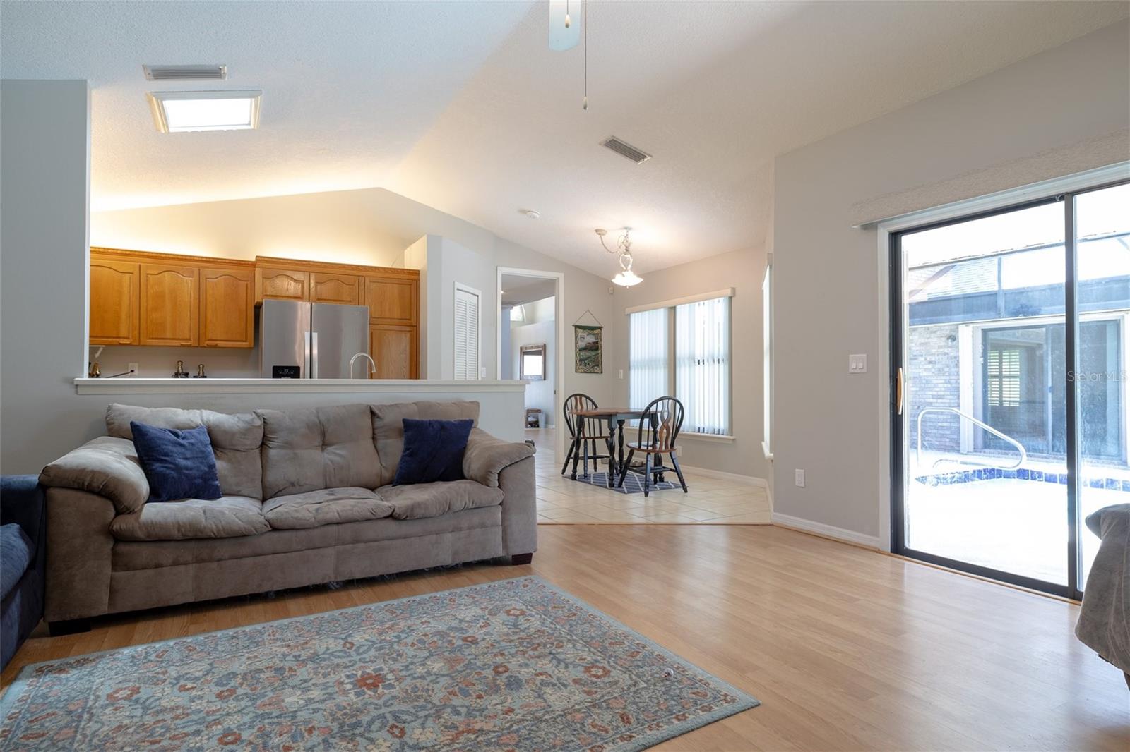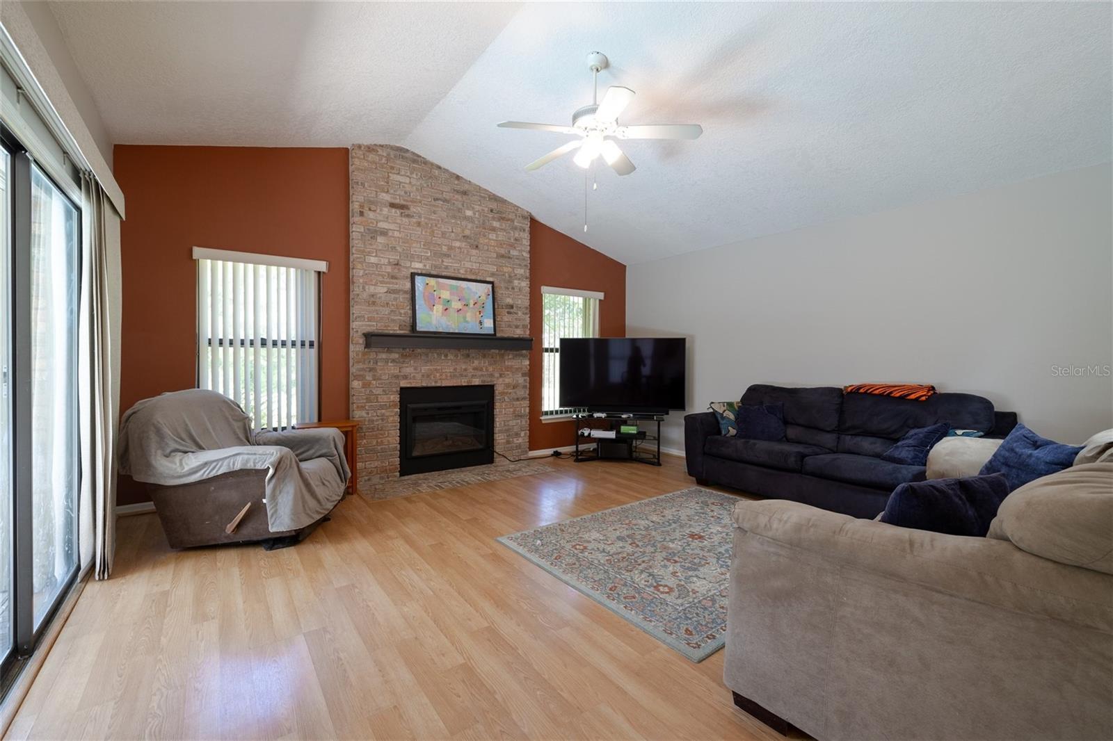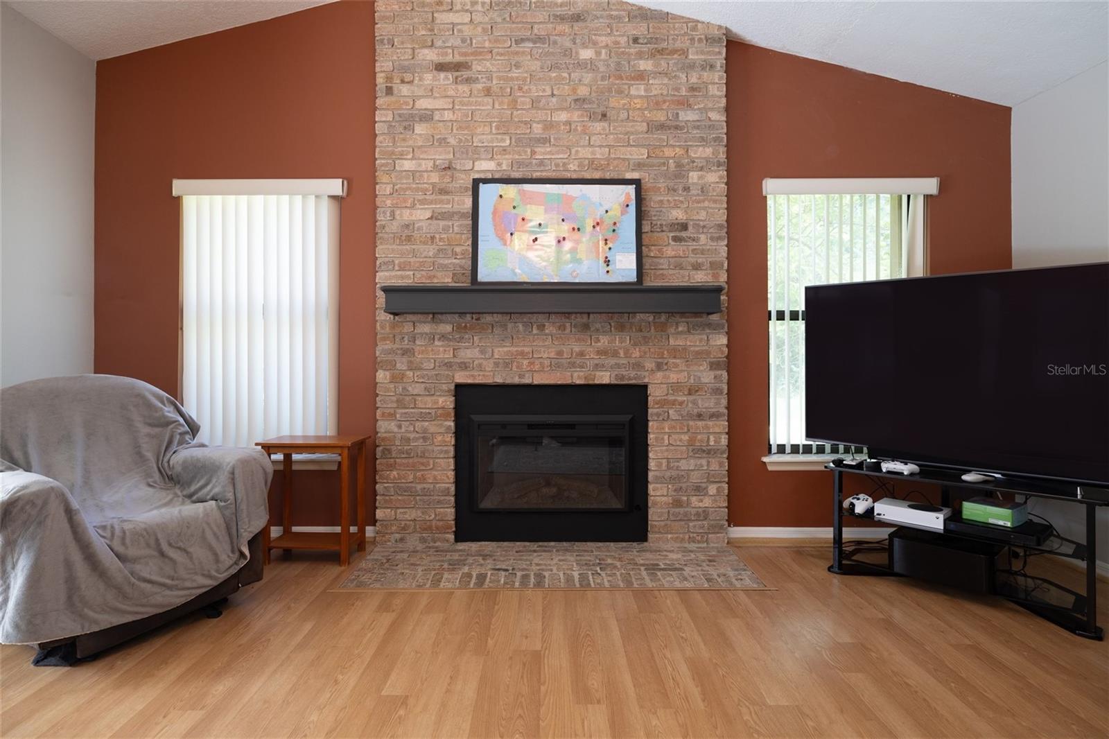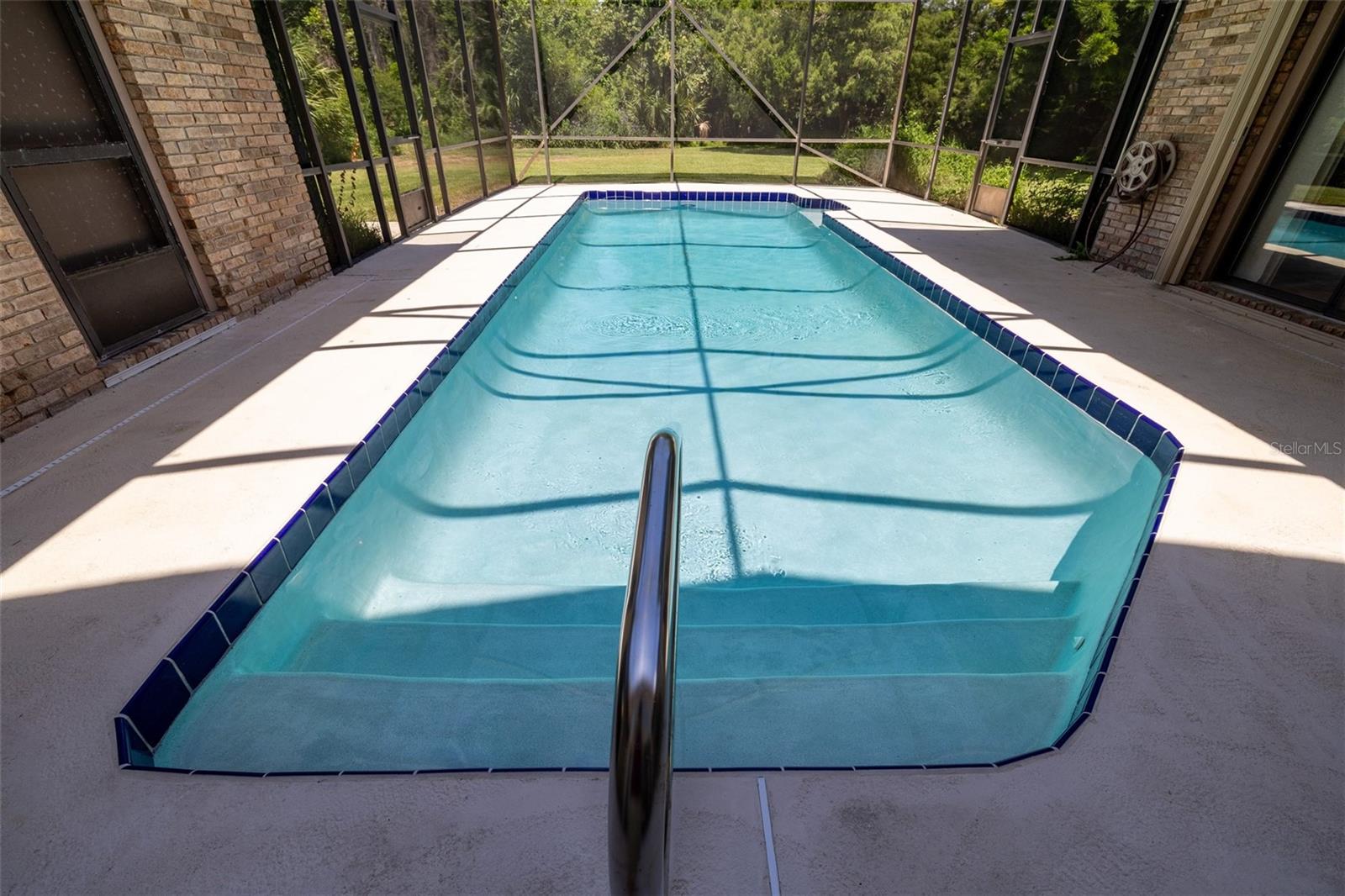You'll Fall in Love with this Home! Situated in a gated community, this all-brick residence offers maintenance-free living without compromising comfort or style. Arrive via the circular driveway to nearly half an acre of lush land, featuring a saltwater screened-in pool and a serene wooded backyard that feels like your own private retreat. The well-designed floor plan blends elegance and functionality, with a spacious living room overlooking the pool, Soaring ceilings, modern kitchen with stainless steel appliances, a family room with an electric fireplace, and a formal dining room. The primary bedroom is a true sanctuary, offering walk-in closets and a spa-like en-suite with a walk-in shower and separate Jacuzzi tub. Recent upgrades include a new roof (2023) w/transferable warranty, updated electrical (2024), hurricane shutters, New Appliances, and a termite bond, making this home move-in ready. With shopping, schools, and beaches just minutes away, convenience is within effortless reach. Your dream lifestyle awaits!