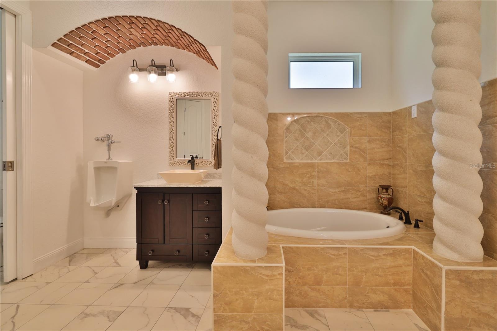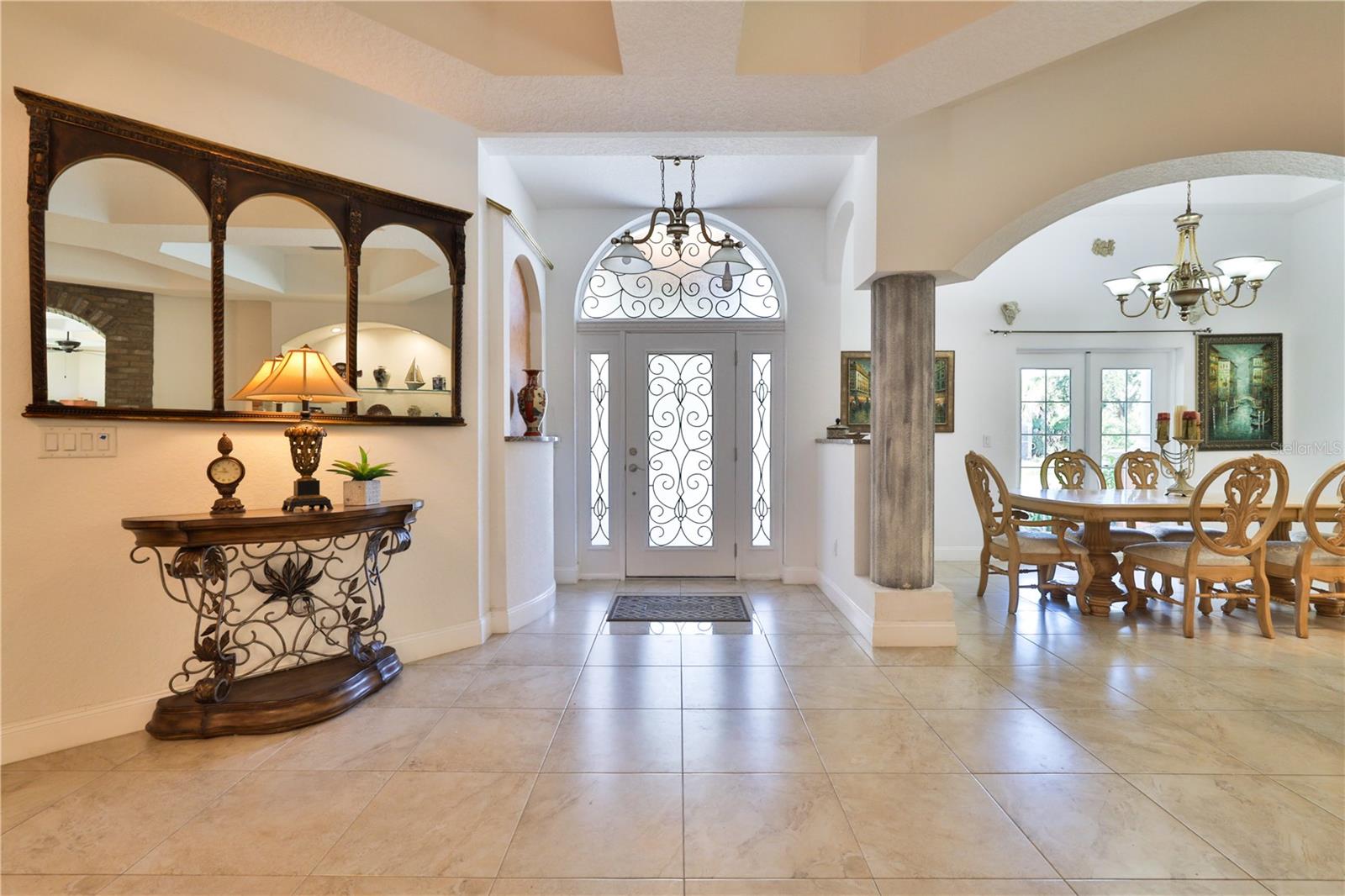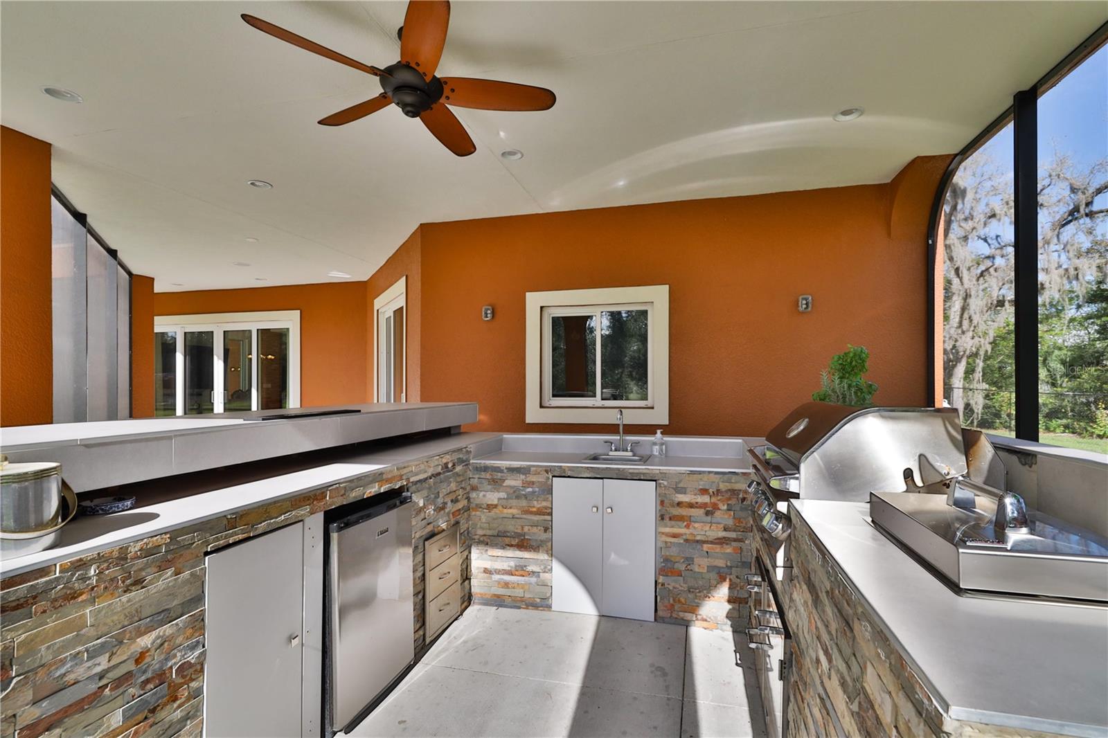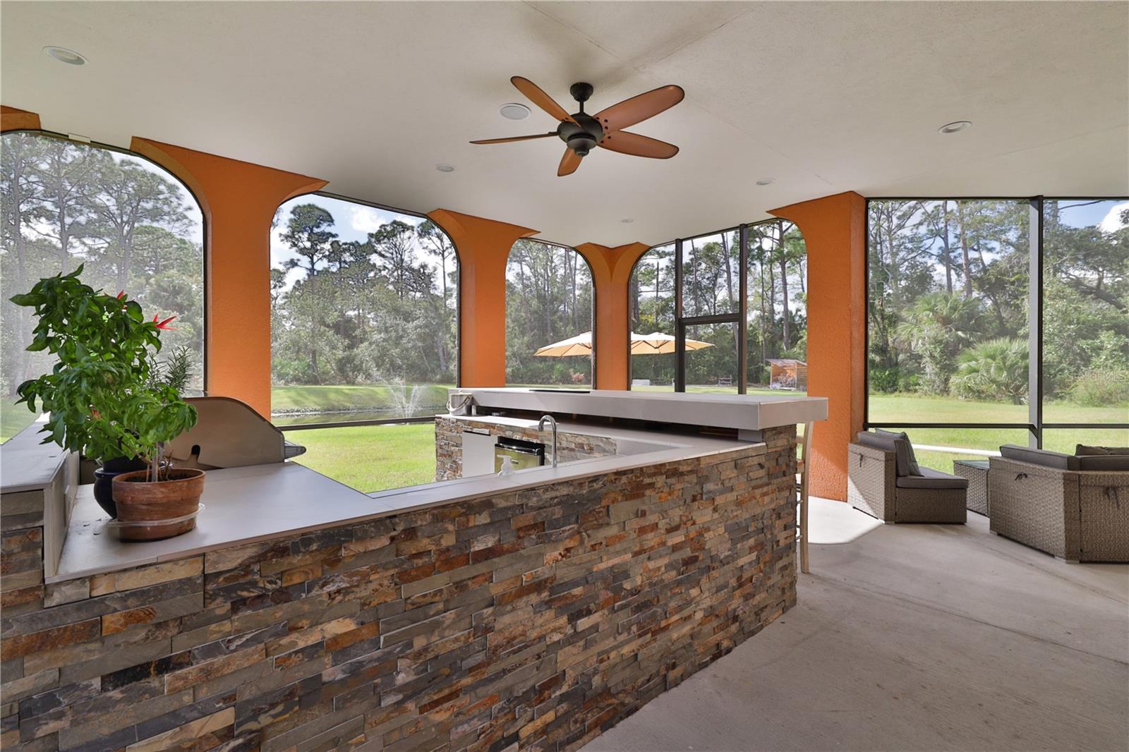 Bring your Creativity and Imagination to this Hidden Oasis and Unique Home!! Located in the Heart of Town and Near the Beach, Zoning also allows for Short-Term Rentals. Plenty of room to grow and develop into a variety of options!! Owner/Builder will consider Seller Financing. Nestled on over 3 acres of secluded paradise in the heart of the city, this meticulously designed and custom-crafted haven is a true masterpiece. Designed by the owner/builder with thoughtful precision, this property seamlessly combines tasteful luxury, family functionality, and hurricane preparedness in a unique package. As you approach the property, a discreet entrance gives no hint of the treasure hidden within. The powered gate swings open to reveal the custom home, a 4677 sq ft living space, featuring 4 bedrooms, 6 baths with a 3-car garage, The property also features a tiny house, and a stocked private pond surrounded by natural tree-lined barriers and creeks on two sides providing complete privacy. Short term rentals are allowed for this property. Upon entry, you are welcomed by a formal living room transformed into a gallery, showcasing collections and a custom-designed "family tree" on the wall. Tile flooring flows through the entire first floor, leading you into the heart of the house - the gourmet kitchen. This culinary haven boasts custom appliances, including a propane-powered 6 burner range with commercial venting system, a double oven and pot filler, custom cabinetry and storage, granite countertops, a center island, a breakfast bar, and a designated coffee bar area. The main floor surprises you with a "Harry Potter-themed" guest bathroom featuring a whimsical brick barrel ceiling. The first floor master bedroom suite offers privacy with well thought out features and design. It is a luxurious retreat offering separate walk-in closets, a rainforest shower, soaking tub, and dual vanities. A uniquely hidden and private office space is accessible from the outside front porch of the home and also by a secret bookcase entry from the interior. The entertainment space takes a unique turn with the Pirate Bar, complete with karaoke, custom bar, and liquor back bar. Rum barrels integrated into the bar carry the theme, connecting seamlessly with the outdoor living space. A built-in fish tank with a pirate ship and turtle creates a unique ambiance for gatherings. Ascending to the second floor, a massive chandelier illuminates a staircase landing with a cozy sitting area and custom bookcase. Natural light flows through, highlighting a multi-level movie theater with a smooth coat movie screen and integrated speakers. Guest bedrooms feature ensuite baths and private balconies with serene views of the backyard. Outside, the backyard unfolds as a secluded oasis with a fully stocked pond, a screened enclosure, and a Florida kitchen for outdoor gatherings. The property prioritizes energy efficiency with a heavy gauge metal roof, insulated doors and windows, and thoughtful attic foam insulation, resulting in remarkably low energy bills. Equipped for hurricane preparedness, the property features a generator hookup and a dedicated hurricane-friendly panel, ensuring functionality during outages. Overall, this meticulously designed property offers an array of unique features and spaces, catering to various interests and providing a haven for relaxation, entertainment, and practical living and security.