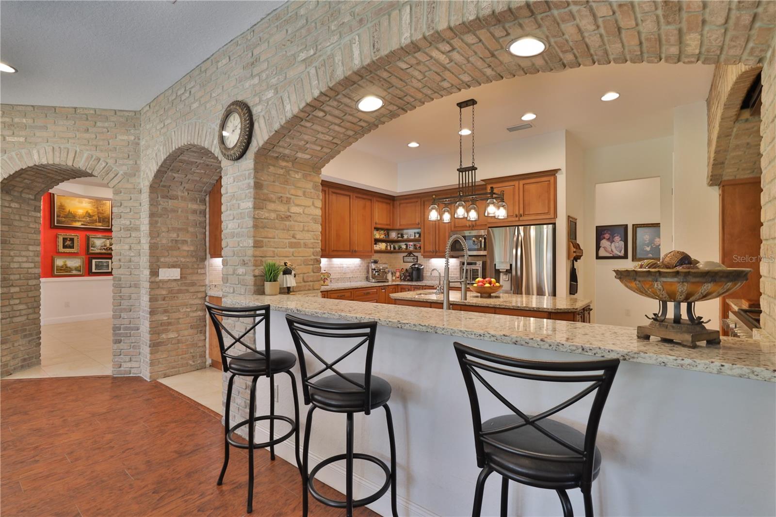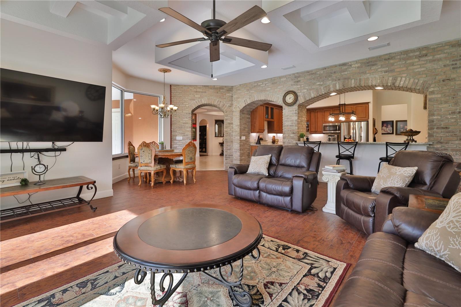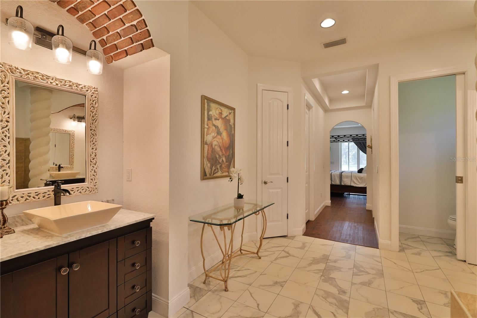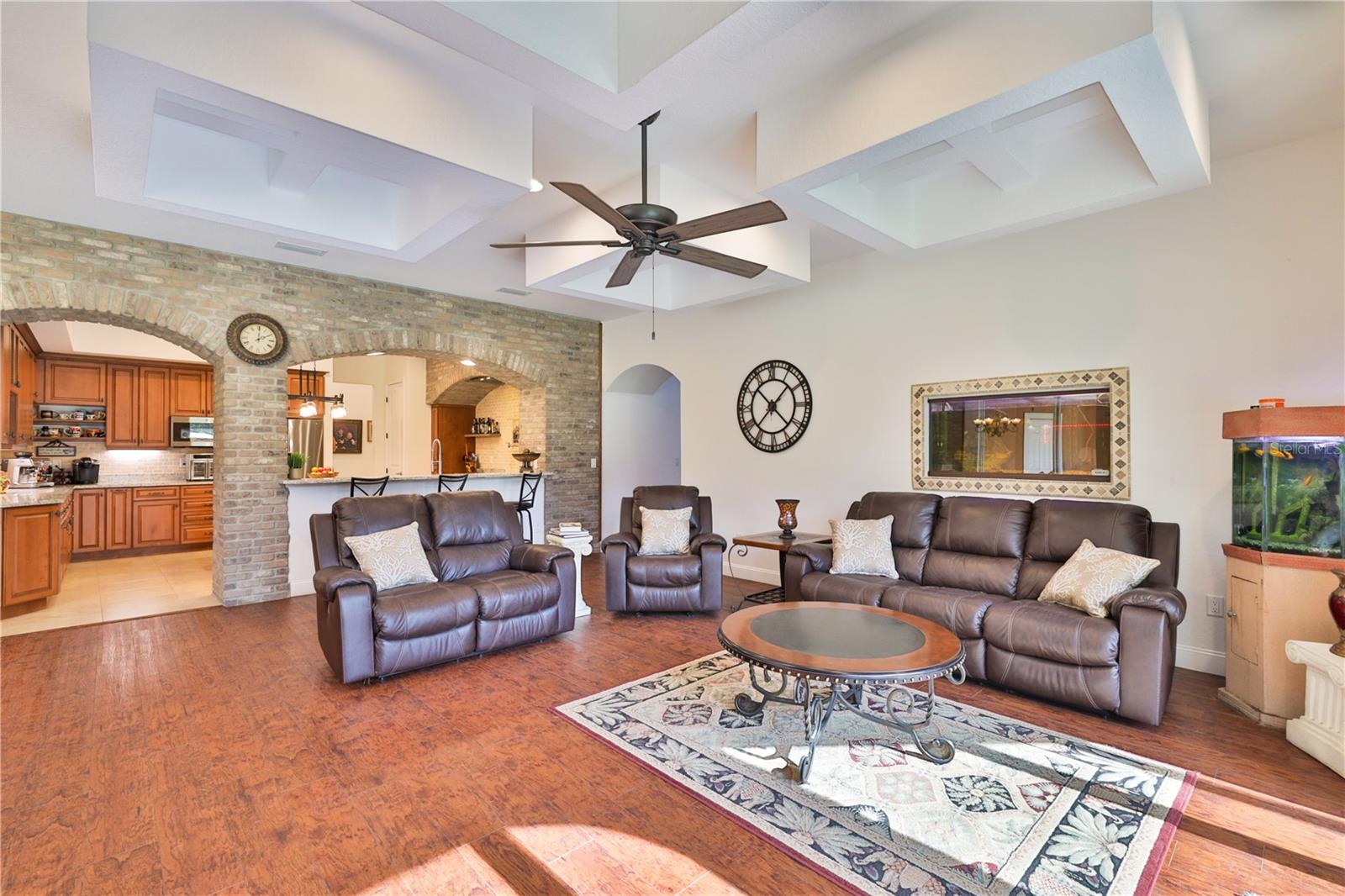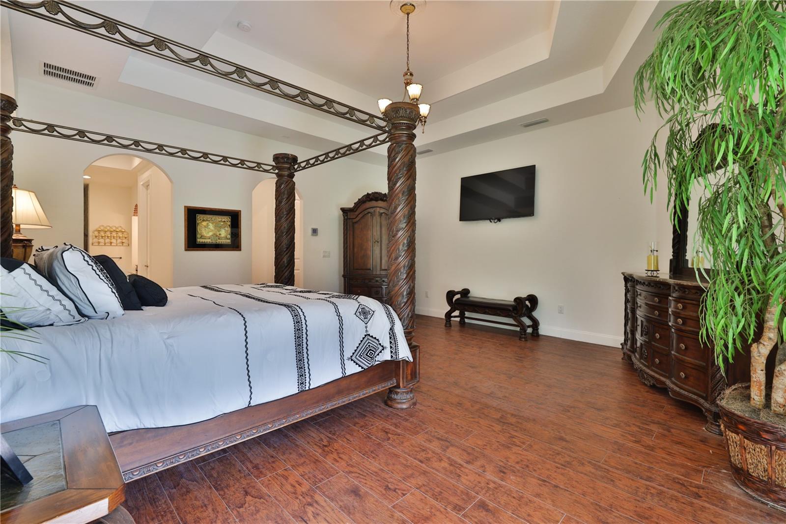 Bring your Creativity and Imagination to this Hidden Oasis and Unique Home!! Located in the Heart of Town and Near the Beach, Zoning also allows for Short-Term Rentals. Plenty of room to grow and develop into a variety of options!! Owner/Builder will consider Seller Financing. Nestled on over 3 acres of secluded paradise in the heart of the city, this meticulously designed and custom-crafted haven is a true masterpiece. Designed by the owner/builder with thoughtful precision, this property seamlessly combines tasteful luxury, family functionality, and hurricane preparedness in a unique package. As you approach the property, a discreet entrance gives no hint of the treasure hidden within. The powered gate swings open to reveal the custom home, a 4677 sq ft living space, featuring 4 bedrooms, 6 baths with a 3-car garage, The property also features a tiny house, and a stocked private pond surrounded by natural tree-lined barriers and creeks on two sides providing complete privacy. Short term rentals are allowed for this property. Upon entry, you are welcomed by a formal living room transformed into a gallery, showcasing collections and a custom-designed "family tree" on the wall. Tile flooring flows through the entire first floor, leading you into the heart of the house - the gourmet kitchen. This culinary haven boasts custom appliances, including a propane-powered 6 burner range with commercial venting system, a double oven and pot filler, custom cabinetry and storage, granite countertops, a center island, a breakfast bar, and a designated coffee bar area. The main floor surprises you with a "Harry Potter-themed" guest bathroom featuring a whimsical brick barrel ceiling. The first floor master bedroom suite offers privacy with well thought out features and design. It is a luxurious retreat offering separate walk-in closets, a rainforest shower, soaking tub, and dual vanities. A uniquely hidden and private office space is accessible from the outside front porch of the home and also by a secret bookcase entry from the interior. The entertainment space takes a unique turn with the Pirate Bar, complete with karaoke, custom bar, and liquor back bar. Rum barrels integrated into the bar carry the theme, connecting seamlessly with the outdoor living space. A built-in fish tank with a pirate ship and turtle creates a unique ambiance for gatherings. Ascending to the second floor, a massive chandelier illuminates a staircase landing with a cozy sitting area and custom bookcase. Natural light flows through, highlighting a multi-level movie theater with a smooth coat movie screen and integrated speakers. Guest bedrooms feature ensuite baths and private balconies with serene views of the backyard. Outside, the backyard unfolds as a secluded oasis with a fully stocked pond, a screened enclosure, and a Florida kitchen for outdoor gatherings. The property prioritizes energy efficiency with a heavy gauge metal roof, insulated doors and windows, and thoughtful attic foam insulation, resulting in remarkably low energy bills. Equipped for hurricane preparedness, the property features a generator hookup and a dedicated hurricane-friendly panel, ensuring functionality during outages. Overall, this meticulously designed property offers an array of unique features and spaces, catering to various interests and providing a haven for relaxation, entertainment, and practical living and security.