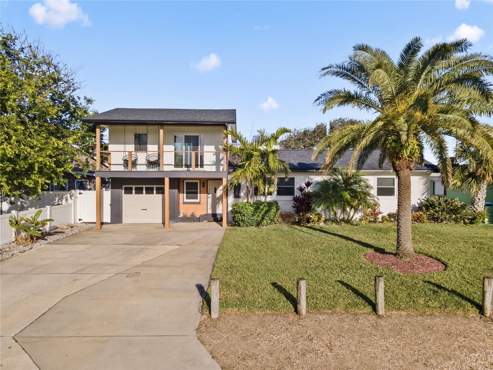 **SHOWINGS STILL OK- 72-HOUR KICKOUT CLAUSE IN PLACE.**Live the ultimate beachside lifestyle in this beautifully updated two-story home, just one block from the river and ocean, south of Dunlawton Bridge in Port Orange. This spacious four-bedroom, two-bath home offers the ideal combination of comfort, style and location. The entire upper story is dedicated to a luxurious primary bedroom suite, complete with an en-suite bath, offering a private retreat with serene river views from the second-story balcony. Enjoy relaxing in swinging chairs while soaking in the peaceful atmosphere. The home has been thoughtfully upgraded with modern finishes and functional enhancements, including a remodeled kitchen with custom wood cabinetry and quartz countertops, new baths, and stunning new floors in 2020. Hurricane-rated double-hung windows were installed in September 2020, and the home is equipped with a new water heater in August 2024, new electric box with generator hookup in June 2024 and a new sprinkler system in April 2021. Recent upgrades also include a new roof in April 2023, new soffits, fascia and gutters in June 2023, ensuring long-lasting durability and peace of mind. The interior features custom woodwork throughout the home, including a beautifully designed custom fireplace and a built-in TV in the living room. The backyard is ideal for entertaining with an above-ground pool, and a new shed in 2023 provides additional storage space. A one-car garage offers convenient parking. This move-in ready home is the ideal spot to enjoy Florida's beachside living, with the river, ocean and local amenities just a short distance away. Don't miss this rare opportunity to own a home with river views, a great location and a variety of upgrades. Key features include four bedrooms and two baths. Entire upper story is dedicated to the primary bedroom suite with an en-suite bath. River views from the second-story balcony with swinging chairs. Custom wood cabinetry in the kitchen with quartz countertops. Custom woodwork throughout, including a custom fireplace and built-in TV in the living room. Sparkling above-ground pool. New roof in April 2023 and new electric box with generator hookup in June 2024. New water heater in August 2024. Fresh kitchen and bath remodel in 2020. New shed in 2023 and one-car garage. New sprinkler system in 2021. Just one block to the river and ocean. Schedule your showing today and experience the best of beachside living! No Airbnb weekly rentals allowed. Min 30 days rentals per Volusia County guidelines.