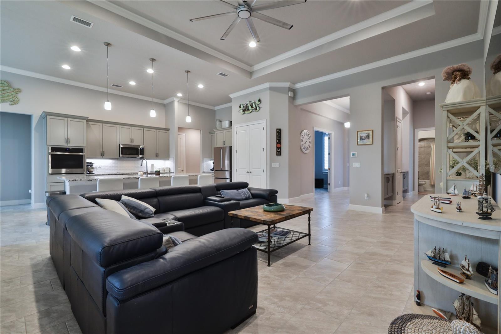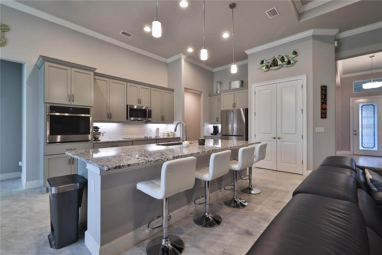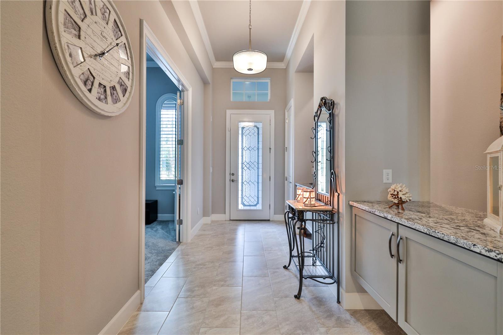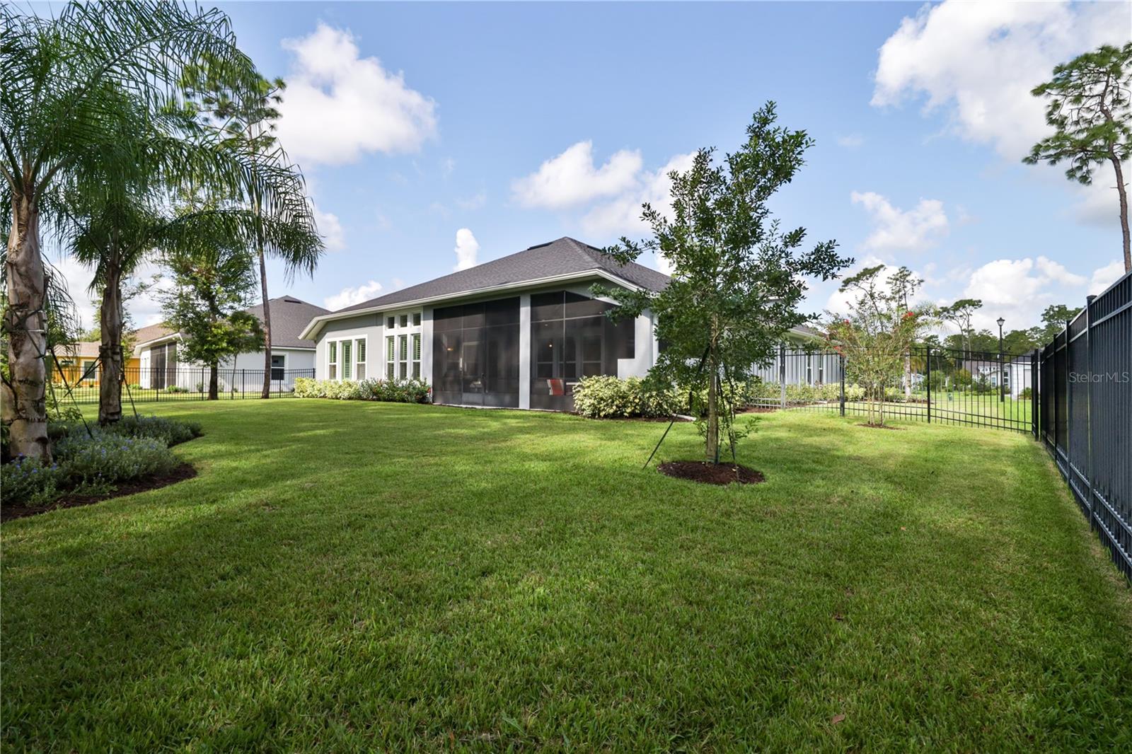 Nestled in an exclusive neighborhood, this stunning luxury home redefines sophistication and comfort. Spread across 2624 square feet, this meticulously designed property boasts 4 bedrooms and 3 bathrooms. Upon entering, you are greeted by a grand foyer with soaring ceilings, intricate custom moldings, and several full-sized windows that flood the interior with natural light. The gourmet kitchen, outfitted with state-of-the-art appliances, quartz countertops, and a spacious island, seamlessly connects to the open concept living and dining areas, perfect for entertaining. The primary suite is a sanctuary, featuring a lavished spa-like bathroom, and an expansive walk-in closet. Additional bedrooms are spacious, ensuring unparalleled comfort for family and guests. Outdoor living is elevated with an extra-large screened lanai and a professionally land-scaped garden. The property also includes a true home office, fenced back yard, 12-foot-high ceilings, 8-foot doors, and custom plantation shutters, catering to the most discerning tastes. Located just minutes from top schools, shopping, and dining, this estate offers a rare combination of privacy and convenience. This is more than a home—it’s a lifestyle. Don’t miss the opportunity to make this exceptional property your own.